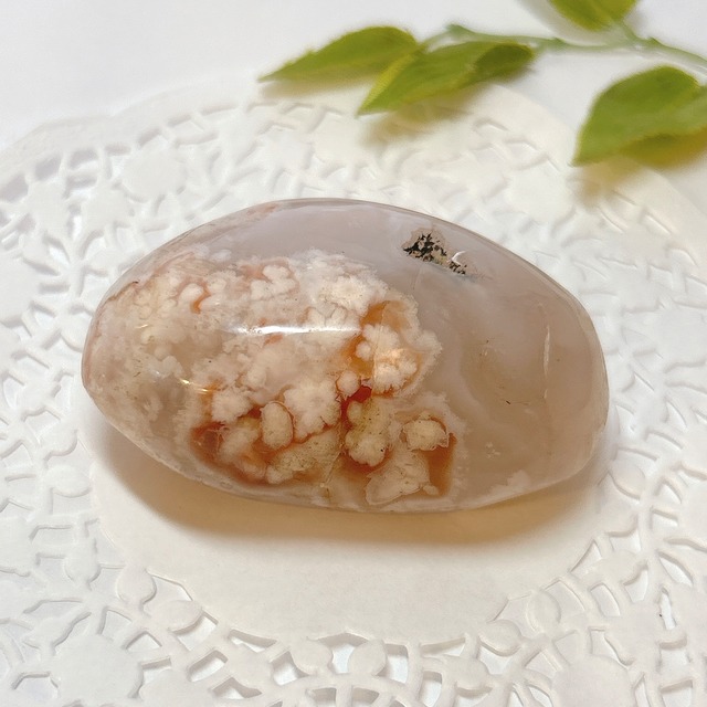 Cherry blossom agate 桜の花が咲いたような模様とほのかなピンクが可愛い桜アゲート。 握り石や、ペーパーウェイトにも。 【使用ストーン】 桜アゲート 産地:マダガスカル Cherry blossom agate 約54×50×20㎜ 約83g *・゜゚・*・*:.。. .。.:*・゜゚・* *・゜゚・*・*:.。. .。.:*・゜゚・* こちらの商品は店舗や他サイトにて同時に販売しております。 そのため、稀にご注文いただいた時点で、品切れになってしまうこともあります。 大変申し訳ございませんが、その場合はご連絡後、キャンセルとさせていただきます。 ご了承のほどよろしくお願い致します * ゜゚・*:.。..。.:*.。. .。.:*・゜゚・* ゜゚・*:.。..。.:*.。. .。.:*・゜゚ 【配送について】 プチプチに包んで発送致します。 【ビーズについて 】 ・サイズはおおよそになります。ものにより若干(±0.5mm程度)の誤差がある場合がございます。 ・数粒、キズ、欠け、凹みなど不良ビーズが含まれたり、写真に写らない小さなキズ、内包物等がある場合がございます。 ・なるべく実物に近い色合いになるように撮影していますが、お使いのモニターによっては実際の色と若干異なる事もございます。