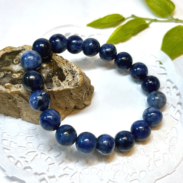 ソーダライト 10㎜ 【内径】約16㎝ Bracelet inside diameter 青地に白い条痕の爽やかな石、ソーダライト 学問に良いとされ、受験や資格の勉強のときに身につけると良いとされています。 古くからラピスラズリと並行した歴史を持つとされ、ラピスの代わりに用いられた事もあるそう。 ラピスとよく似ていますが、ラピスの深い濃紺に対して、優しい色合いのソーダライト。 特に男性に人気です。 ソーダ分を含有しているため、この名前が付けられました。 成分:Na8Al6Si6O24Cl2 硬さ:5.5~6 石言葉:学問、資格、勉強 *・゜゚・*・*:.。. .。.:*・゜゚・* *・゜゚・*・*:.。. .。.:*・゜゚・* ・* こちらの商品は店舗や他サイトにて同時に販売しております。 そのため、稀にご注文いただいた時点で、品切れになってしまうこともあります。 大変申し訳ございませんが、その場合はご連絡後、キャンセルとさせていただきます。ご迷惑をおかけしますが ご了承のほどよろしくお願い致します* ・* ゜゚・*:.。..。.:*.。. .。.:** ・* ゜゚・*:.。..。.:*.。. .。.:* 【石について 】 ・明るい場所で撮影しています。 ・サイズはおおよそになります。ものにより若干の誤差がある場合がございます。 ・小さなキズ、内包物等がある場合がございます。 天然石ゆえになりますので、ご理解の程よろしくお願いします。 ・なるべく実物に近い色合いになるように撮影していますが、お使いのモニターによっては実際の色と若干異なる場合があります。 ・アップで撮影している為、実物より大きく感じる事があります。サイズを記載していますので、ご確認お願いします。