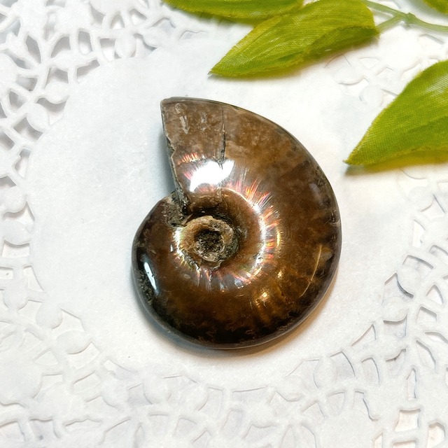 赤いファイヤーが魅力的 学名:Cleoniceras sp.(クリオニセラス) 時代:中生代白亜紀(1億4千年〜6千5百万年前) 産地:Ambarimaniga,Majunga,Madagascar 約38×30×11㎜ 約18g 強い赤色の閃光(ファイヤー)を放っているのは、地層中の酸化鉄や珪酸がアンモナイトの殻の表面に薄く付着し、細かなひび割れの部分がオパールのような遊色を浮き出させるため。 オパール化したアンモナイトや、アンモライトとよく間違われますが、別のものになります。 *・゜゚・*・*:.。. .。.:*・゜゚・* *・゜゚・*・*:.。. .。.:*・゜゚・* ・* こちらの商品は店舗や他サイトにて同時に販売しております。 そのため、稀にご注文いただいた時点で、品切れになってしまうこともあります。 大変申し訳ございませんが、その場合はご連絡後、キャンセルとさせていただきます。ご迷惑をおかけしますが ご了承のほどよろしくお願い致します* ・* ゜゚・*:.。..。.:*.。. .。.:** ・* ゜゚・*:.。..。.:*.。. .。.:* 【石について 】 ・明るい場所で撮影しています。 ・小さなキズ、内包物等がある場合がございます。 天然石ゆえになりますので、ご理解の程よろしくお願いします。 ・なるべく実物に近い色合いになるように撮影していますが、お使いのモニターによっては実際の色と若干異なる場合があります。