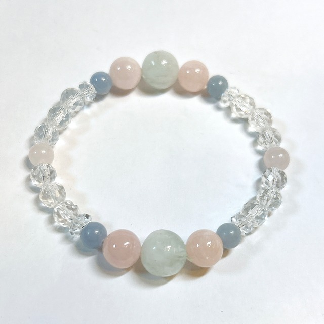 【E17601】エンジェルフェザー フローライト 水晶 モルガナイト エンジェライト オリジナルブレスレット