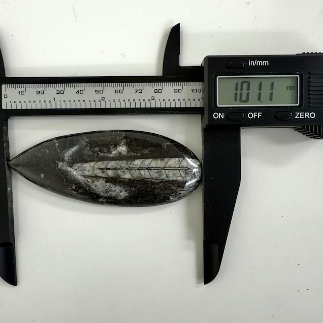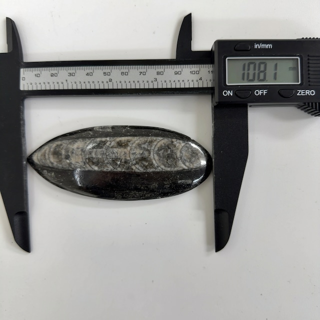 直角貝/オーソセラス/Orthoceras 古生代デボン紀/Devonianperiod 産地:Morocco 約33㎜×29㎜×10㎜ 約13g 古生代オルドビス紀に発生し、中生代三畳紀頃に絶滅した頭足類。 殻の中が個々の部屋に分かれており、この中の水を排出して浮力を調整し、泳いでいたと考えられています。 *・゜゚・*・*:.。. .。.:*・゜゚・* *・゜゚・*・*:.。. .。.:*・゜゚・* ・* こちらの商品は店舗や他サイトにて同時に販売しております。 そのため、稀にご注文いただいた時点で、品切れになってしまうこともあります。 大変申し訳ございませんが、その場合はご連絡後、キャンセルとさせていただきます。ご迷惑をおかけしますが ご了承のほどよろしくお願い致します* ・* ゜゚・*:.。..。.:*.。. .。.:** ・* ゜゚・*:.。..。.:*.。. .。.:* 【石について 】 ・明るい場所で撮影しています。 ・サイズはおおよそになります。ものにより若干の誤差がある場合がございます。 ・小さなキズ、内包物等がある場合がございます。 天然石ゆえになりますので、ご理解の程よろしくお願いします。 ・なるべく実物に近い色合いになるように撮影していますが、お使いのモニターによっては実際の色と若干異なる場合があります。 ・アップで撮影している為、実物より大きく感じる事があります。サイズを記載していますので、ご確認お願いします。