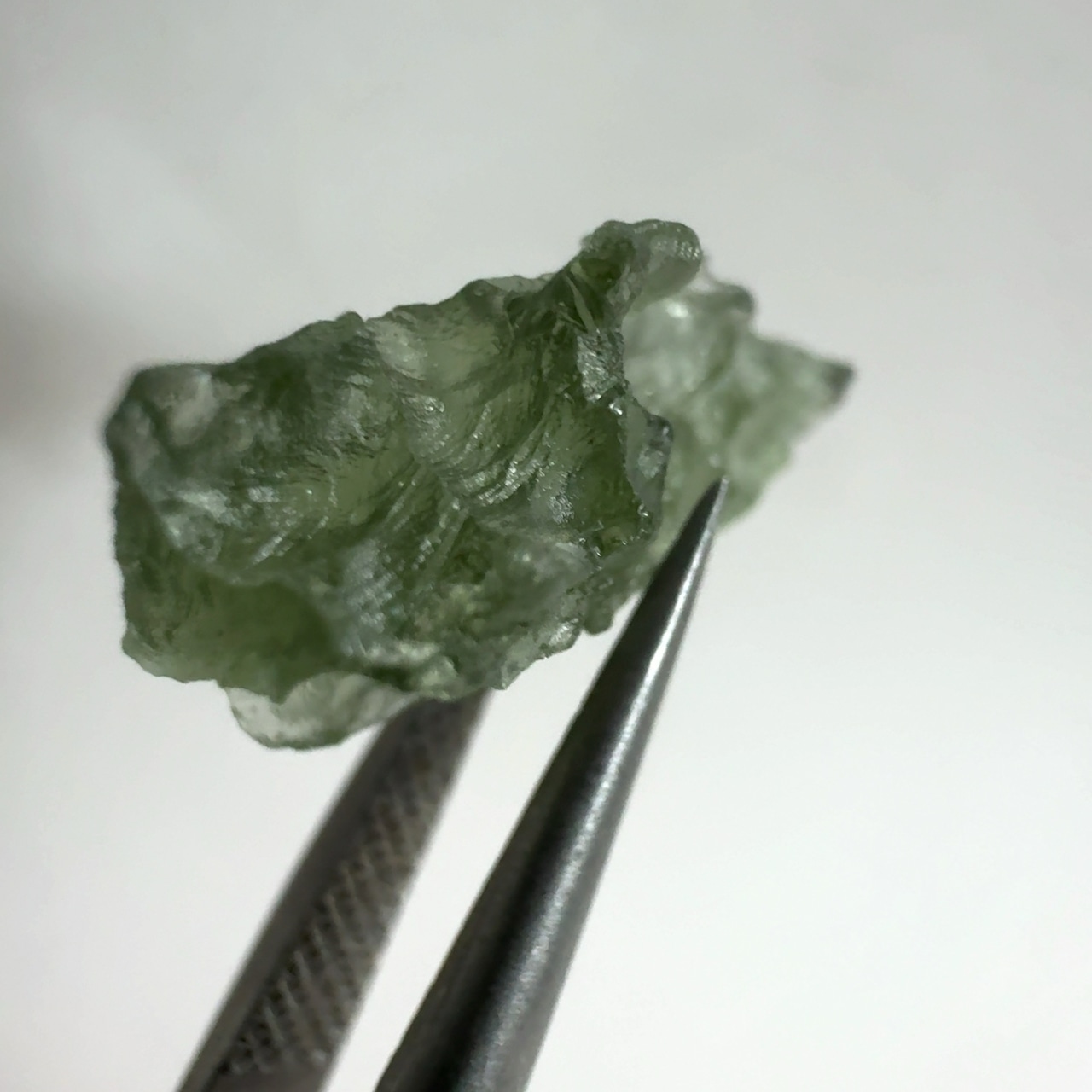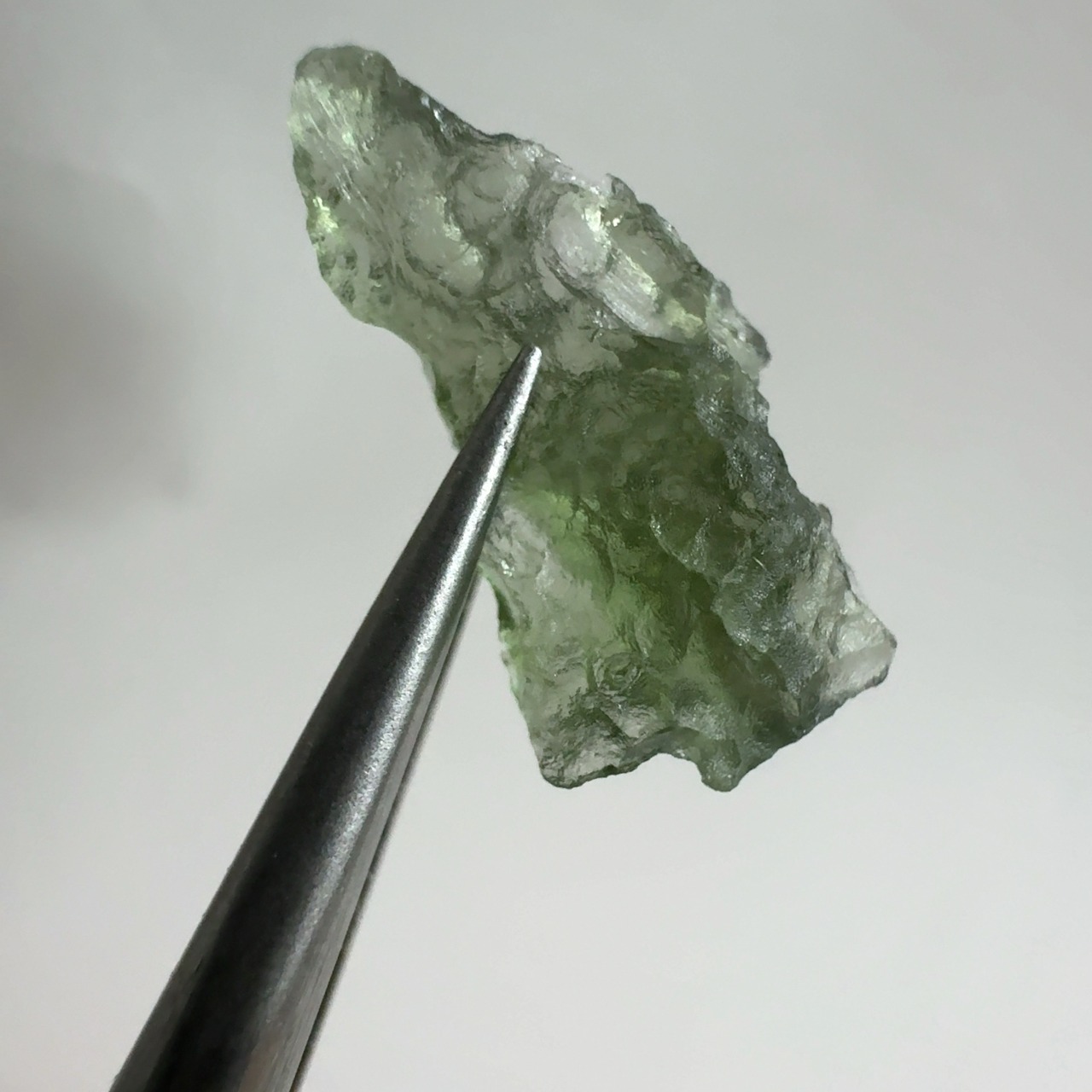 モルダバイトはチェコのモラビア地方〜ボヘミア地方で産出する天然ガラス(テクタイトの一種)で、1480万年前に衝突した隕石(ドイツにReis Impact Cratorを形成)の熱で地上の珪酸が溶けて隕石の成分と混ざり合って落ちてきたもの。