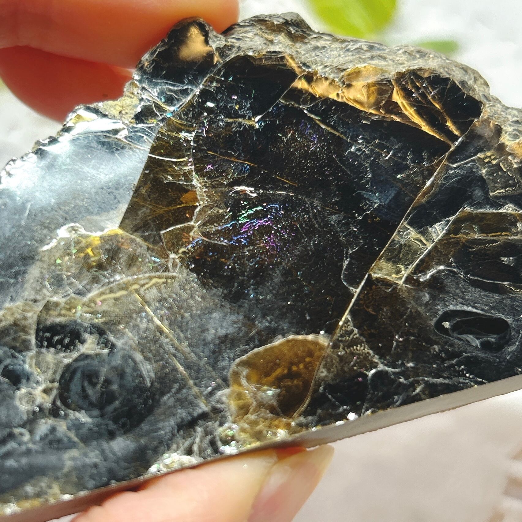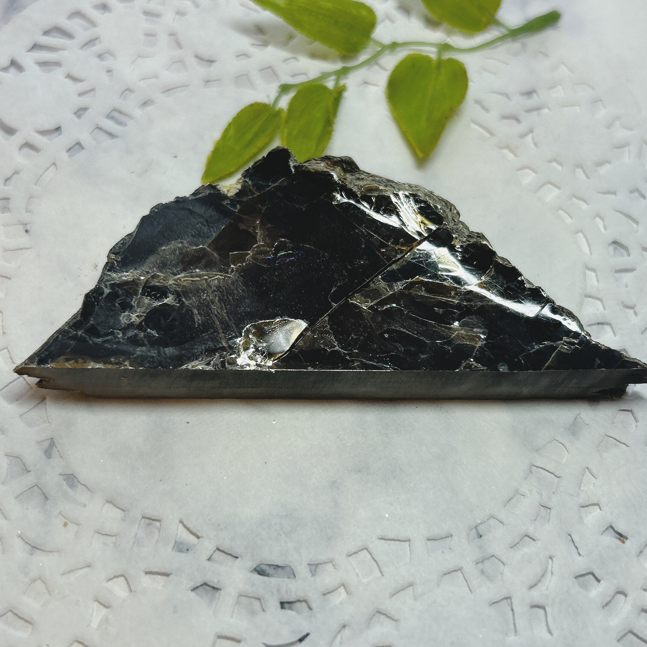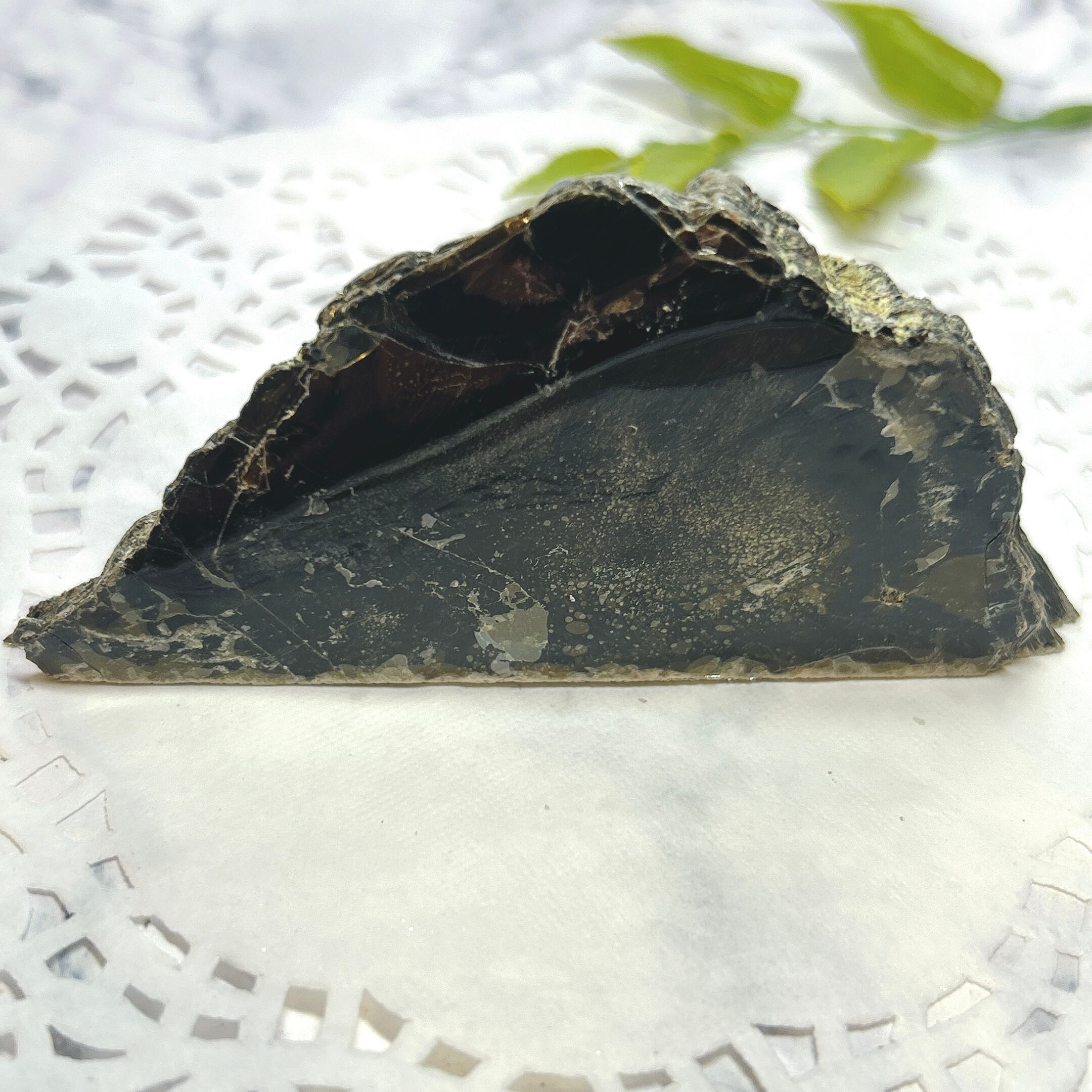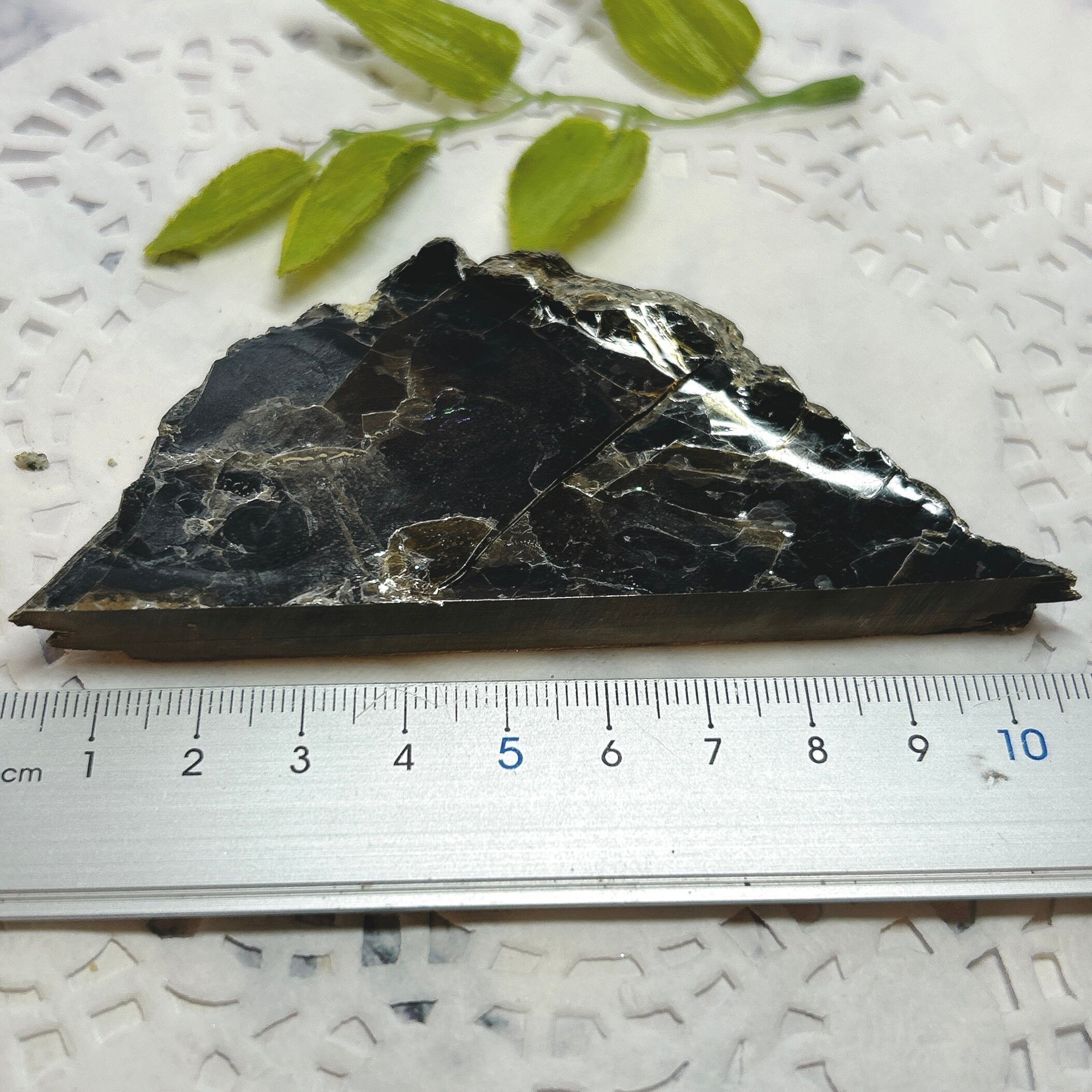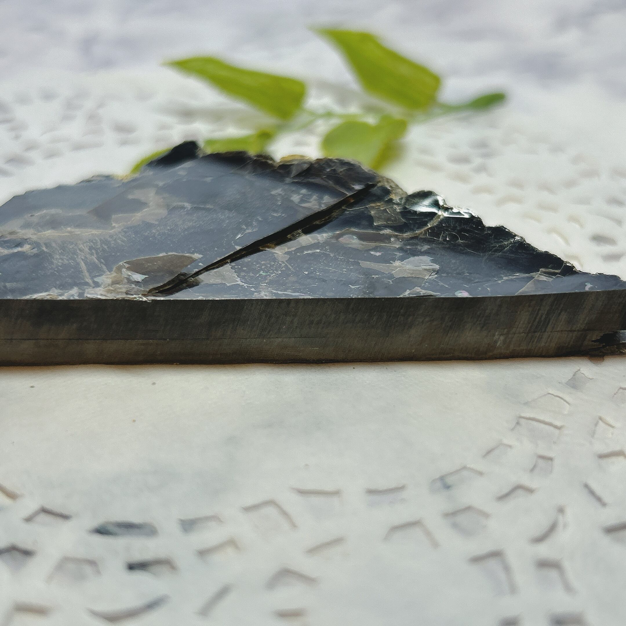 こちらは大きな一枚の金雲母結晶を岩石のカッターで小さく切断したものです。