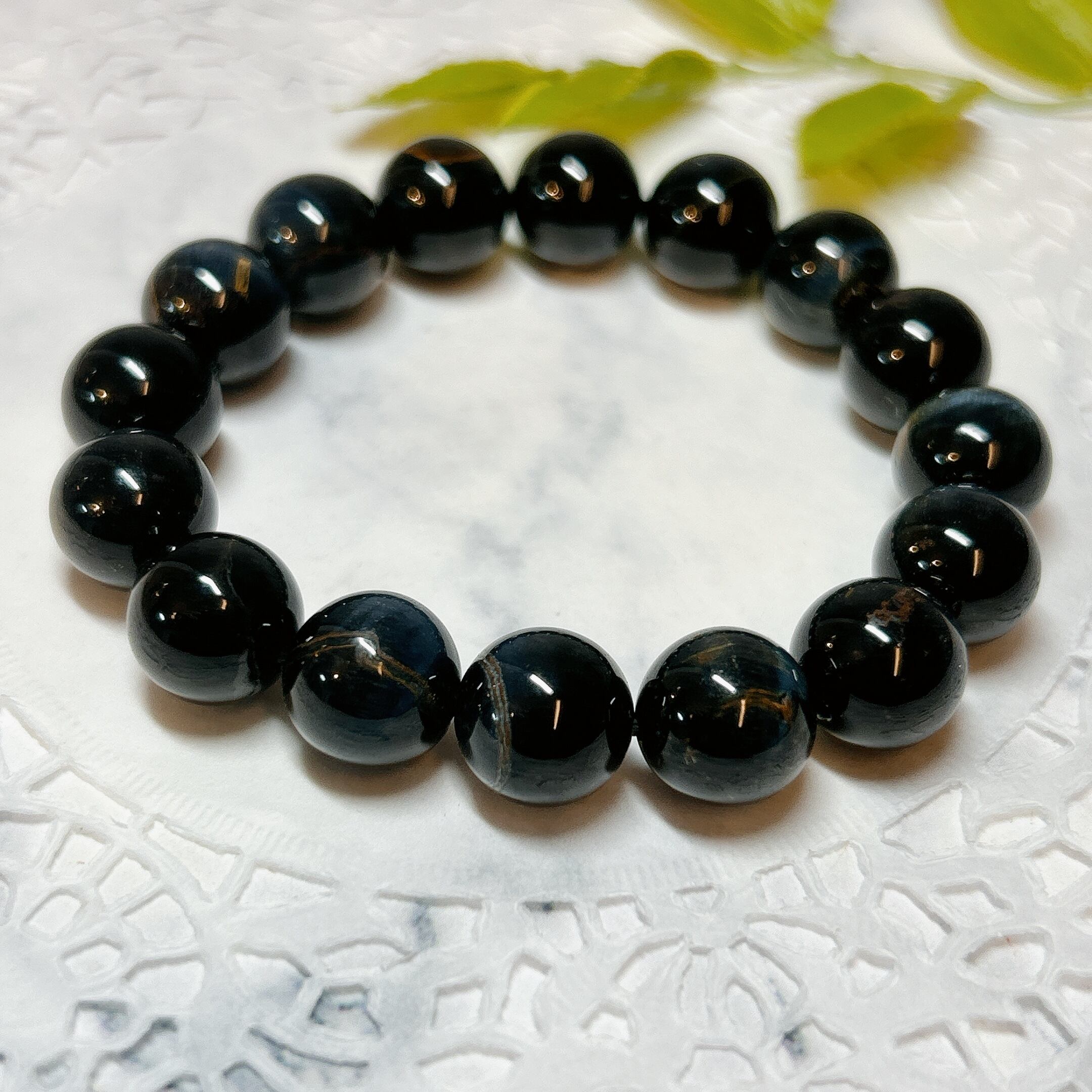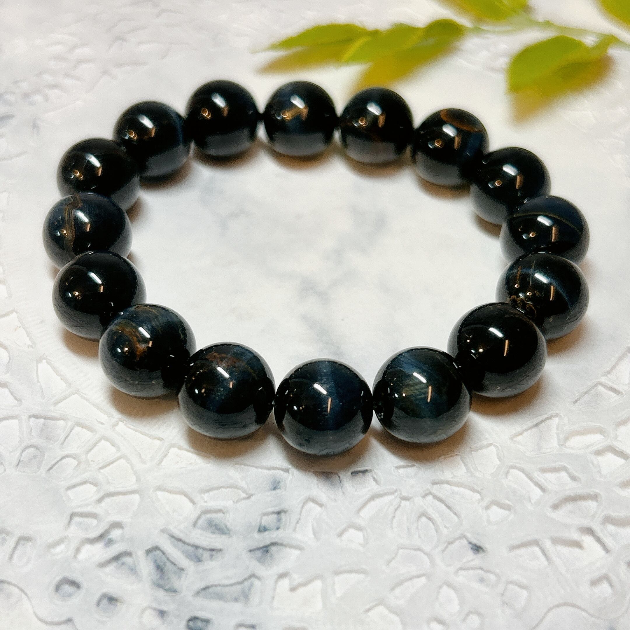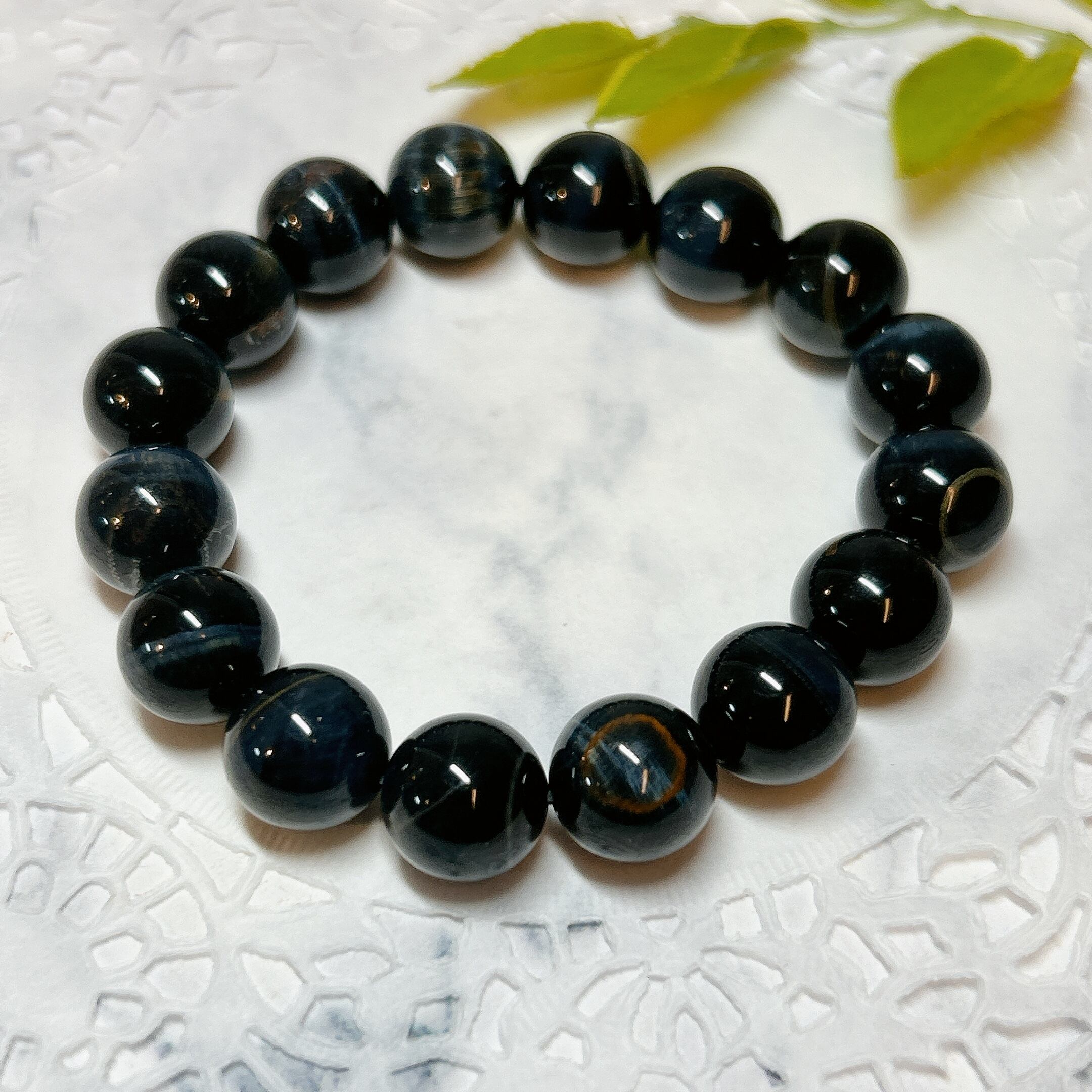 【E12914】ブルータイガーアイ*12㎜*ホークスアイ*青虎目石*ブレスレット*天然石* Blue Tiger Eye