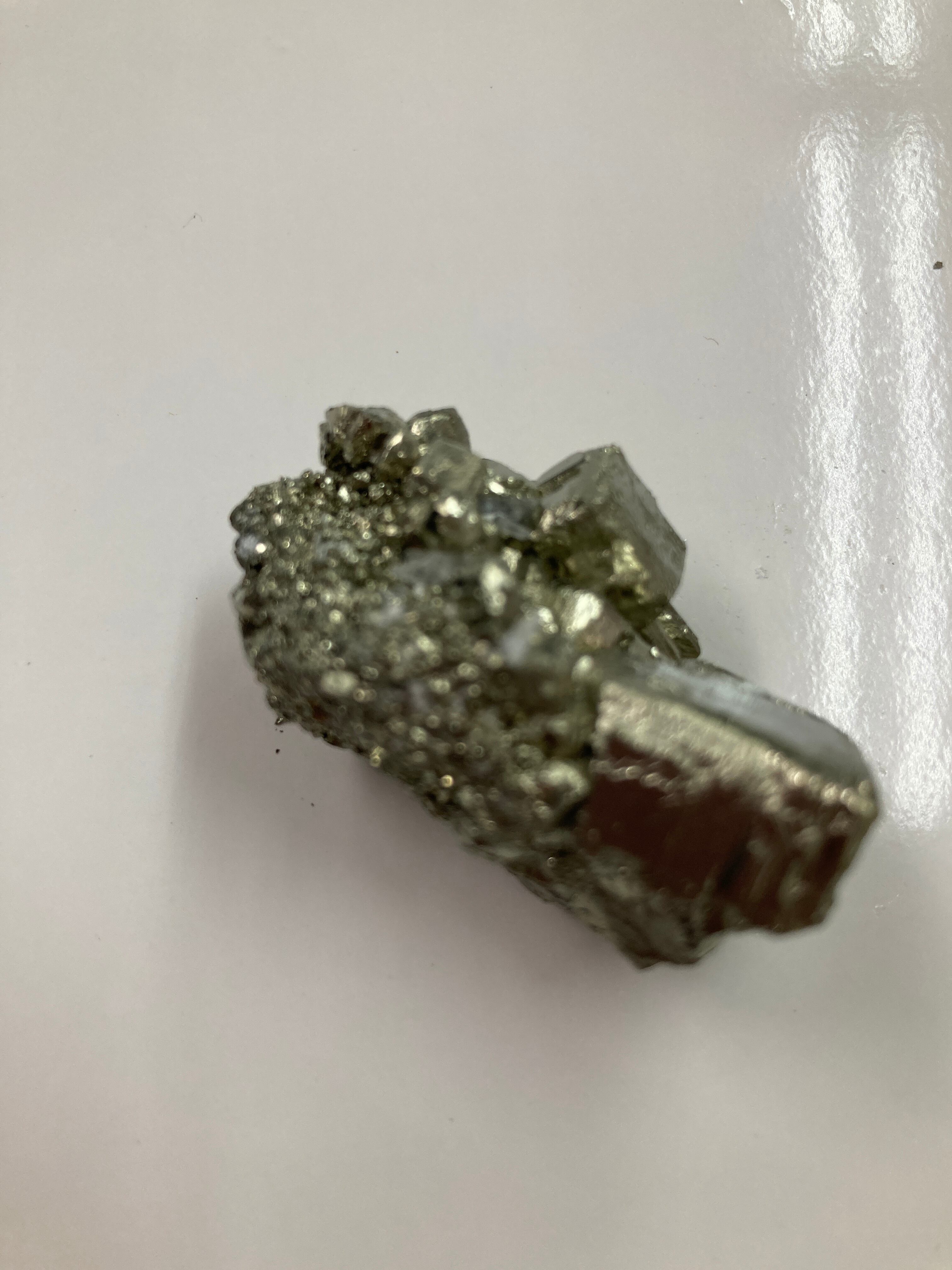 硫黄と鉄の化合物。黄金色の美しい光沢および、立方体、五画十二面体、八面体、二十四面体、又はそれらが合わさった形など様々な結晶をするので標本として人気があります。