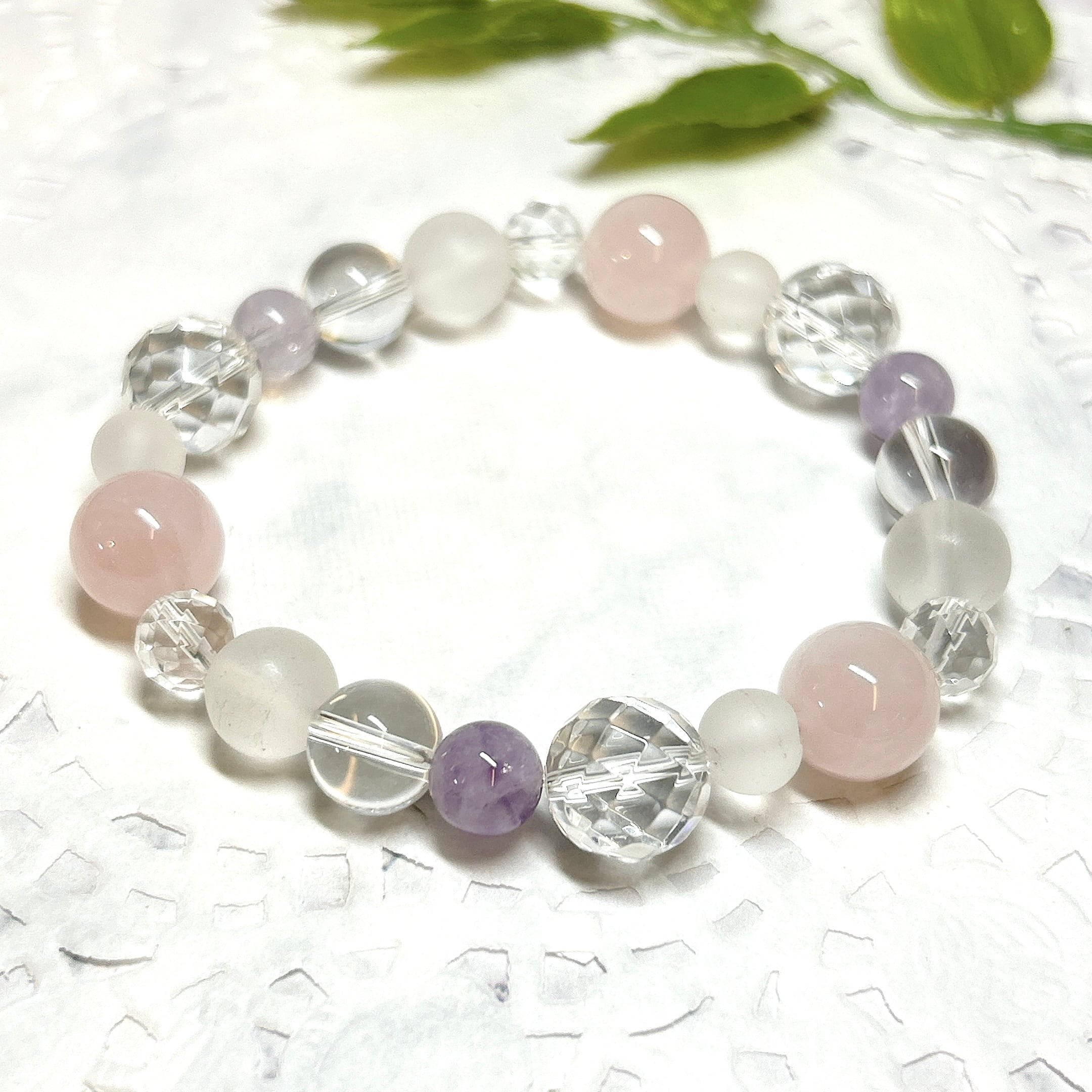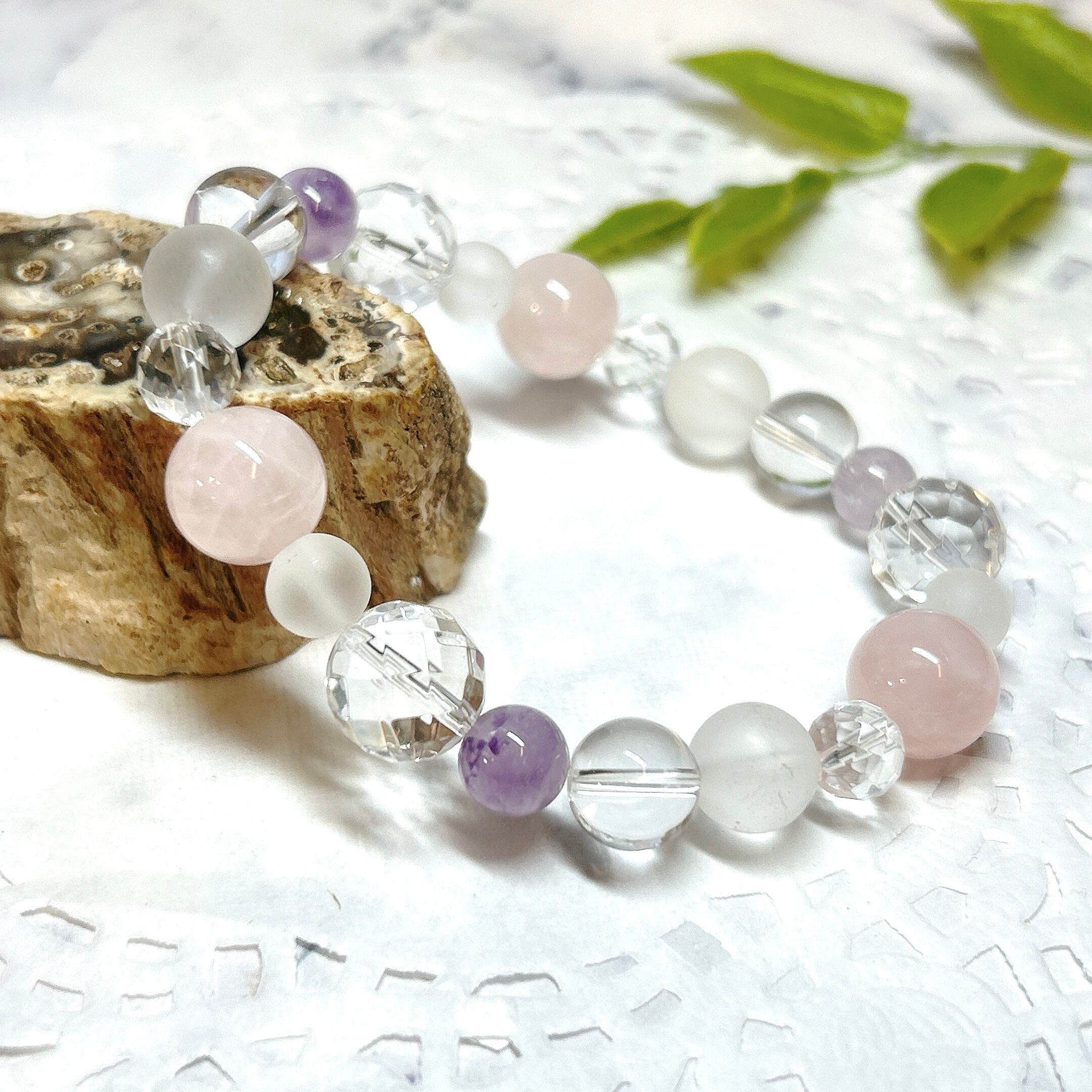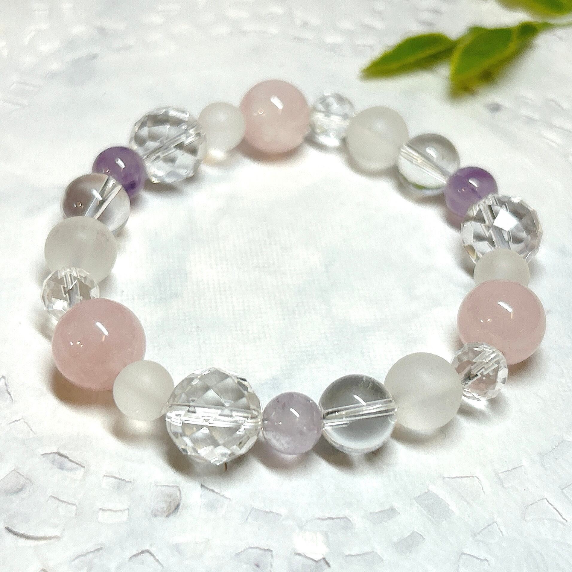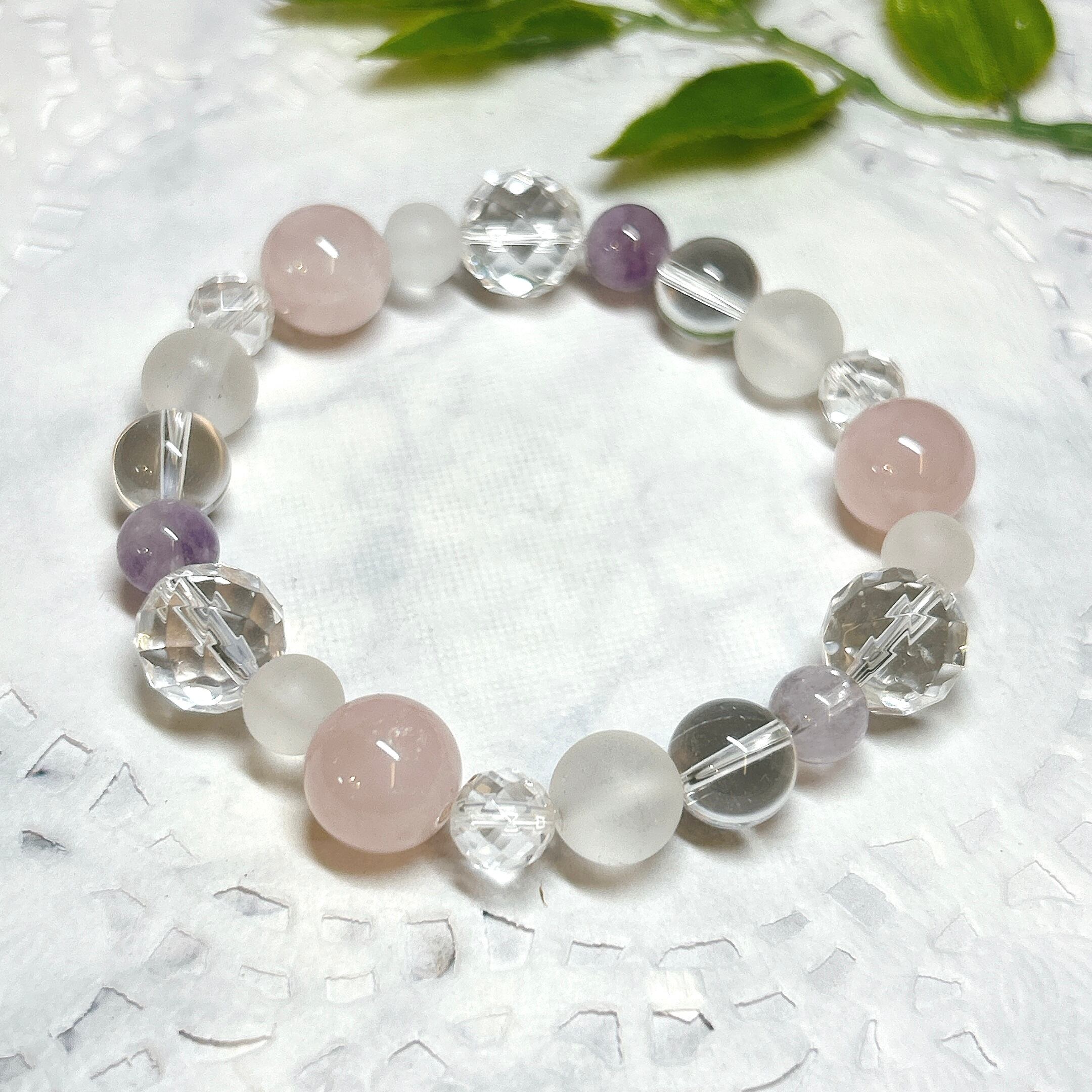 【E13596】ローズクォーツ ラベンダーアメシスト フロスト水晶 水晶 ブレスレット 天然石 紅水晶 Rose quartz