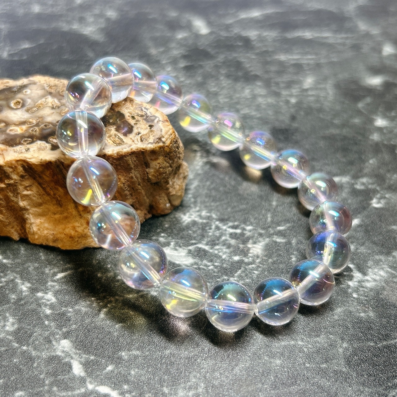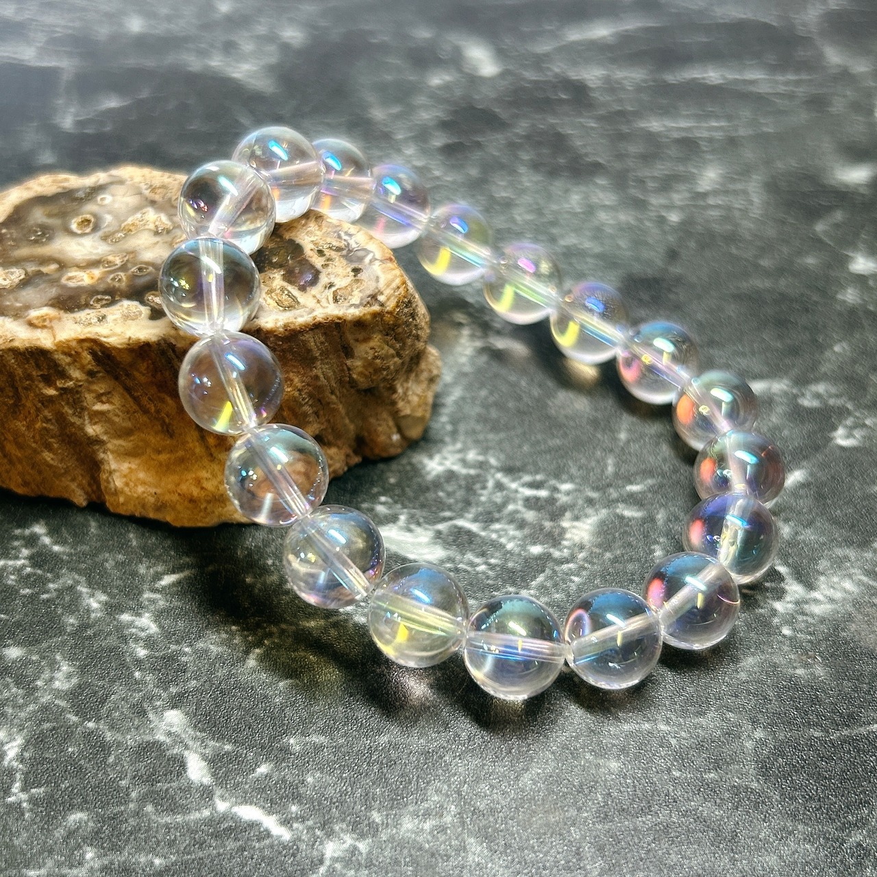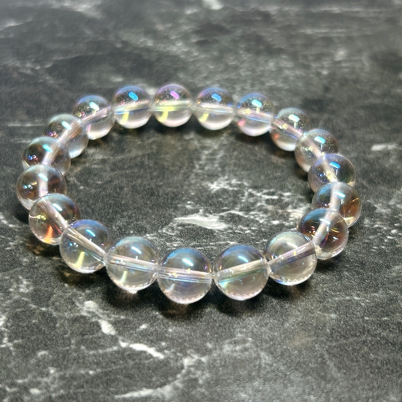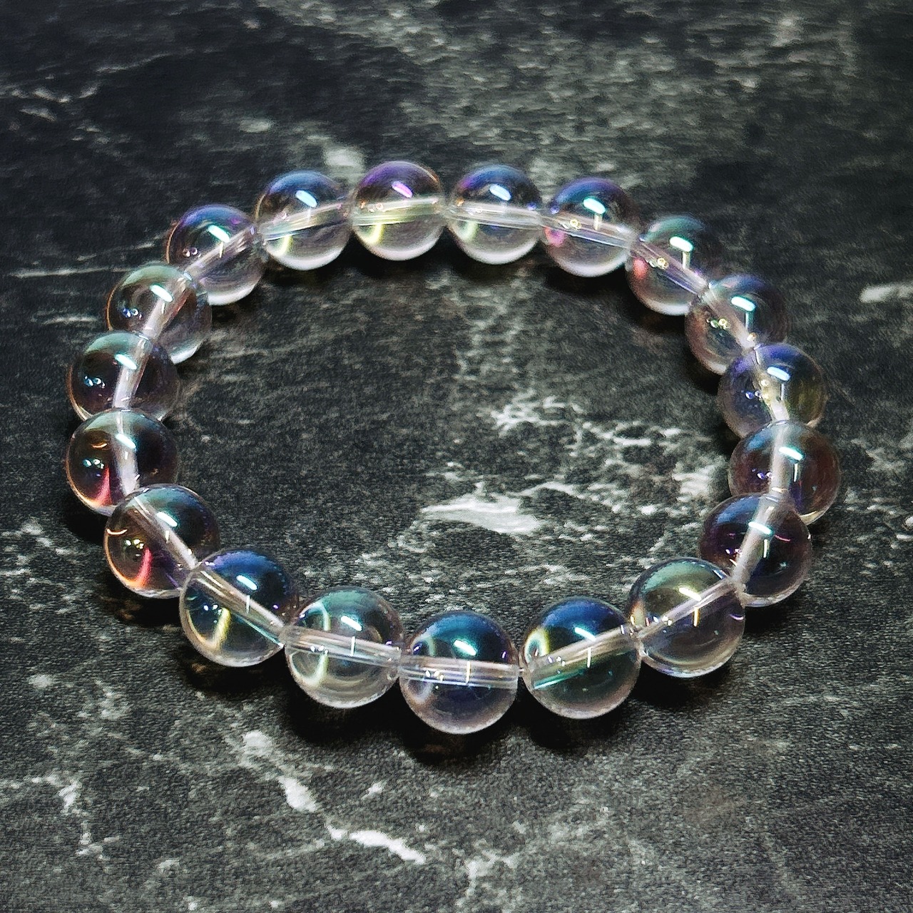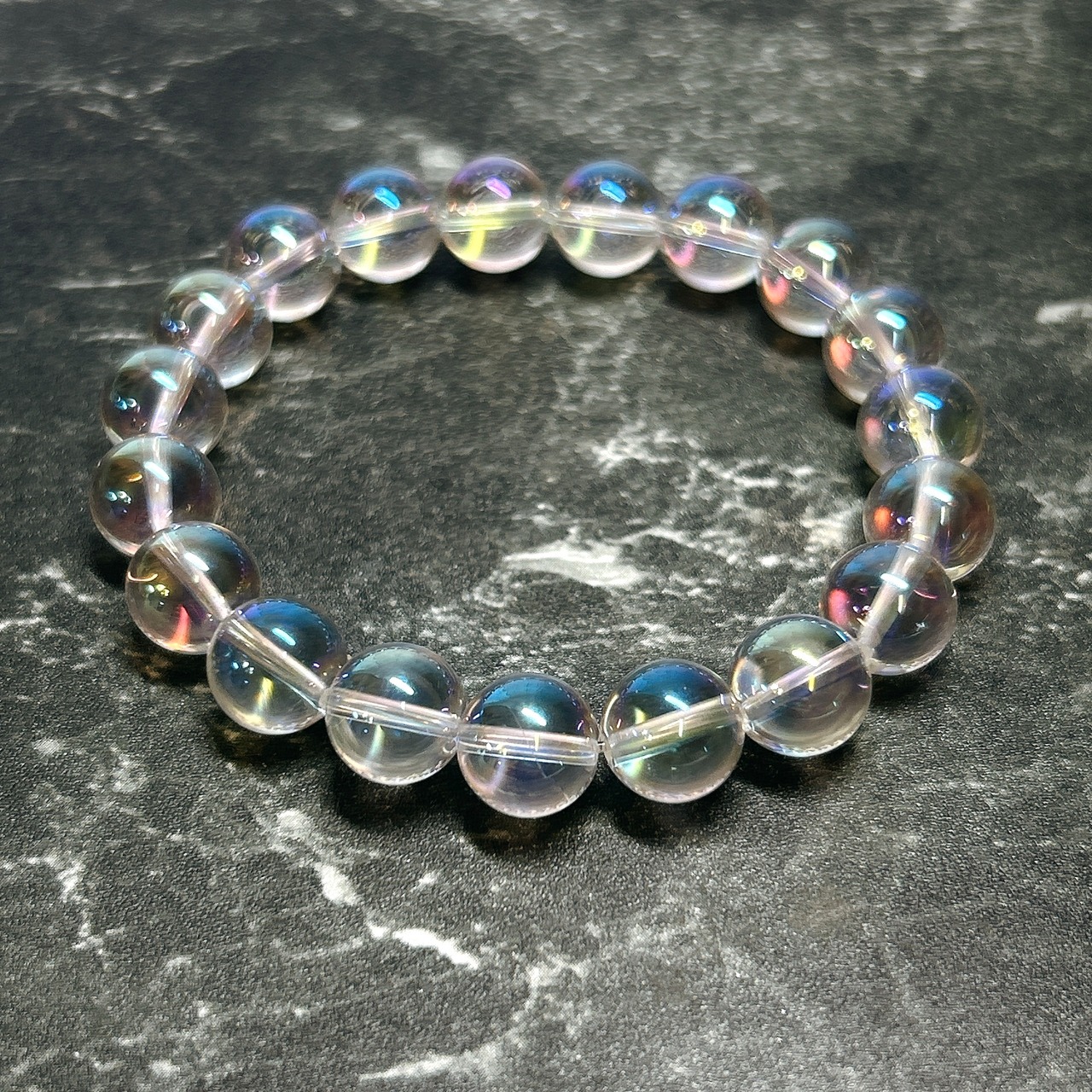【E13637】レインボーオーラ水晶 10㎜ ブレスレット オーラ水晶 ブレスレット
