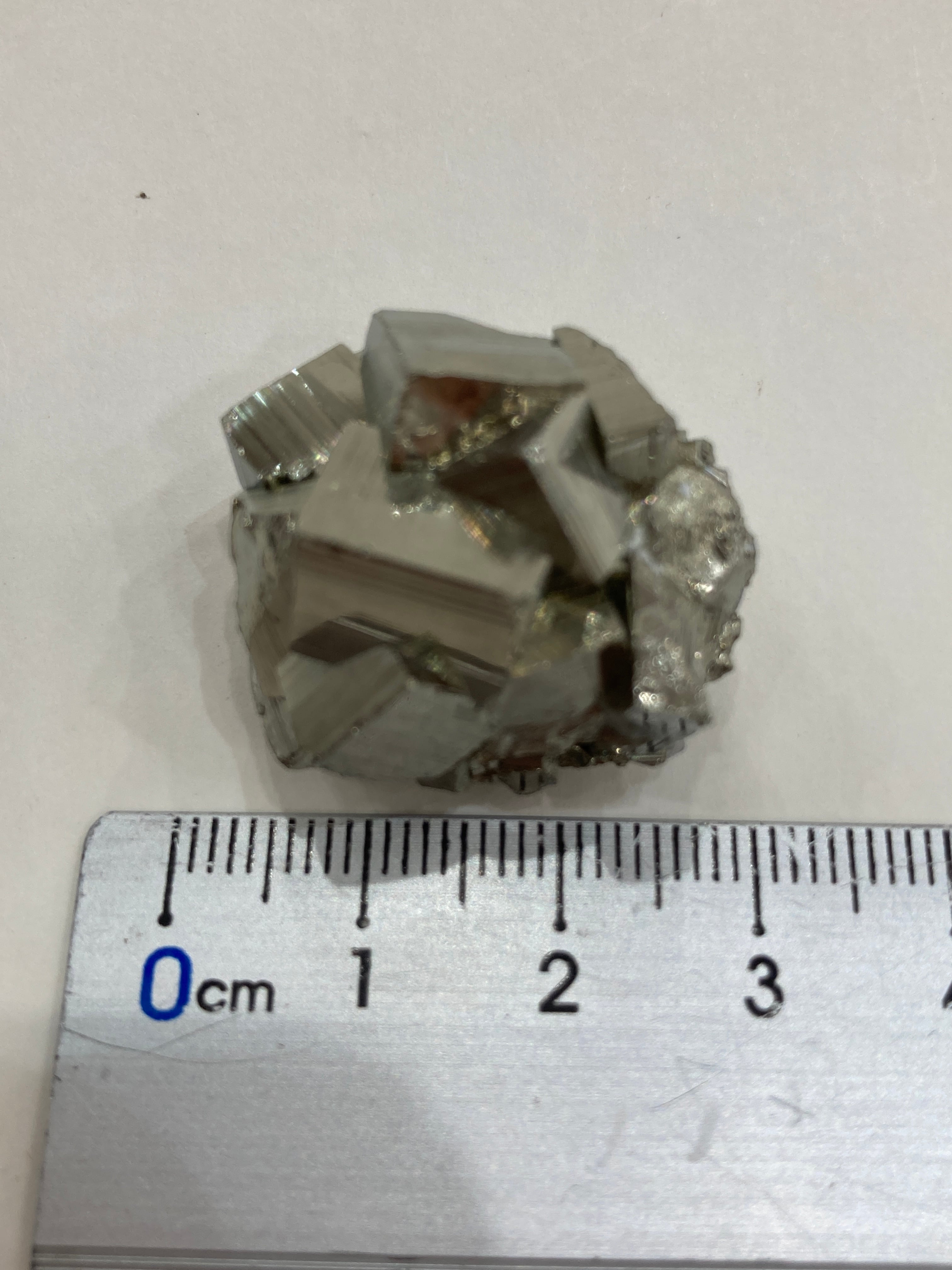 硫黄と鉄の化合物。黄金色の美しい光沢および、立方体、五画十二面体、八面体、二十四面体、又はそれらが合わさった形など様々な結晶をするので標本として人気があります。