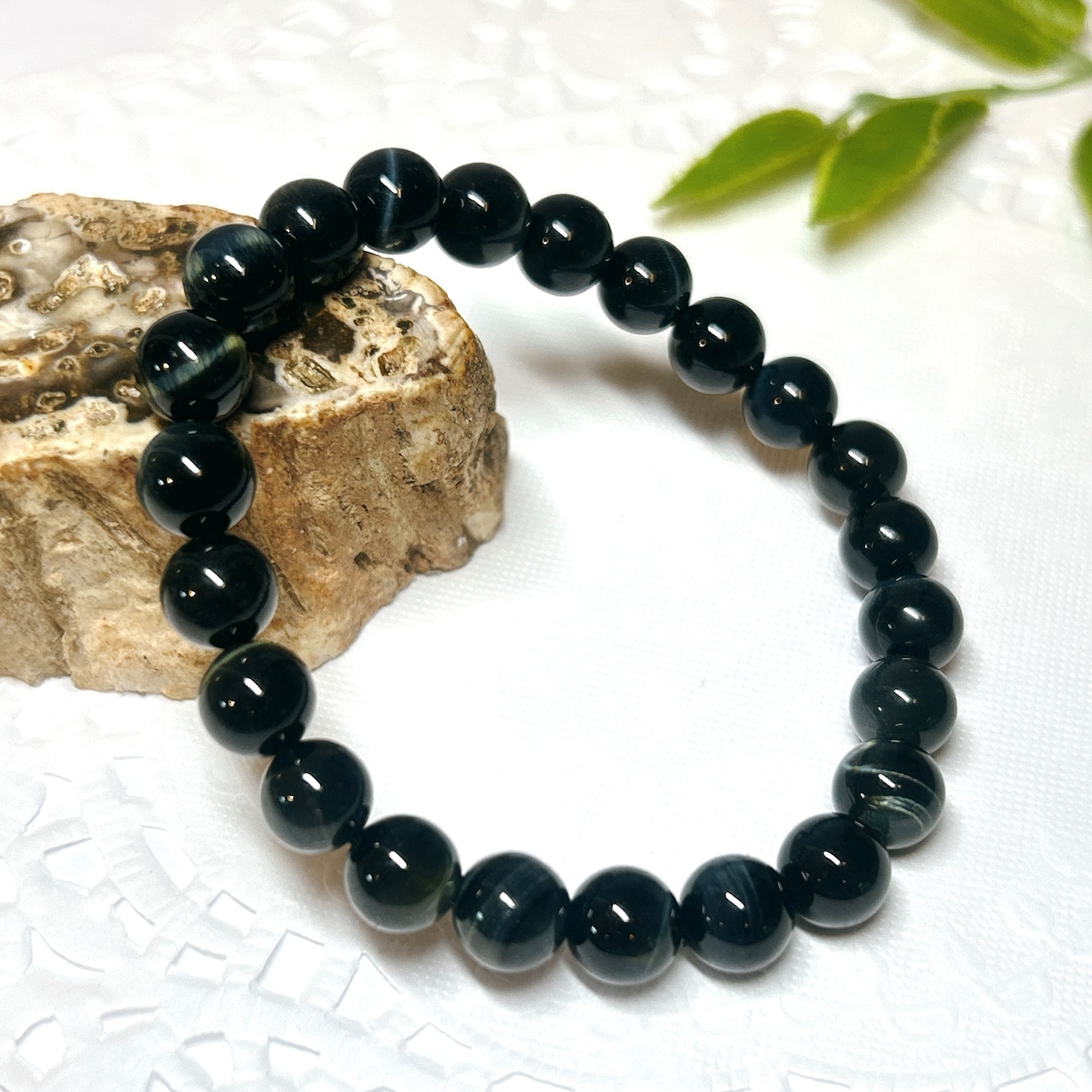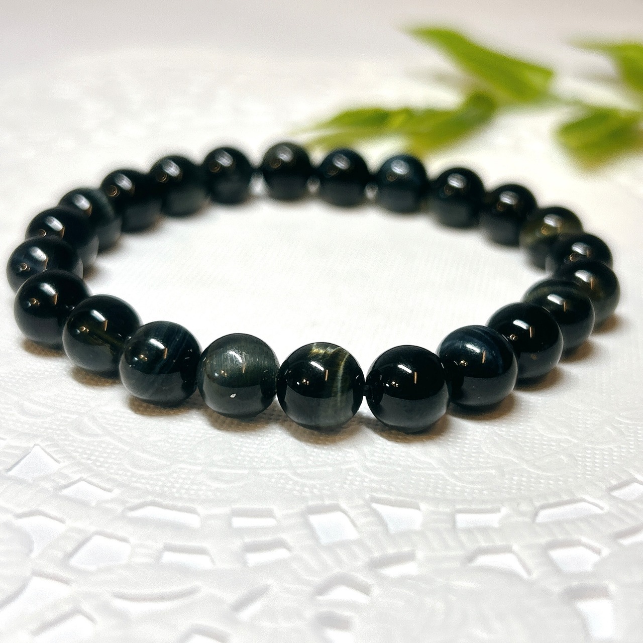 【E13980】ブルータイガーアイ 8㎜ ホークスアイ 青虎目石 ブレスレット 天然石 Blue Tiger Eye