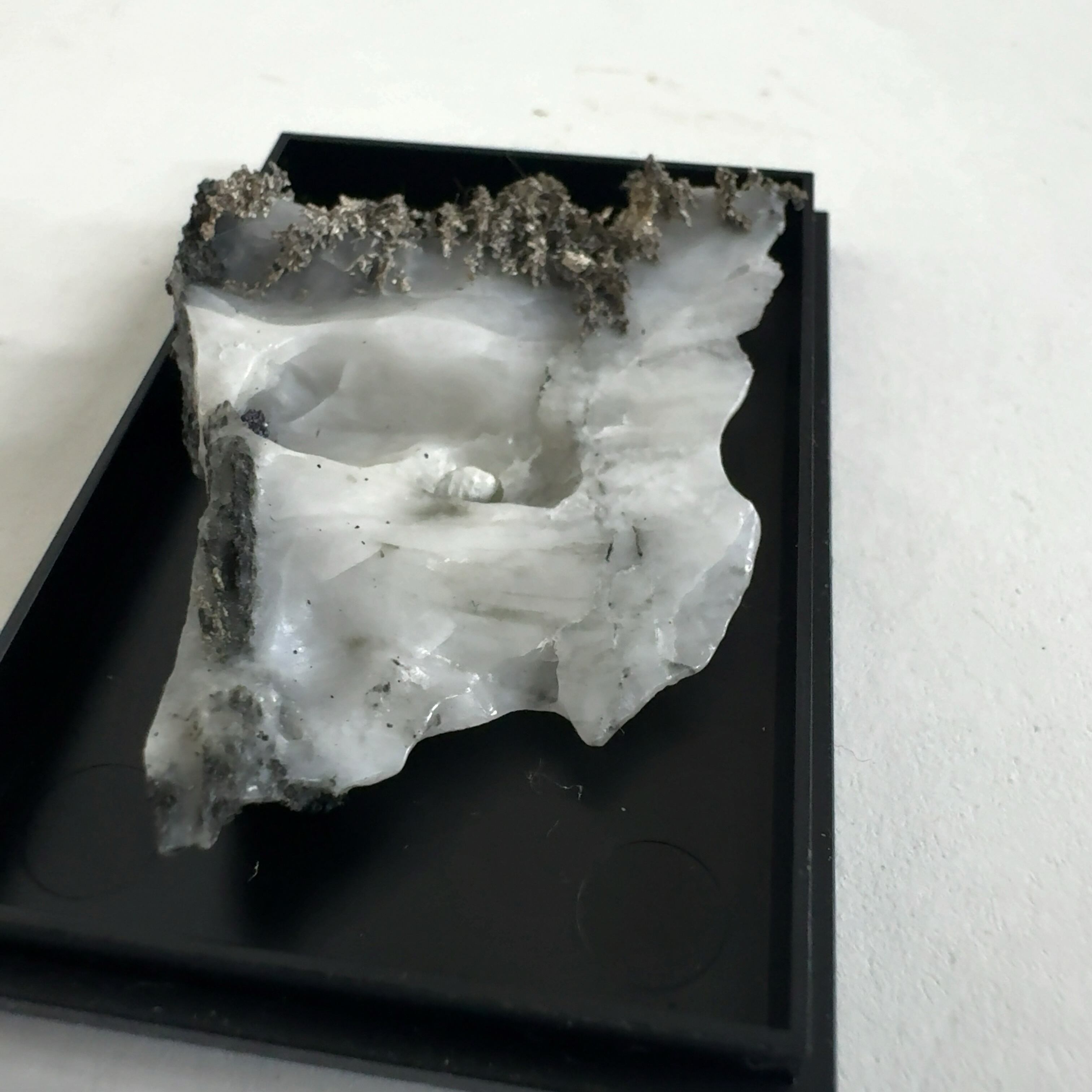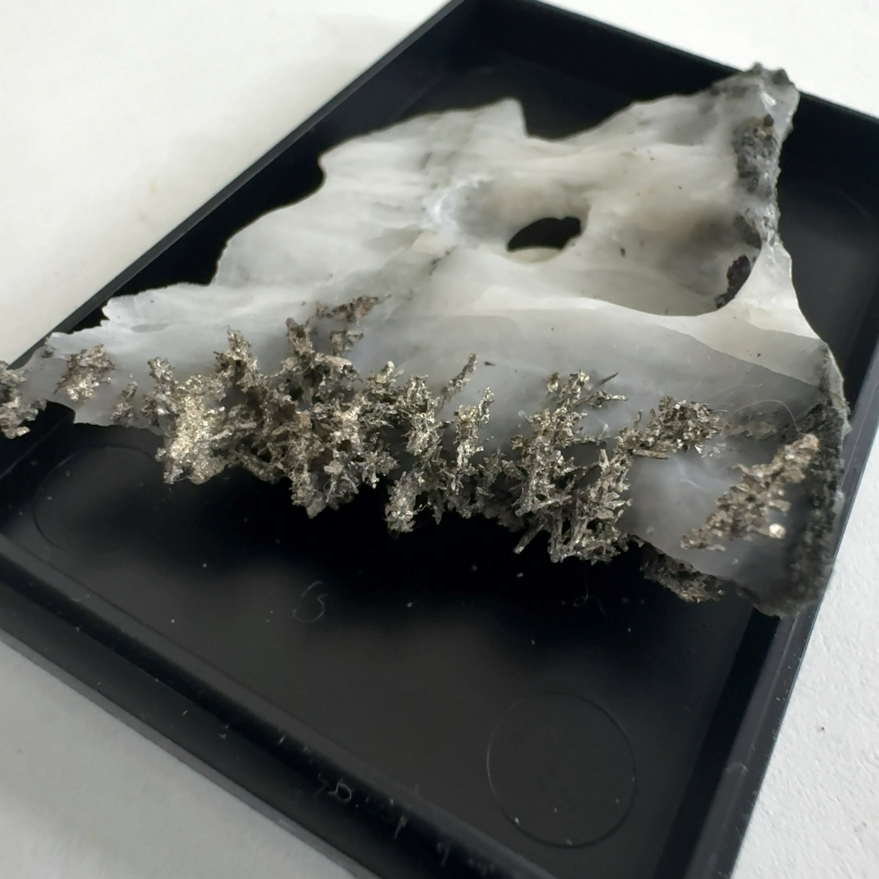 白い母岩に髭銀がくっついたもの。