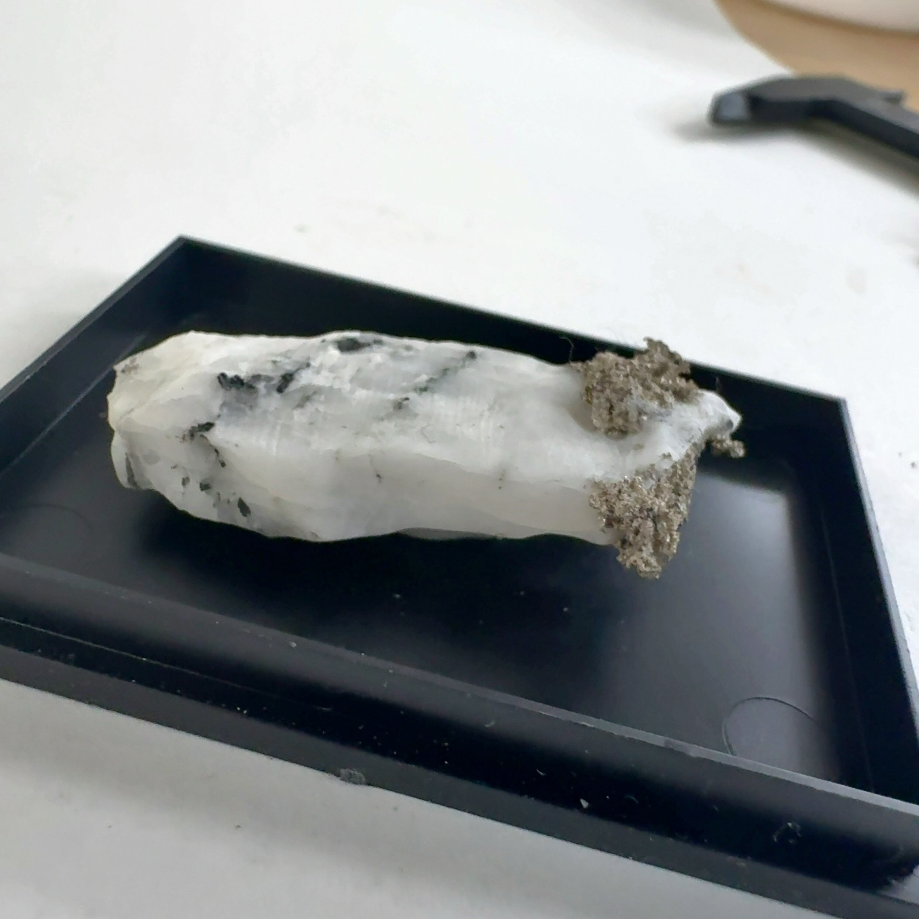 白い母岩に髭銀がくっついたもの。