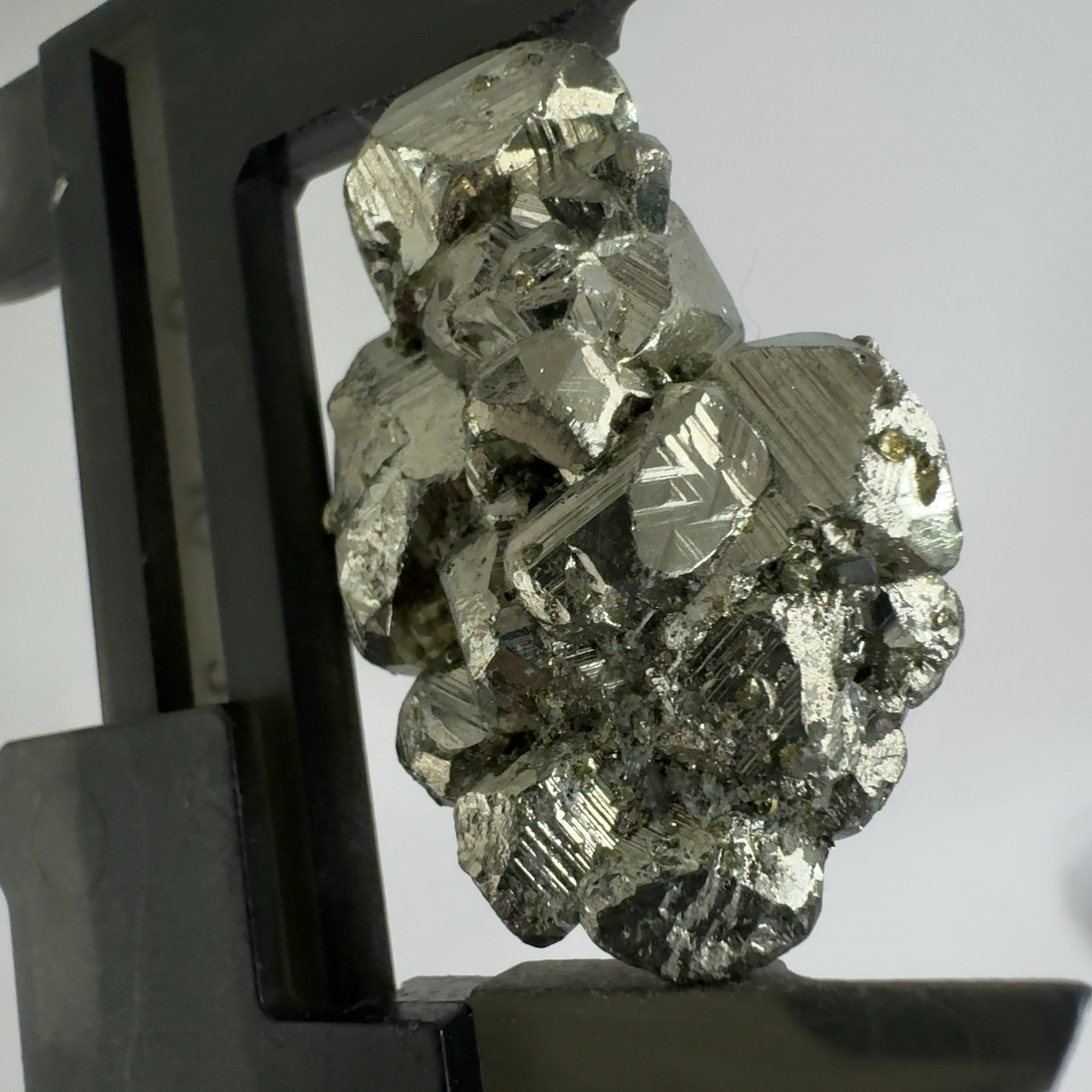硫黄と鉄の化合物。黄金色の美しい光沢および、立方体、五画十二面体、八面体、二十四面体、又はそれらが合わさった形など様々な結晶をするので標本として人気があります。