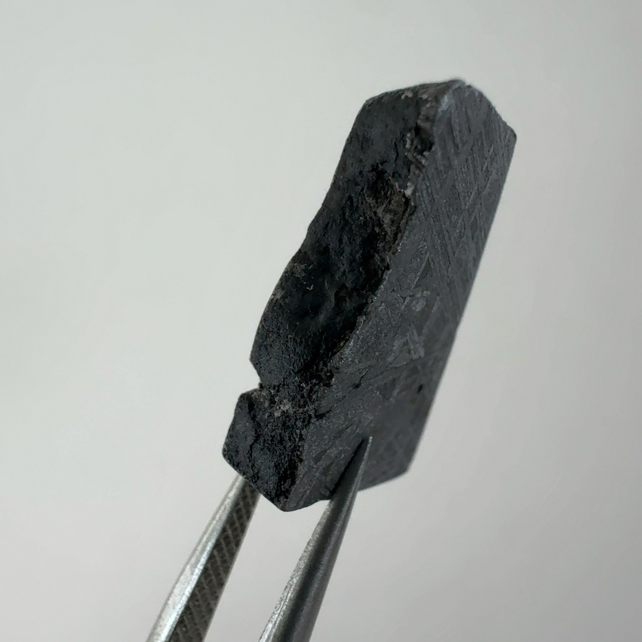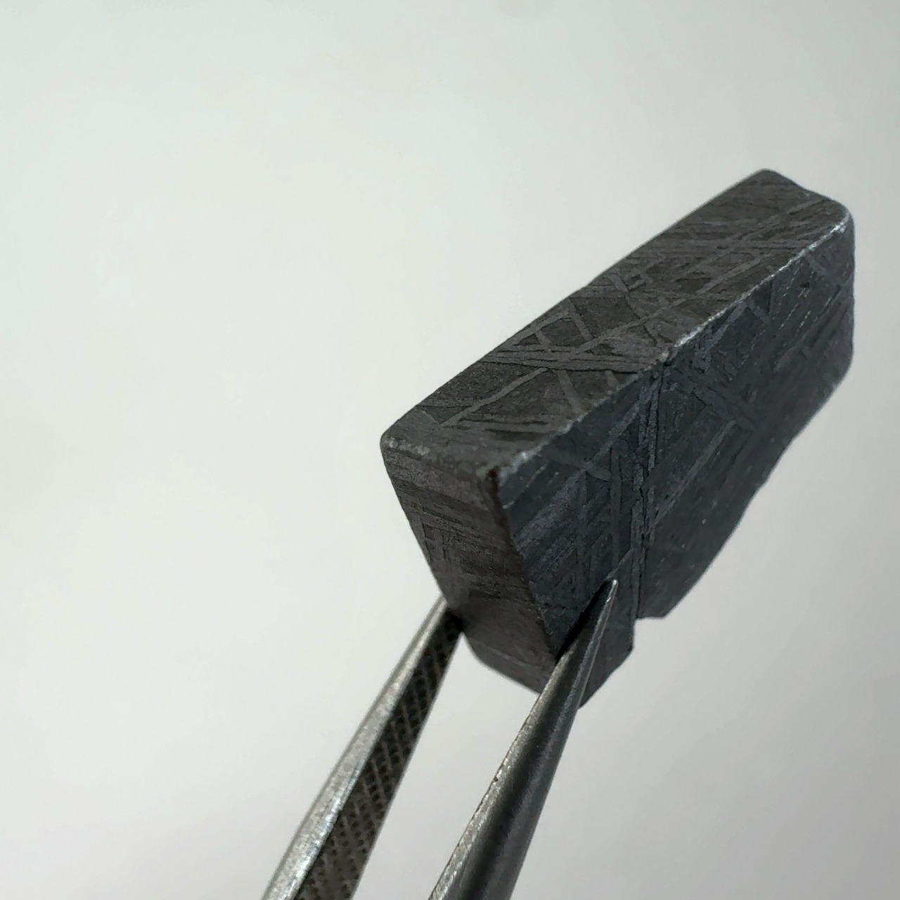 この模様は硝酸などの酸によるエッチングを行ったのち研磨すると、分離したニッケル結晶の特徴的な形状が観察可能となる。現時点の科学では再現できないためこの模様は隕石の証明にもなります。