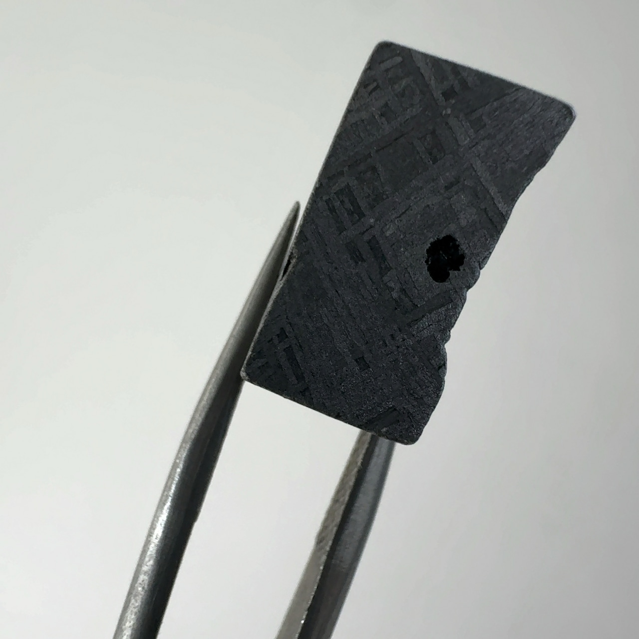 この模様は硝酸などの酸によるエッチングを行ったのち研磨すると、分離したニッケル結晶の特徴的な形状が観察可能となる。現時点の科学では再現できないためこの模様は隕石の証明にもなります。