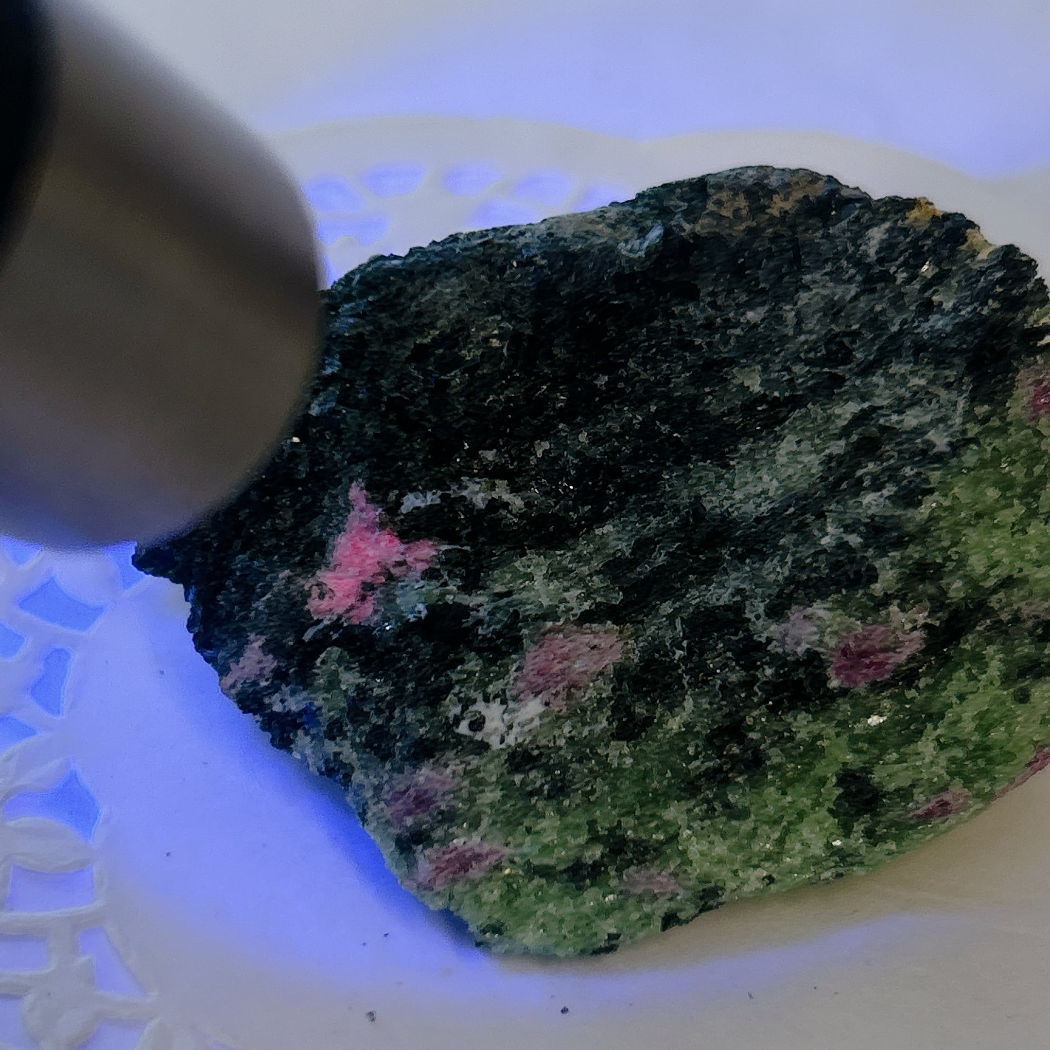 ルビー部分はブラックライトで赤く蛍光します。