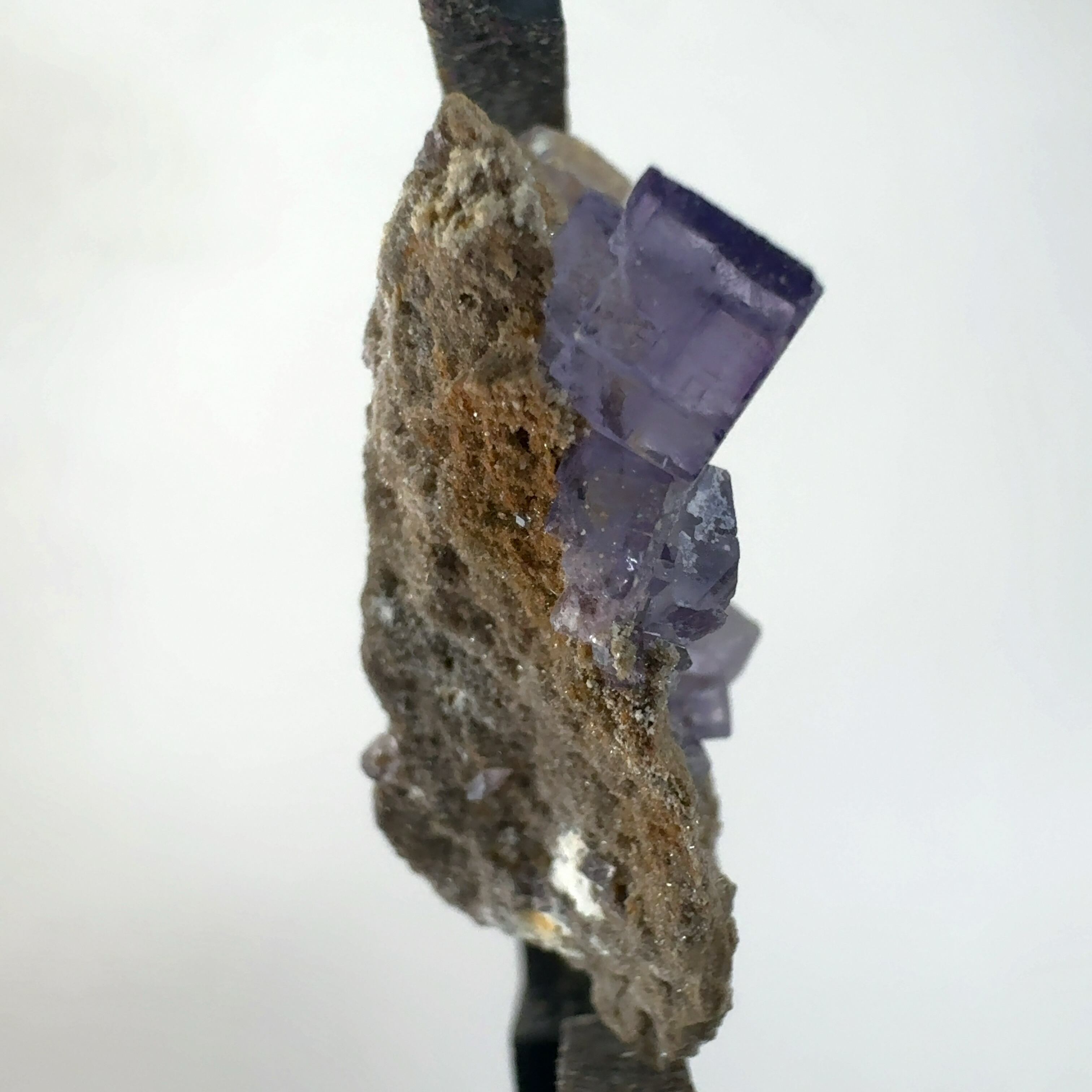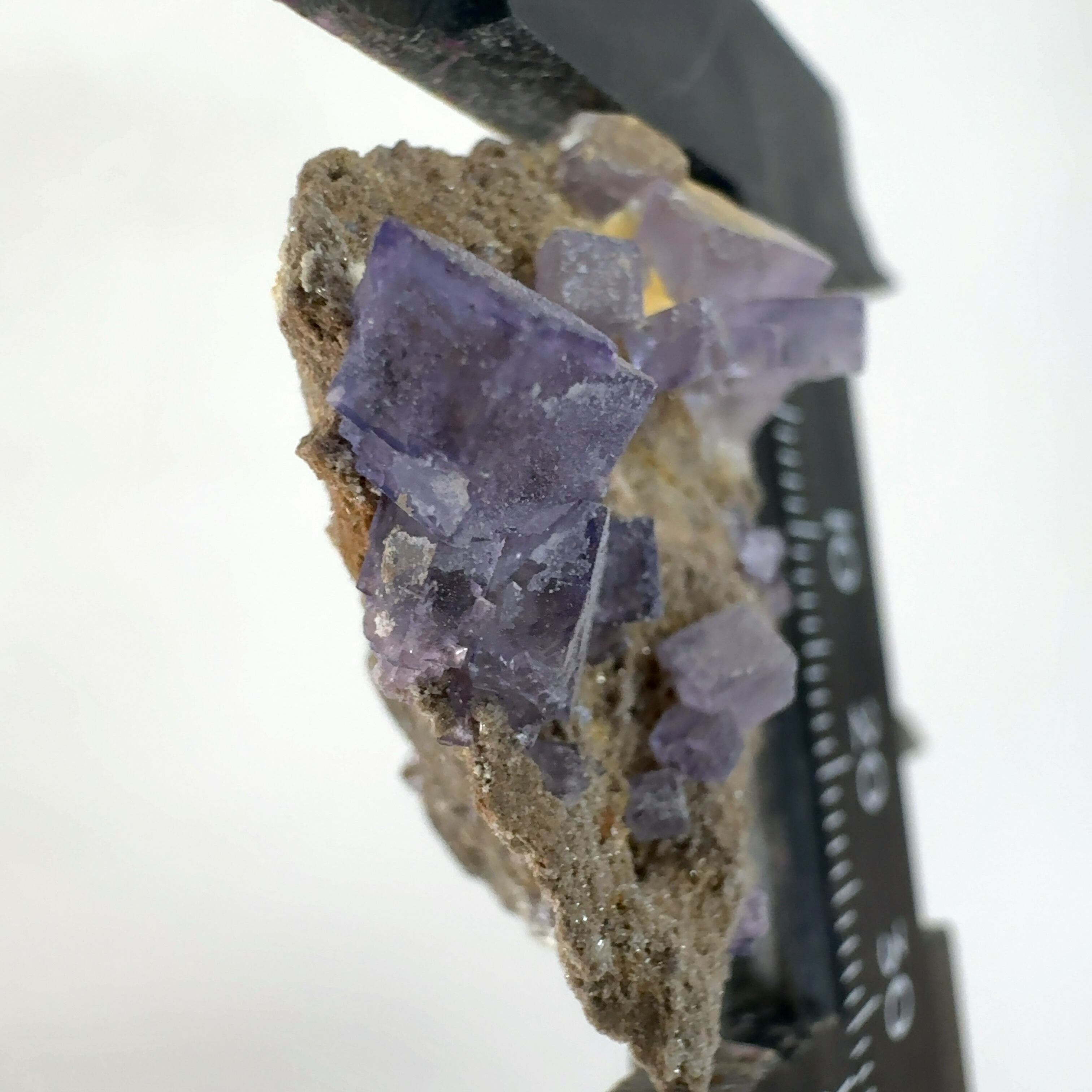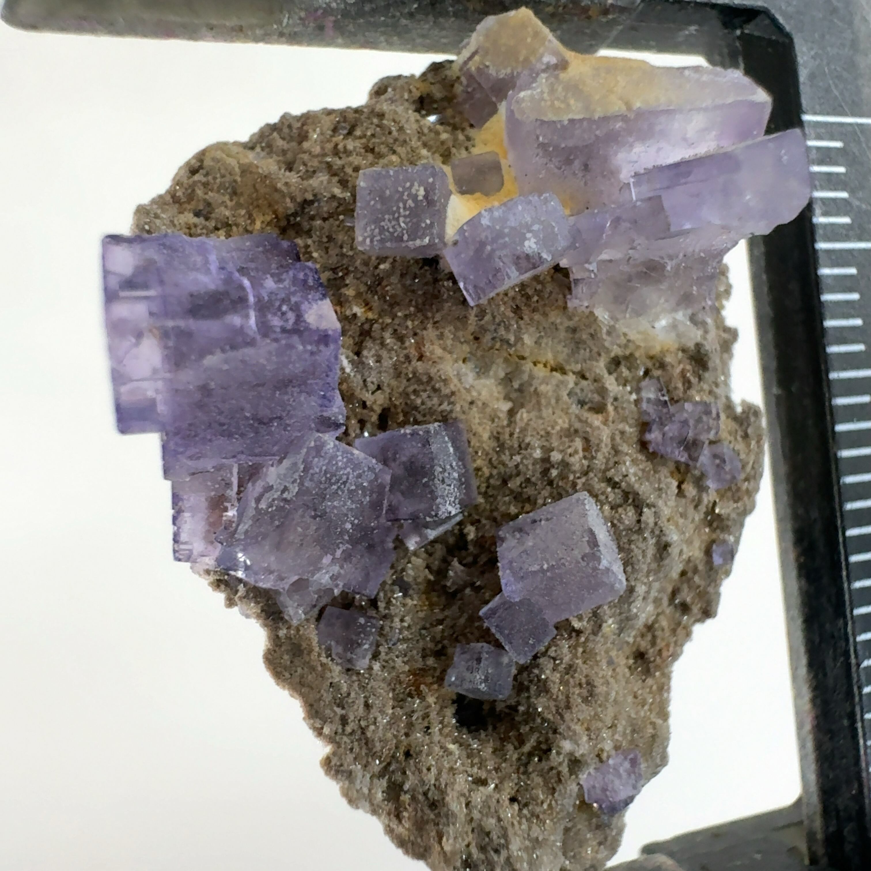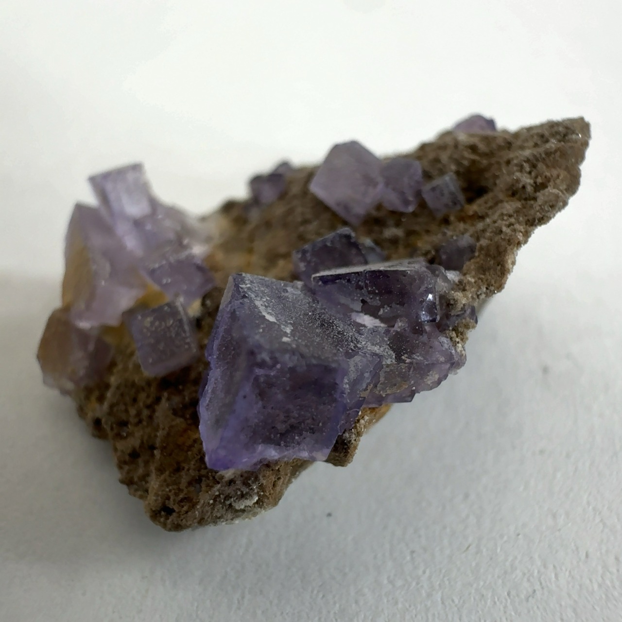 紫色の立法体の結晶が集合しています。