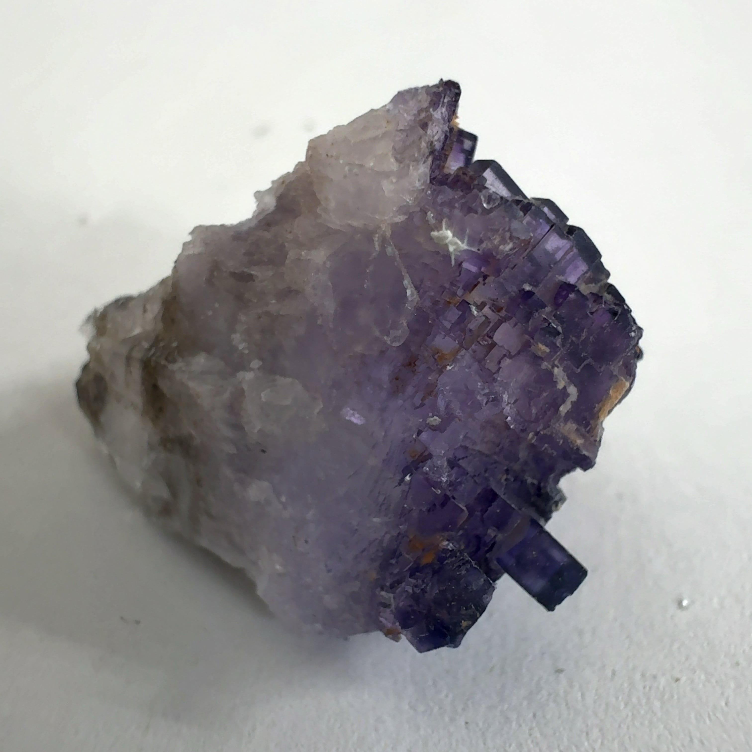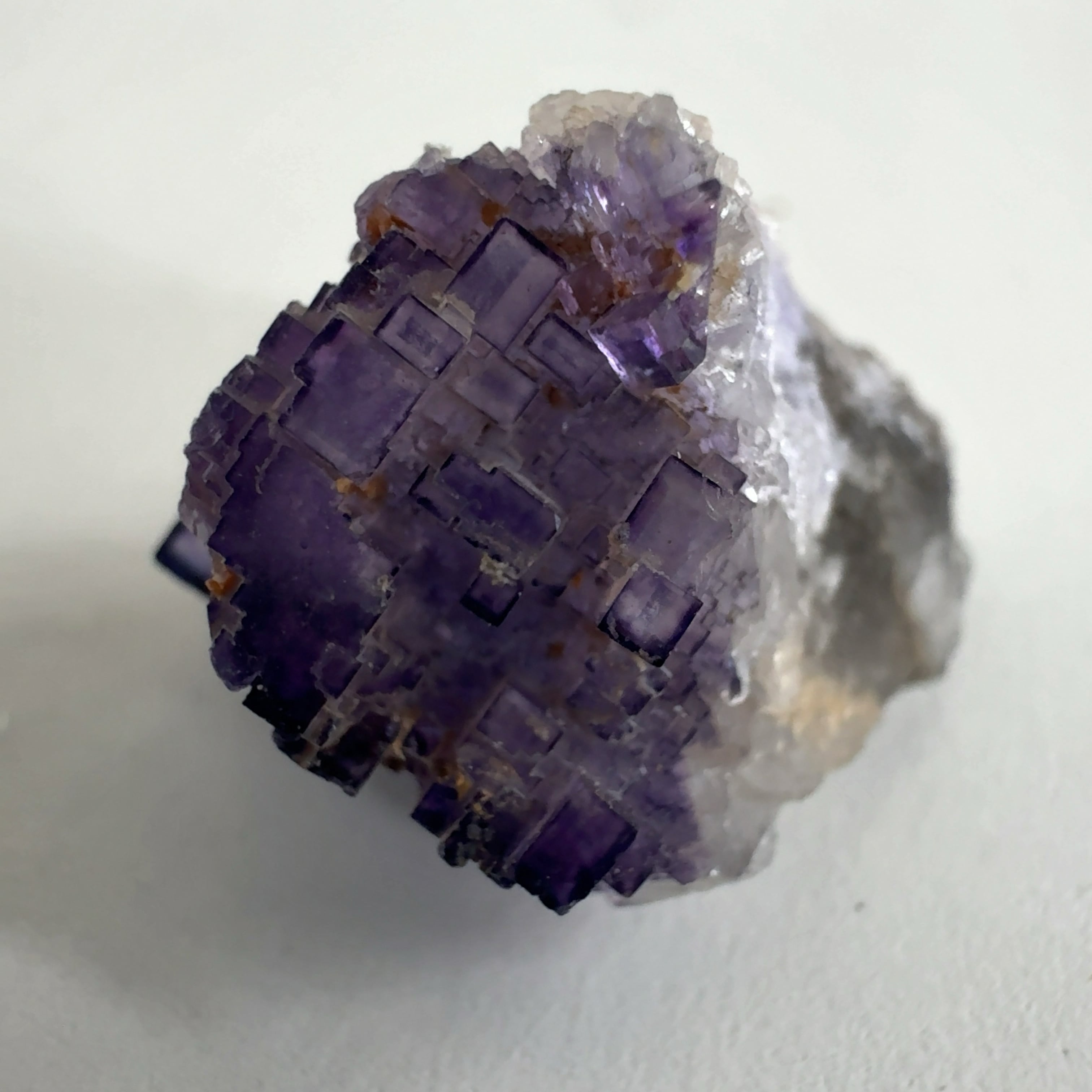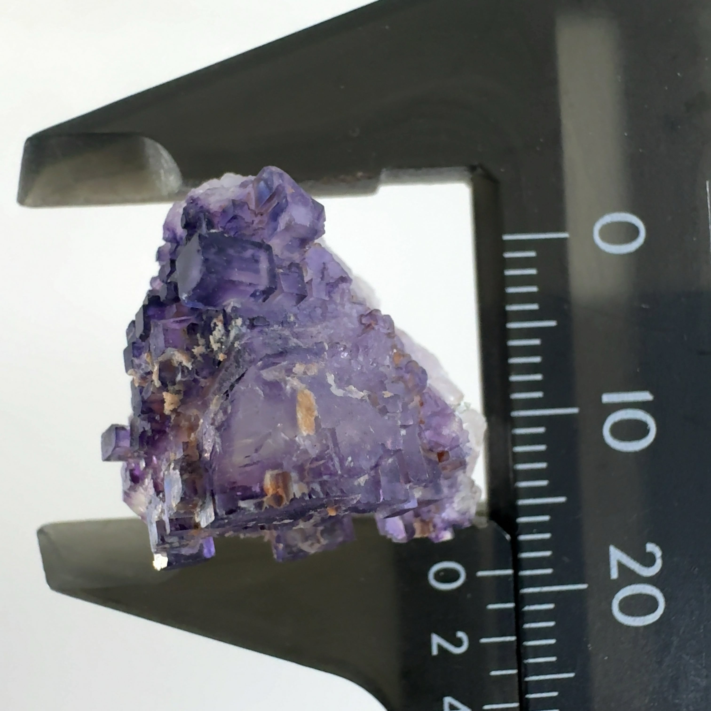 紫色の立法体の結晶が集合しています。