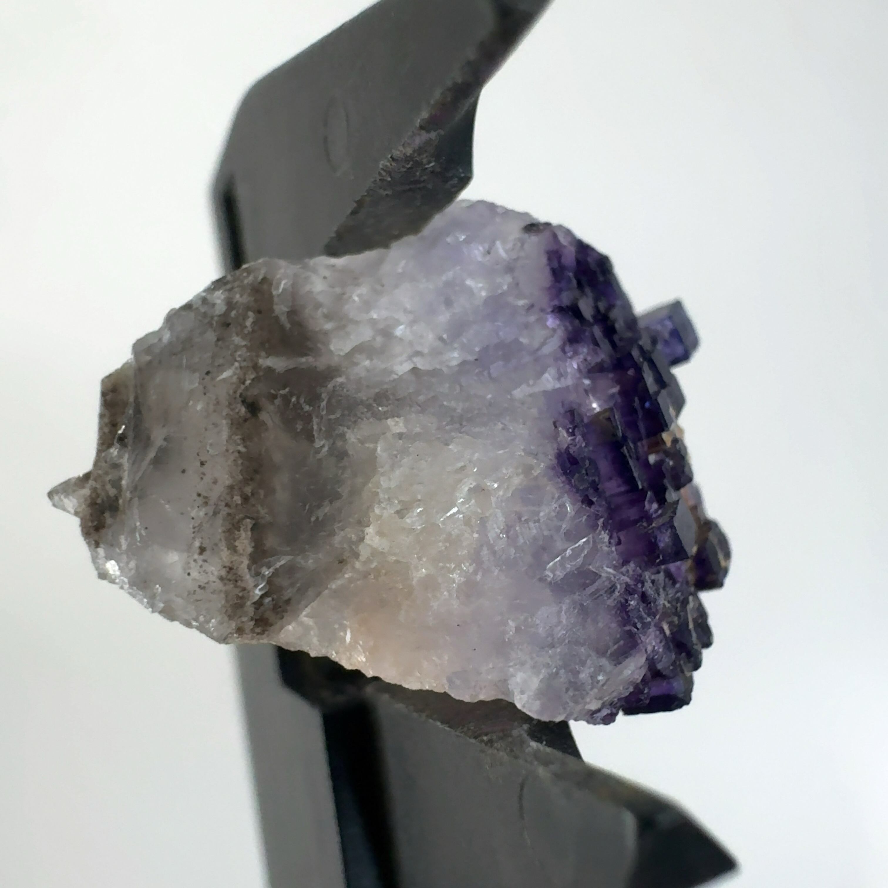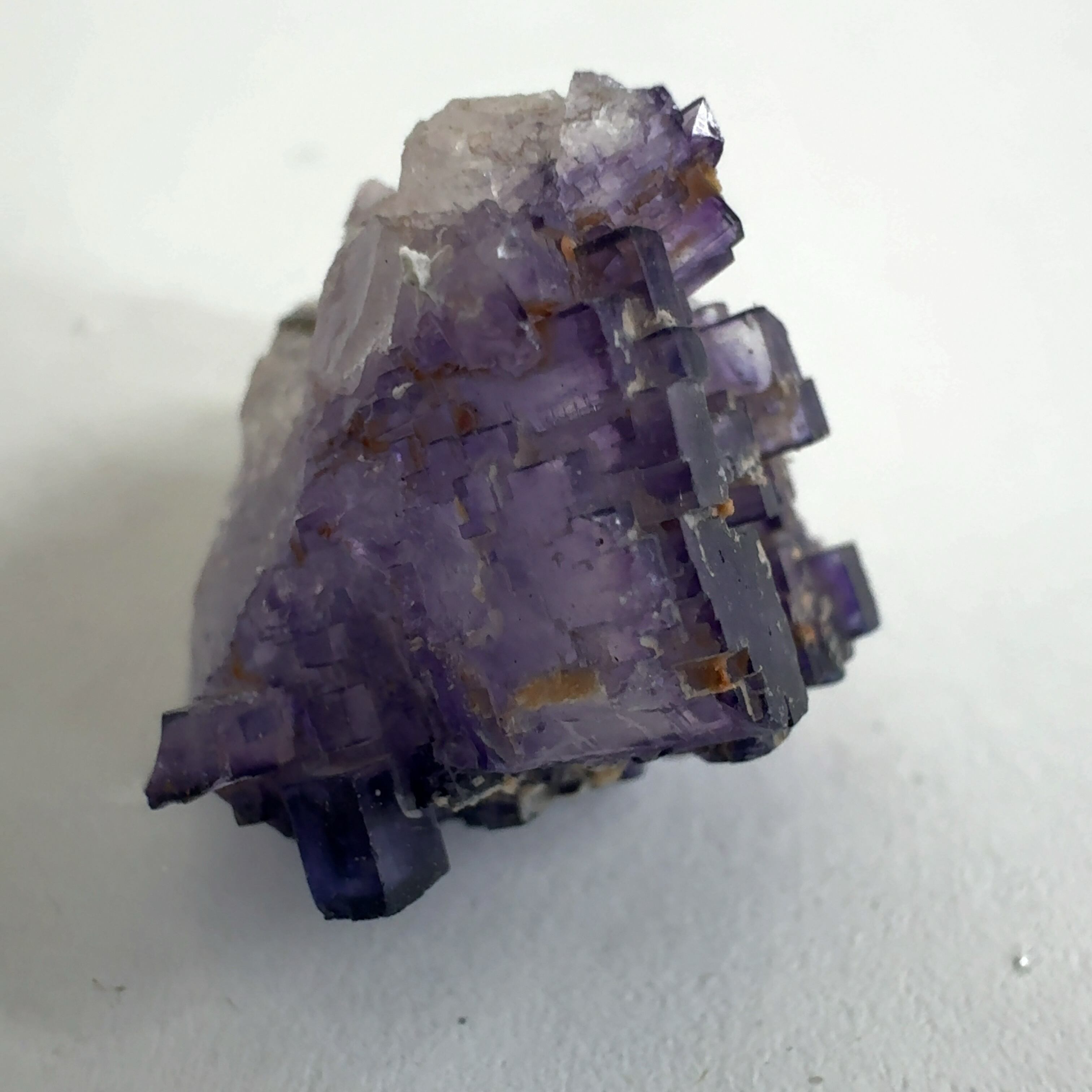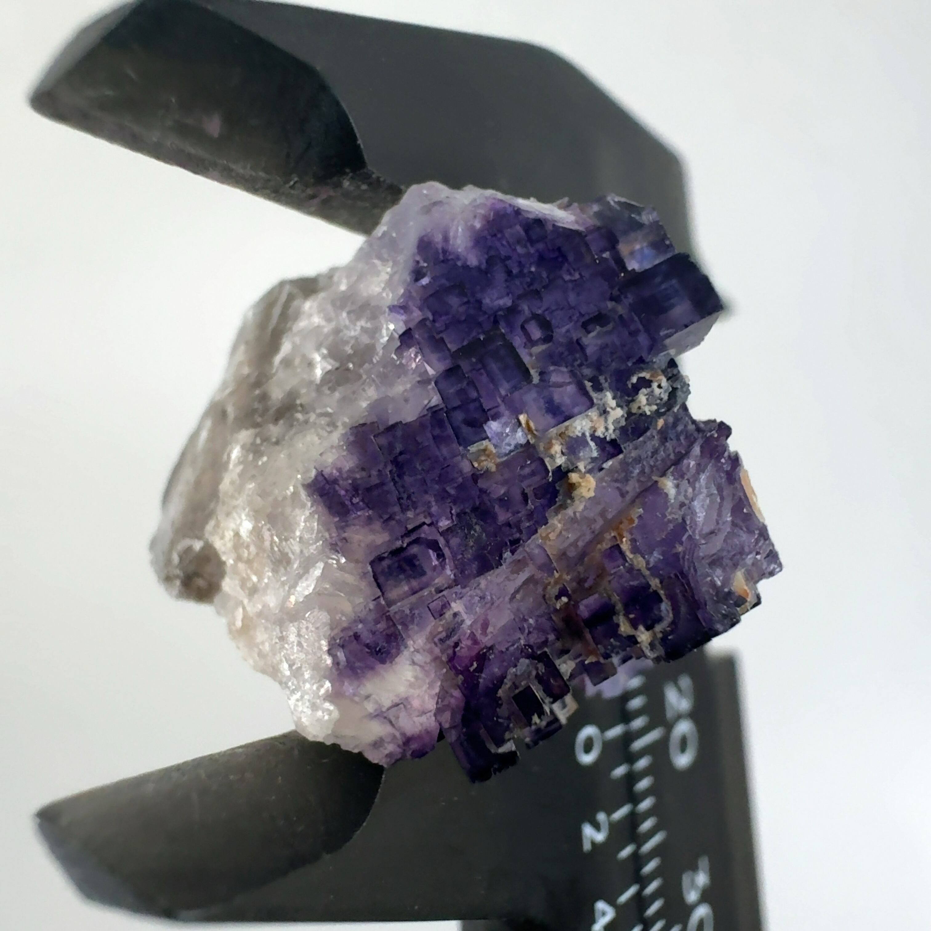 紫色の立法体の結晶が集合しています。