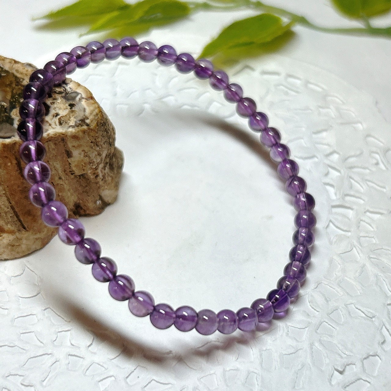 【E14796】アメシスト 4㎜ 紫水晶 ブレスレット 天然石 Amethyst パワーストーン クリスタルワールド