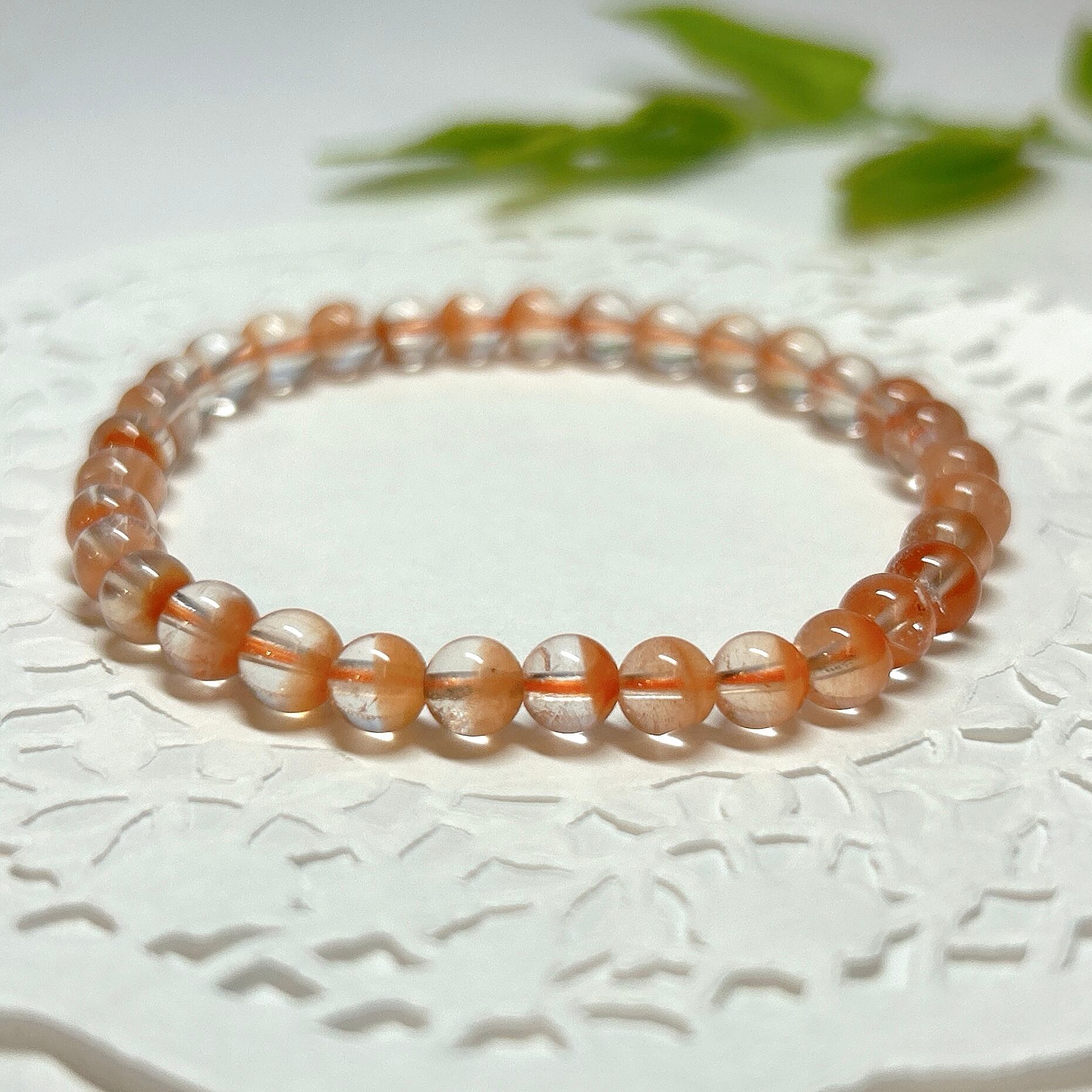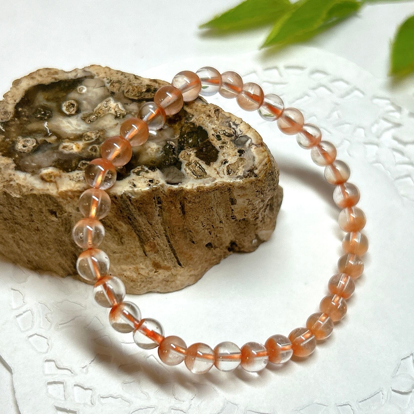 【E14819】オレンジラビットヘアー ブレスレット5-6㎜ アンフィボール Rabbit Hair/bracelet