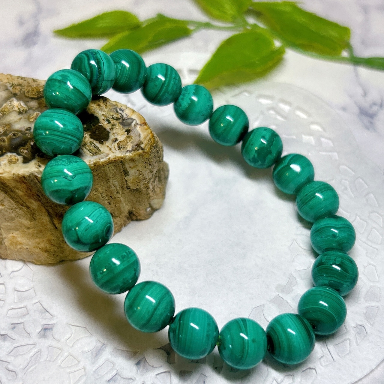 【E14979】マラカイト 10㎜ ブレスレット Malachite*bracelet 天然石 アクセサリー パワーストーン クリスタルワールド