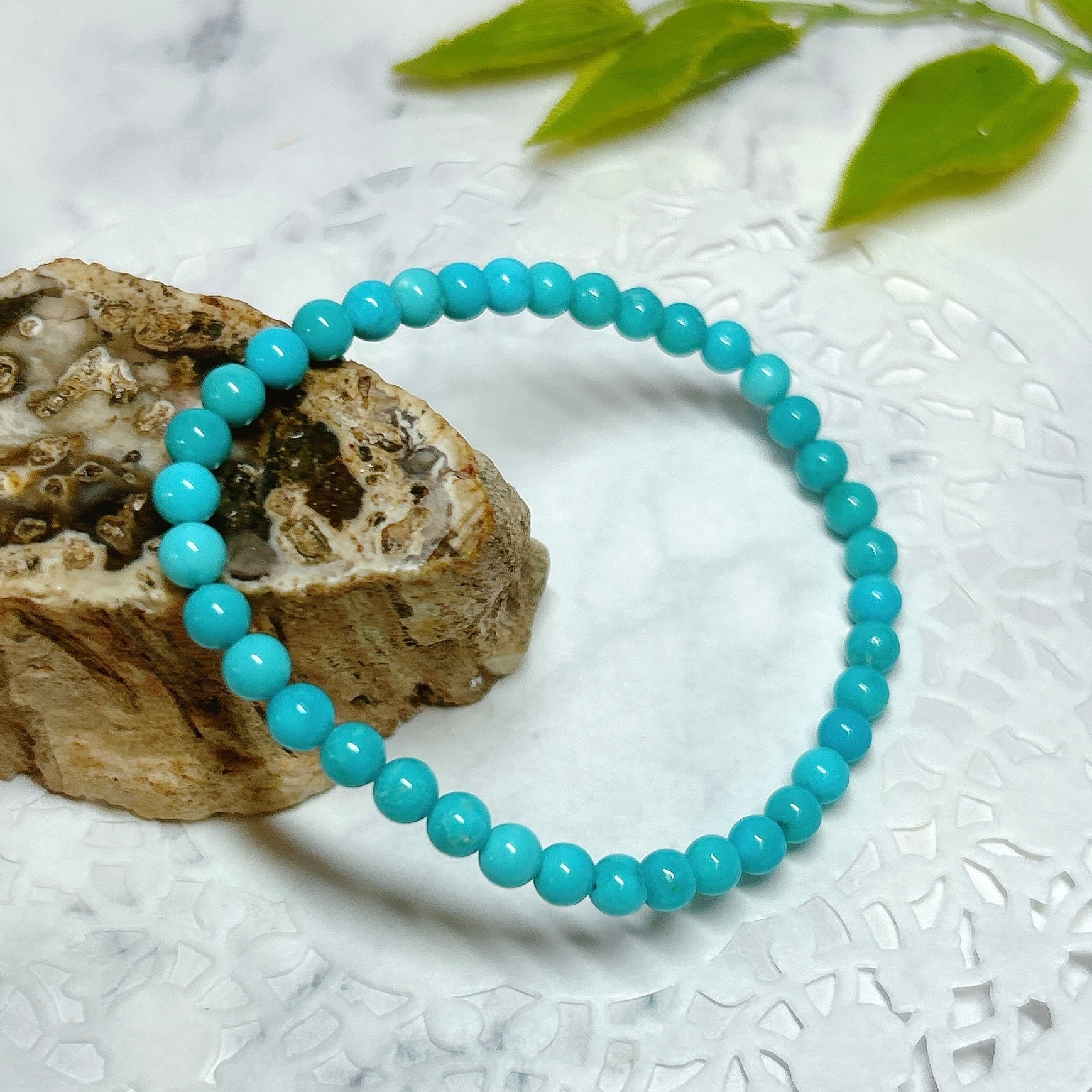 【E15002】スリーピングビューティー トルコ石 5㎜ ターコイズ ブレスレット Turquoise bracelet