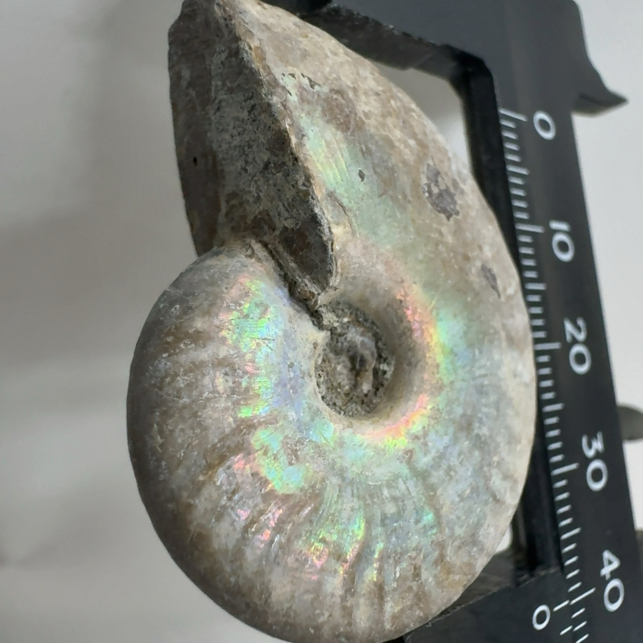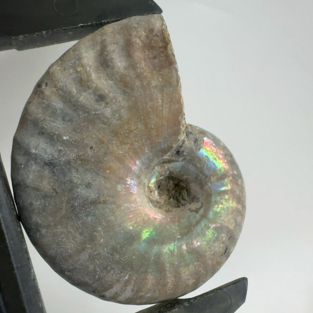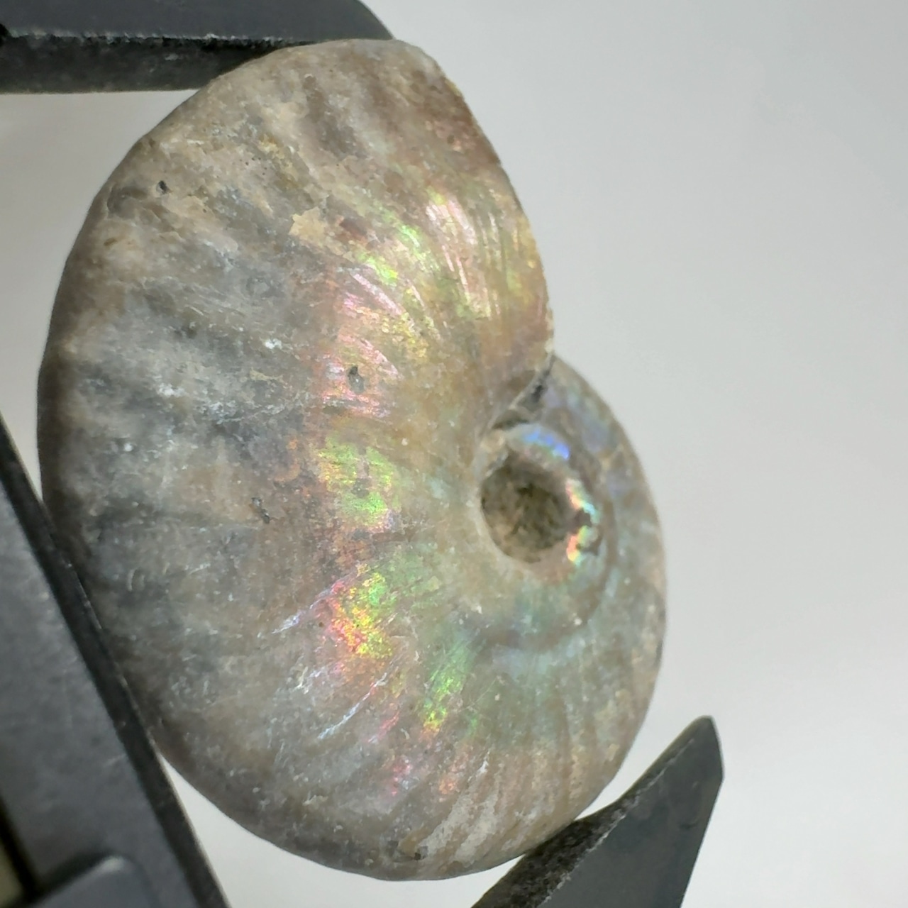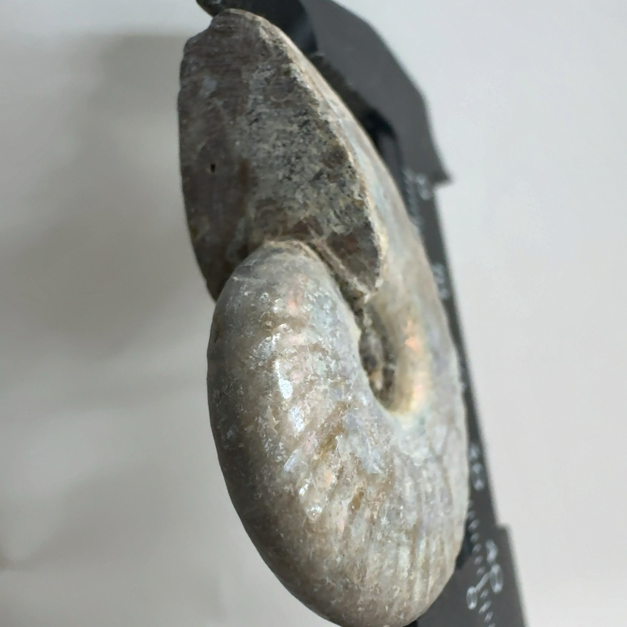 表面の真珠層が光輝く美しいアンモナイト。