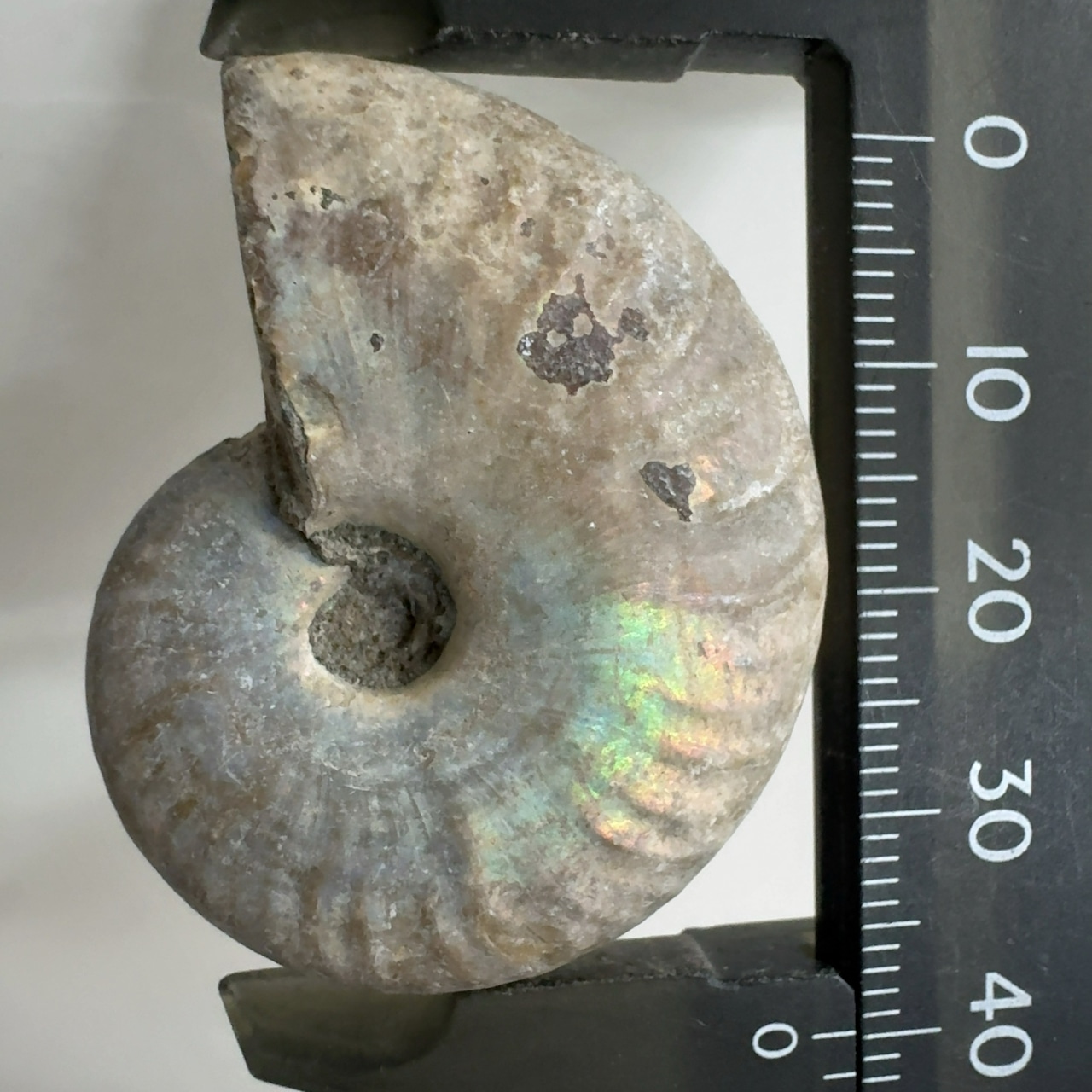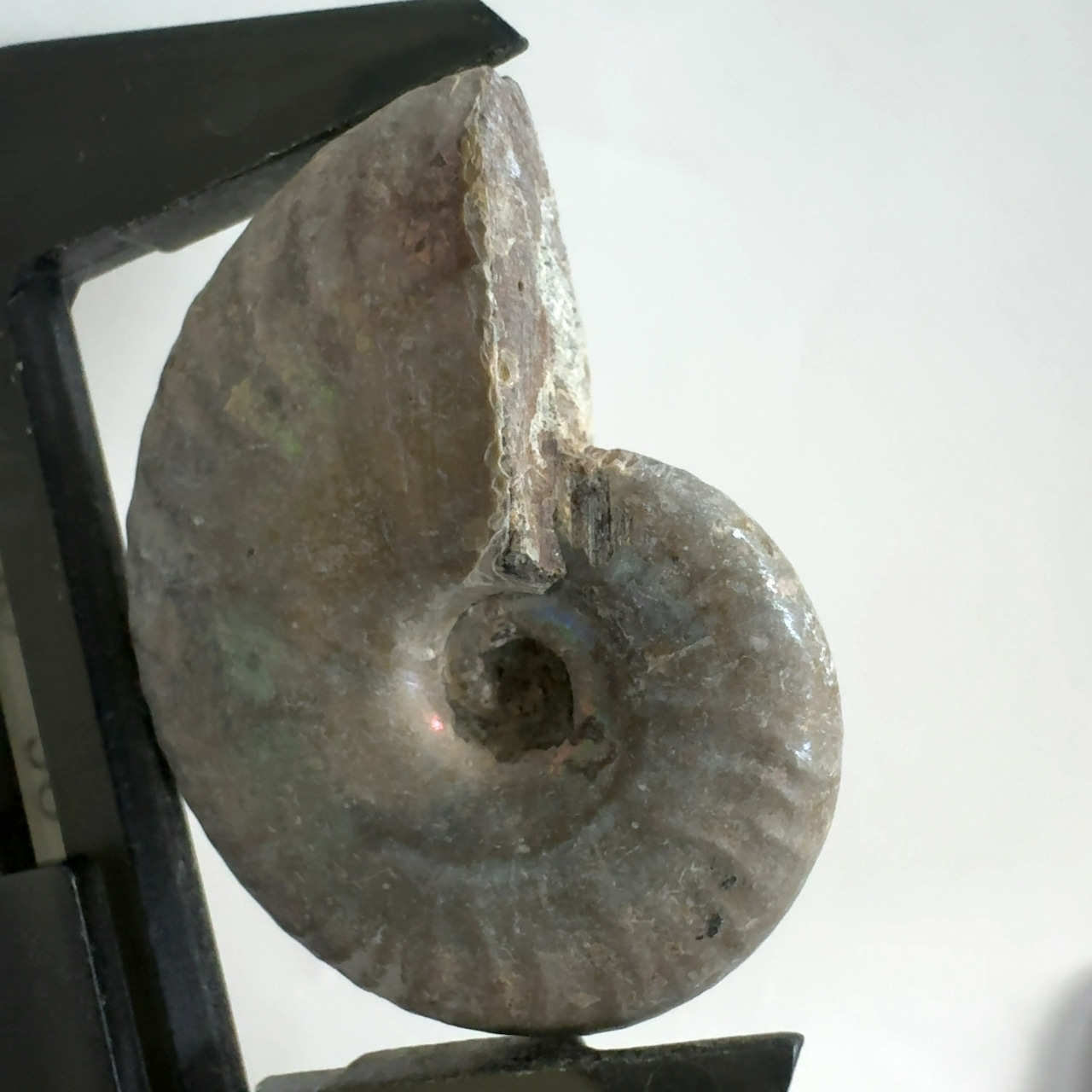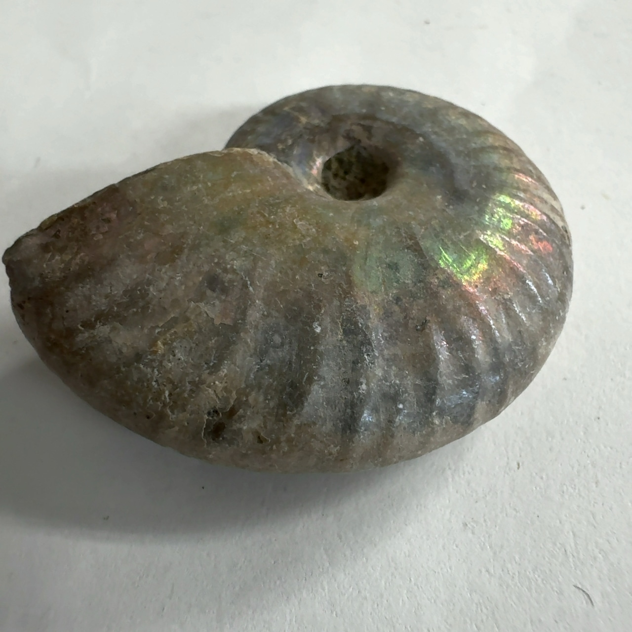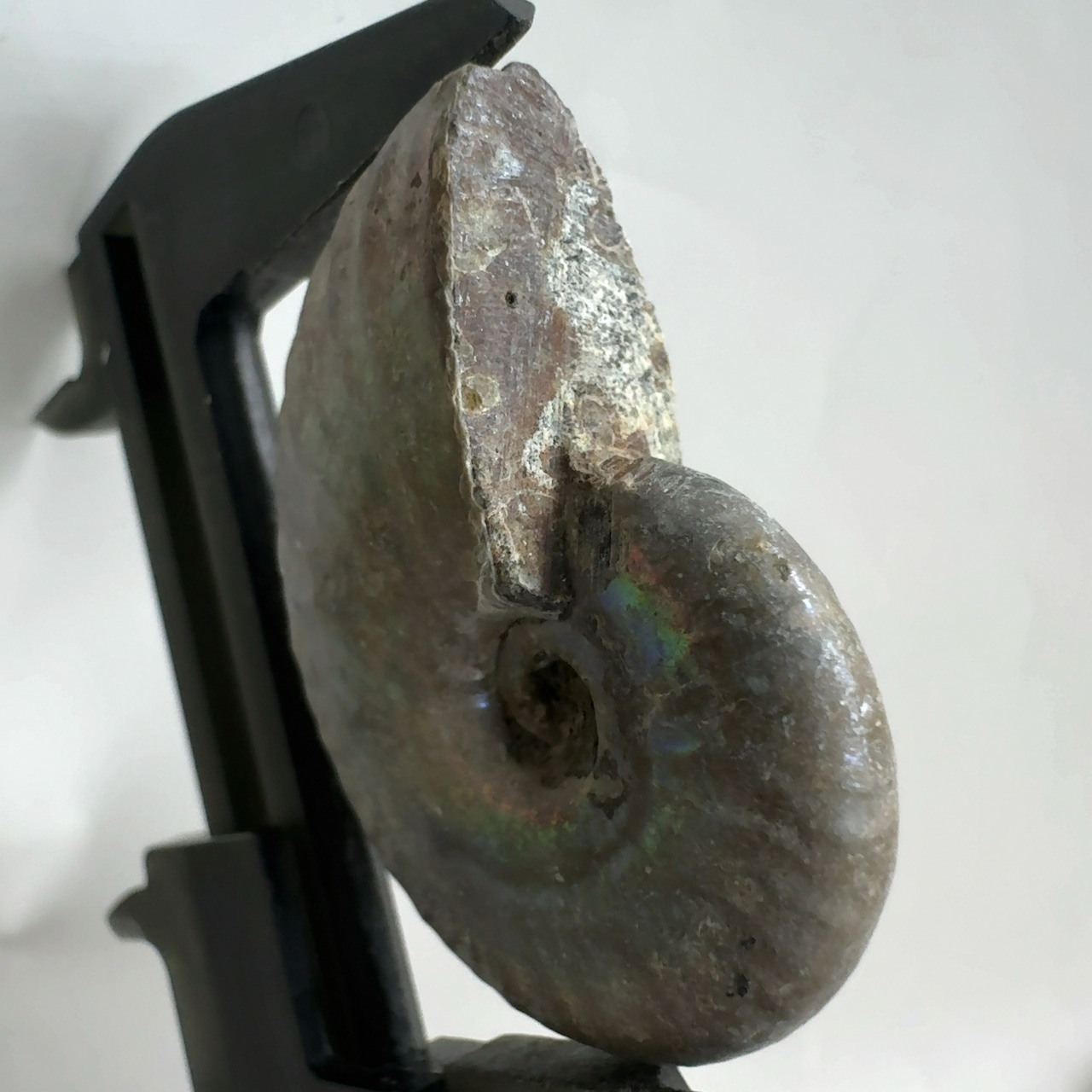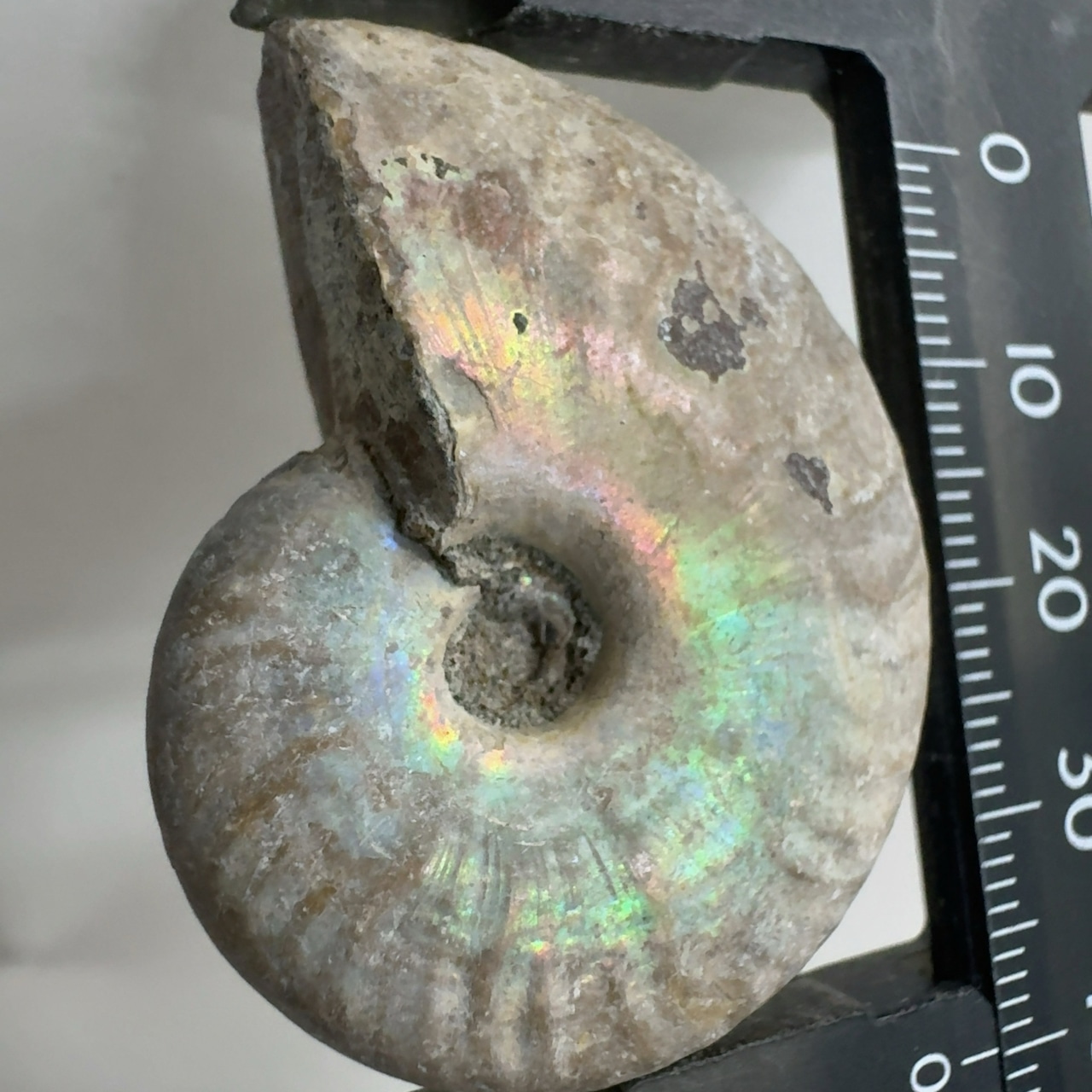 表面の真珠層が光輝く美しいアンモナイト。
