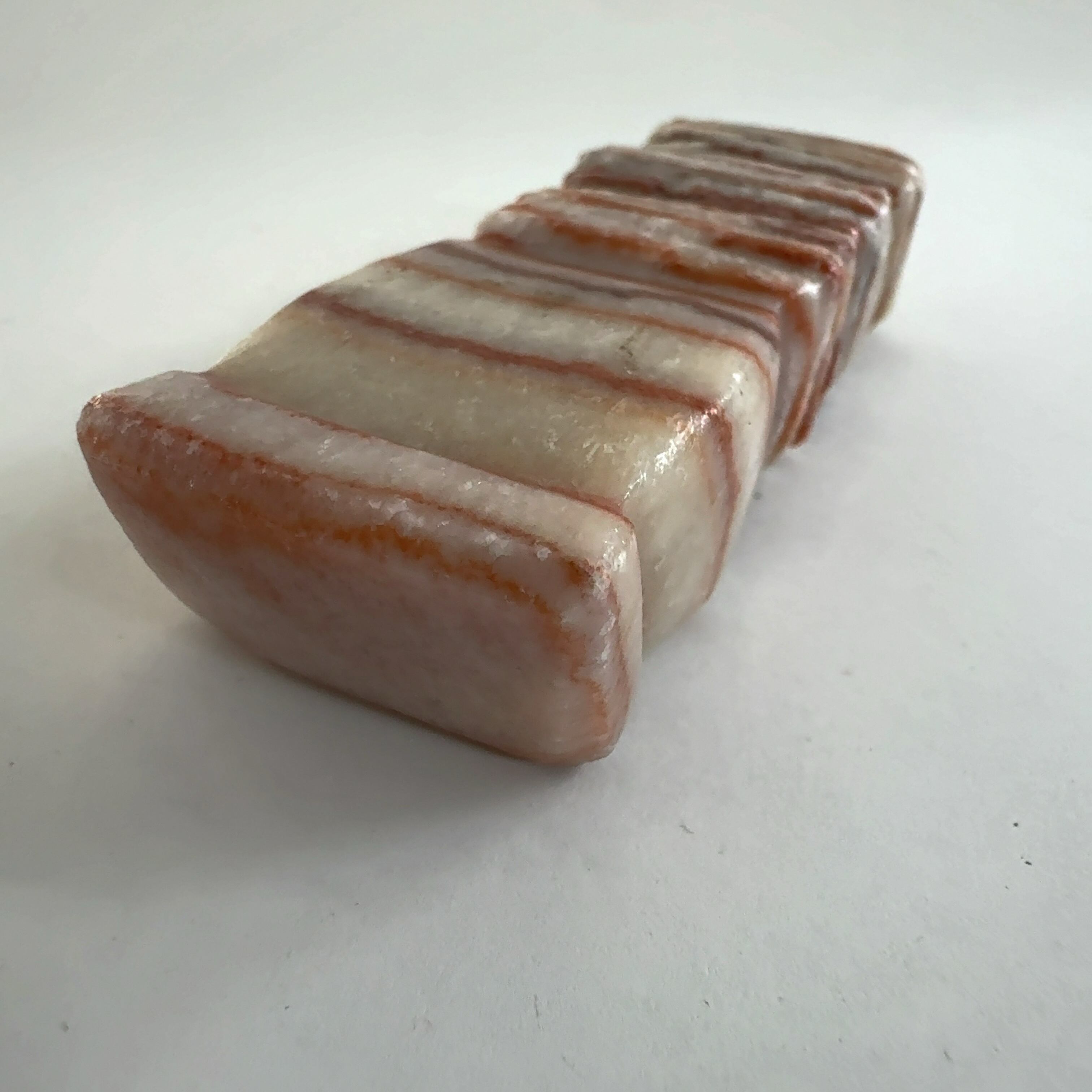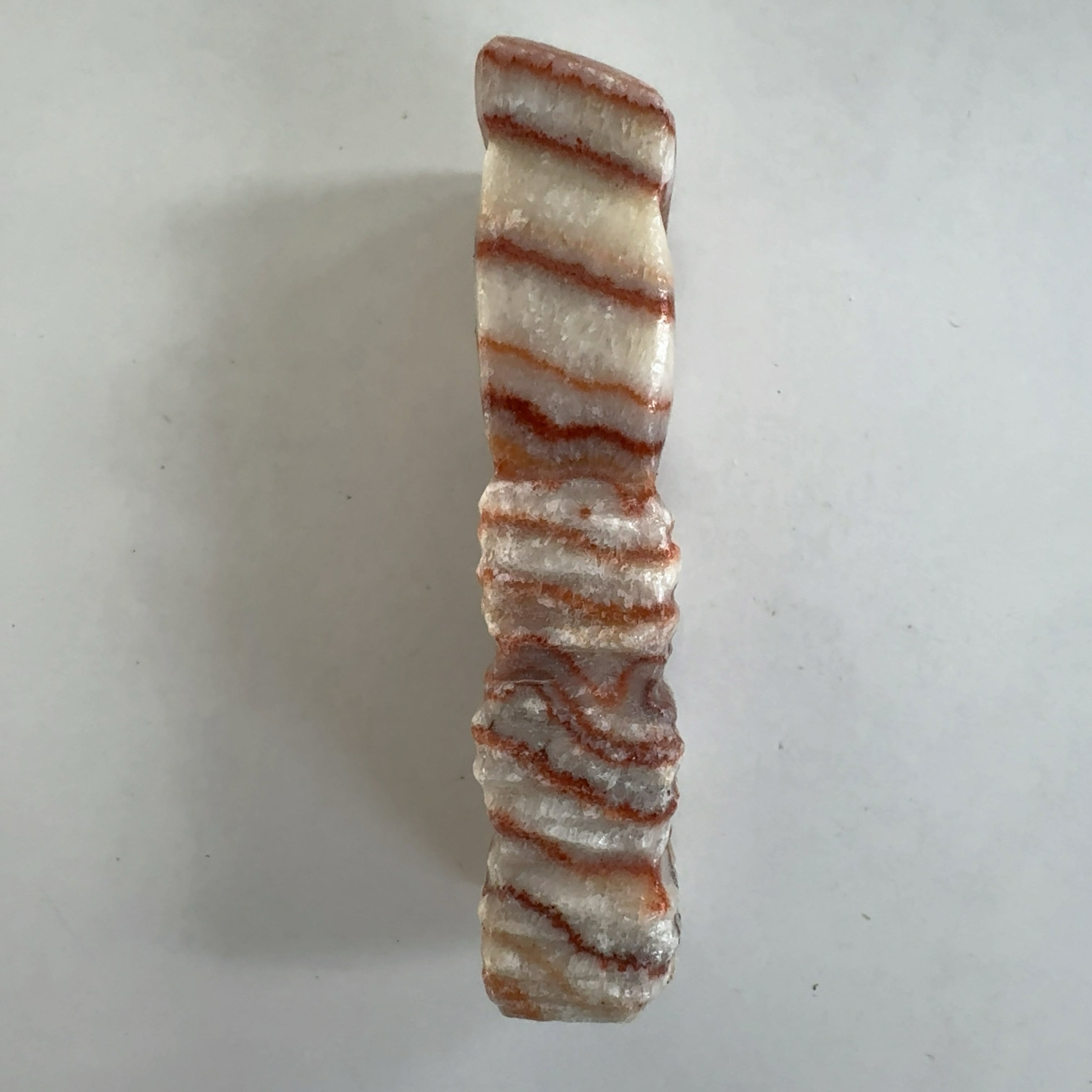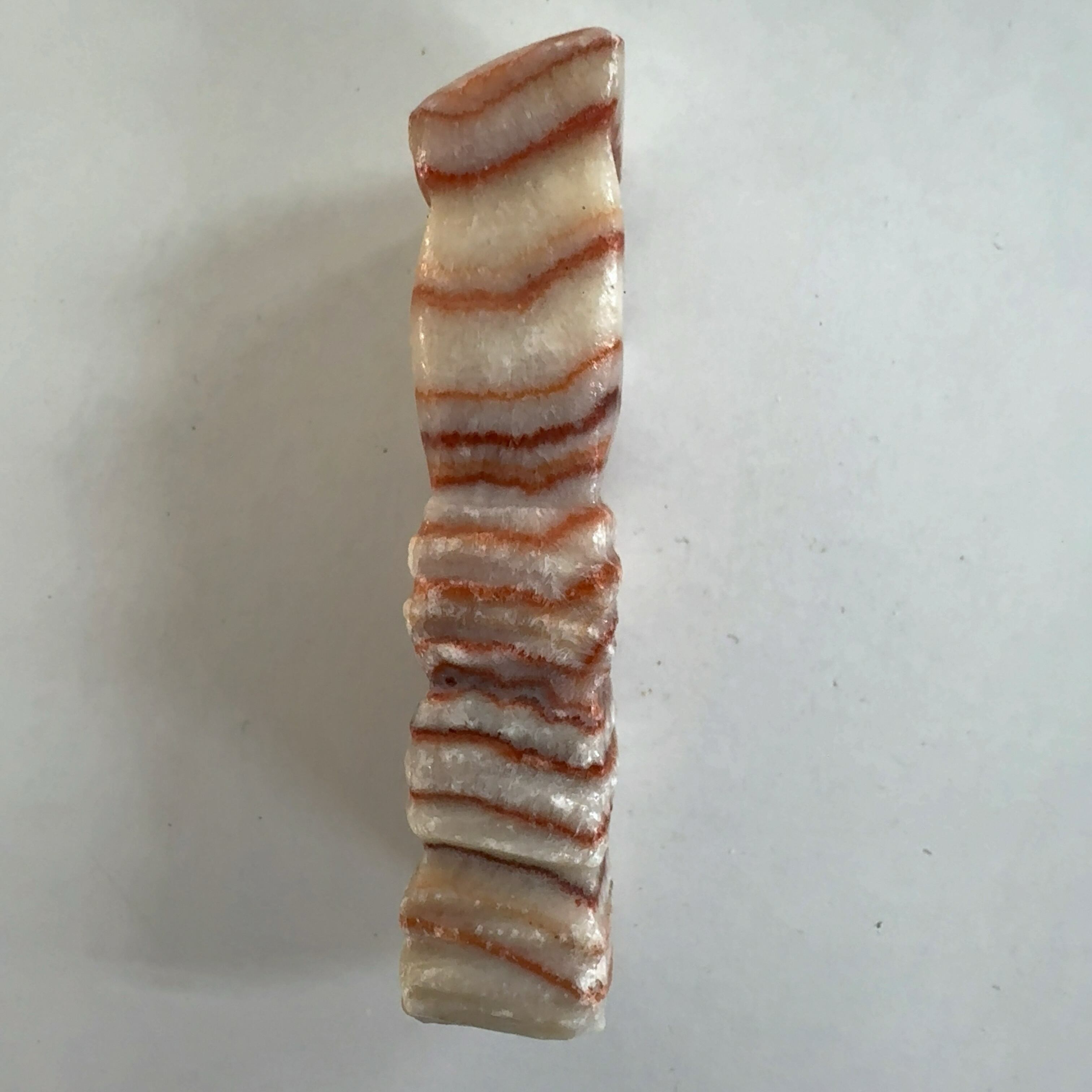 その名も豚肉石。方解石とあられ石が層になっています。