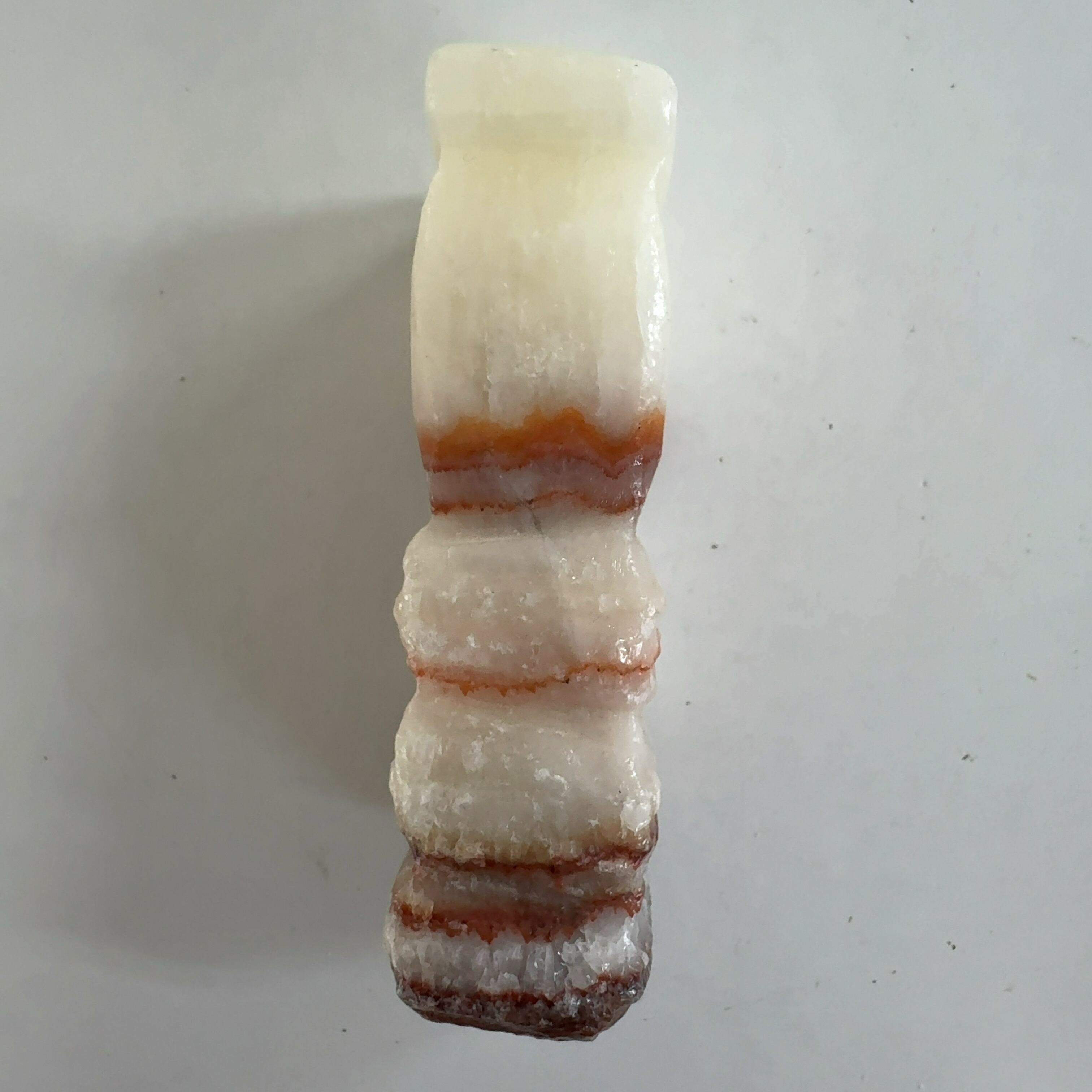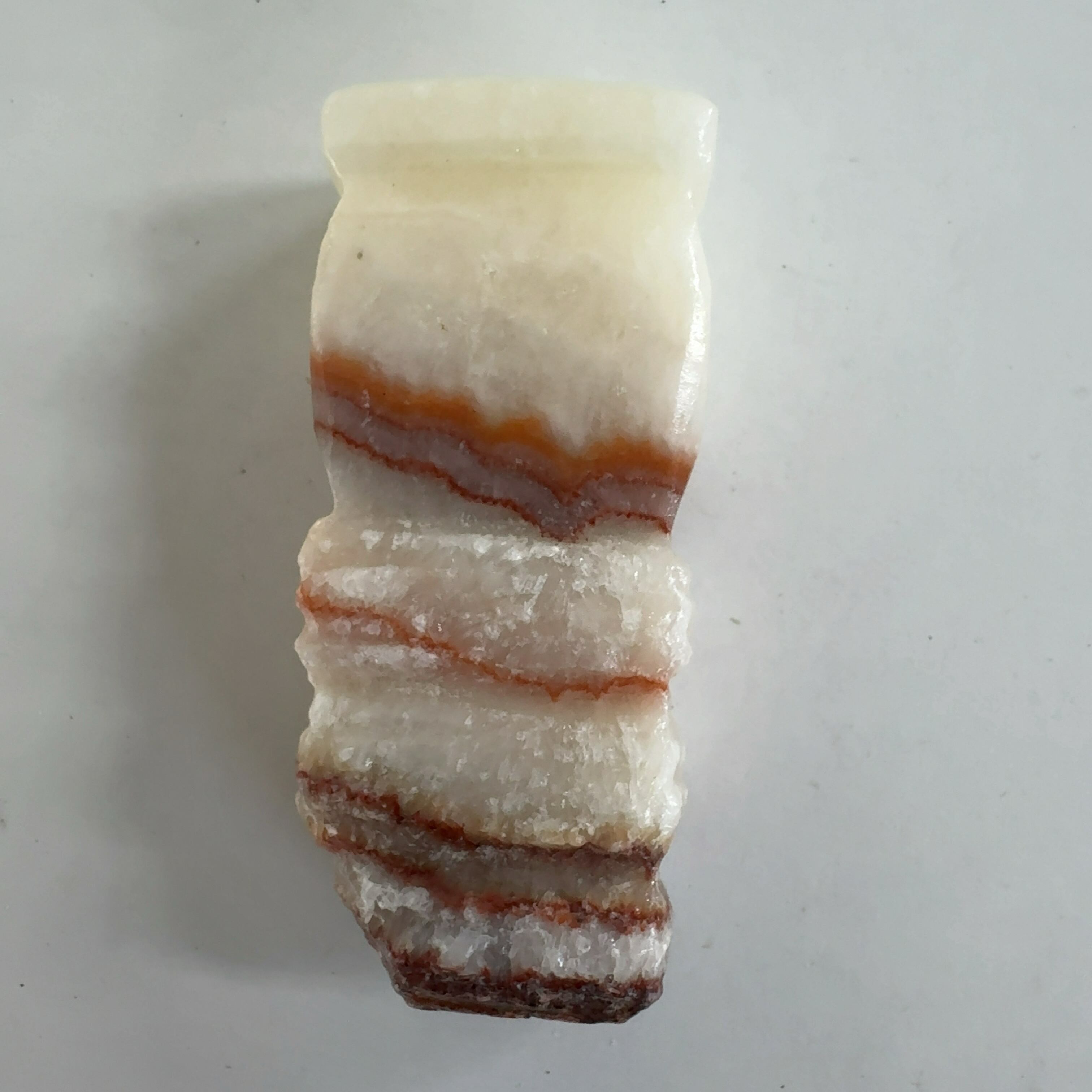 その名も豚肉石。方解石とあられ石が層になっています。