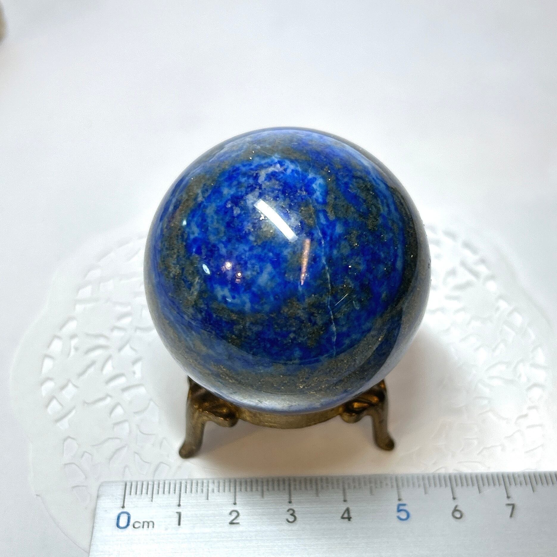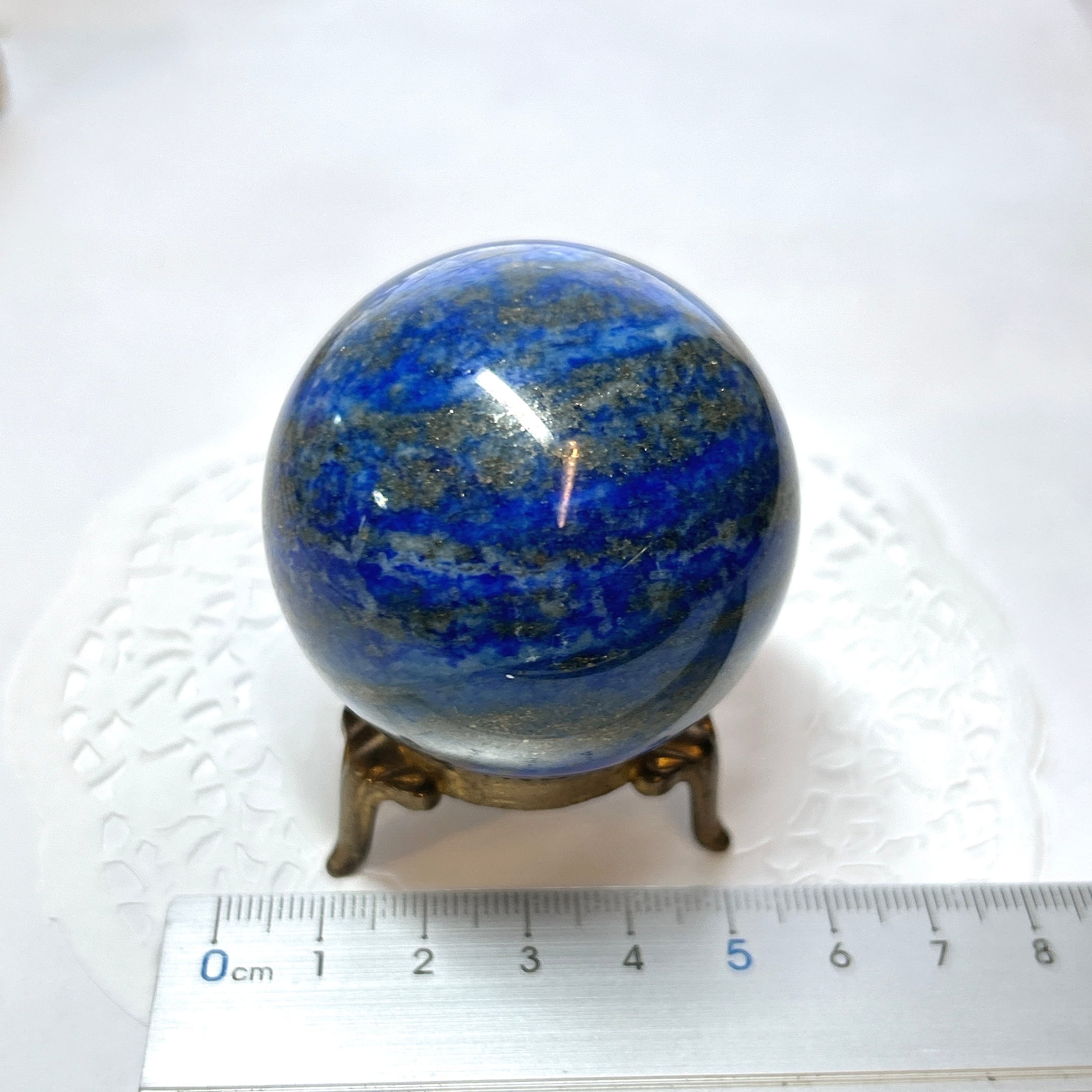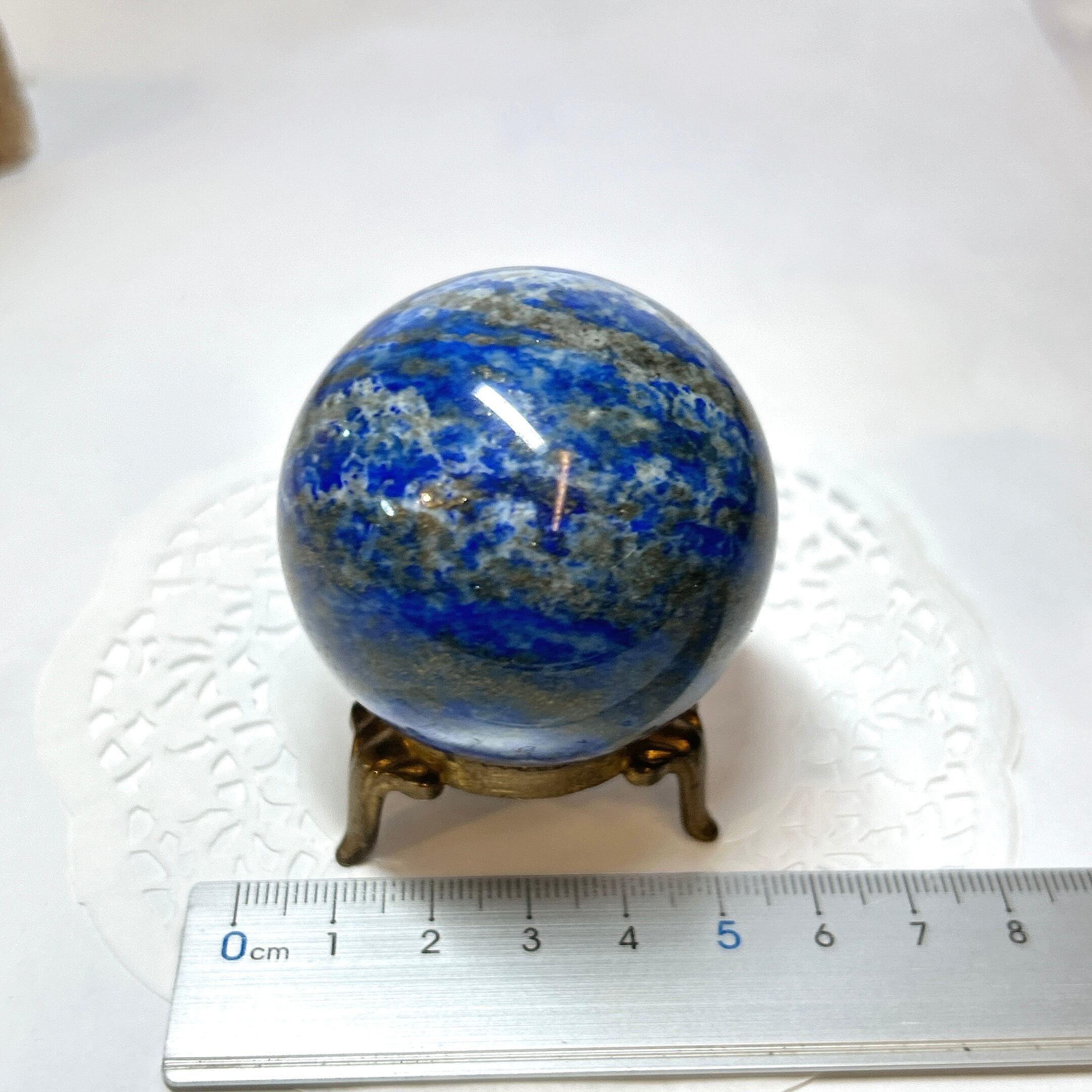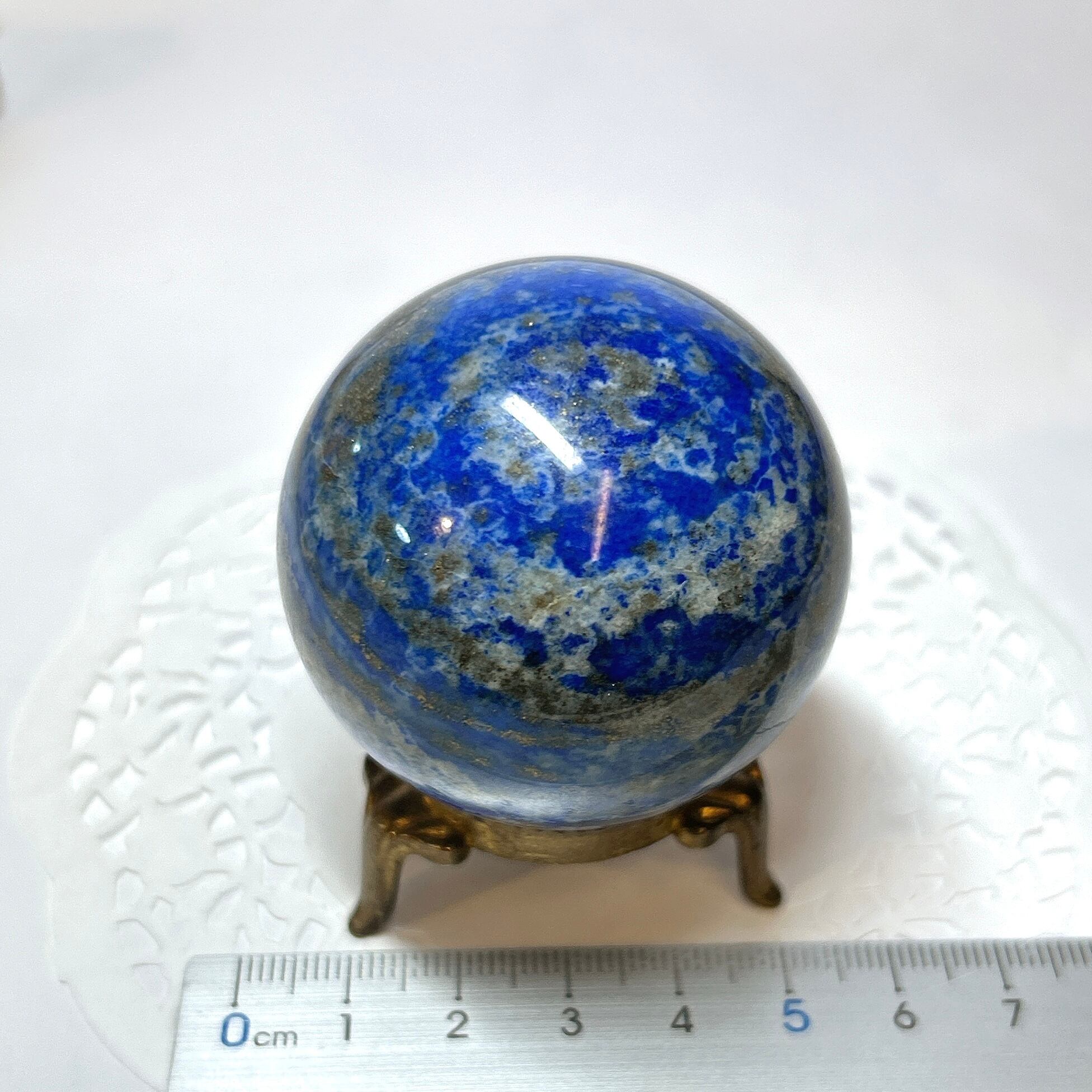 綺麗な瑠璃色と黄鉄鉱のキラキラが美しい球。