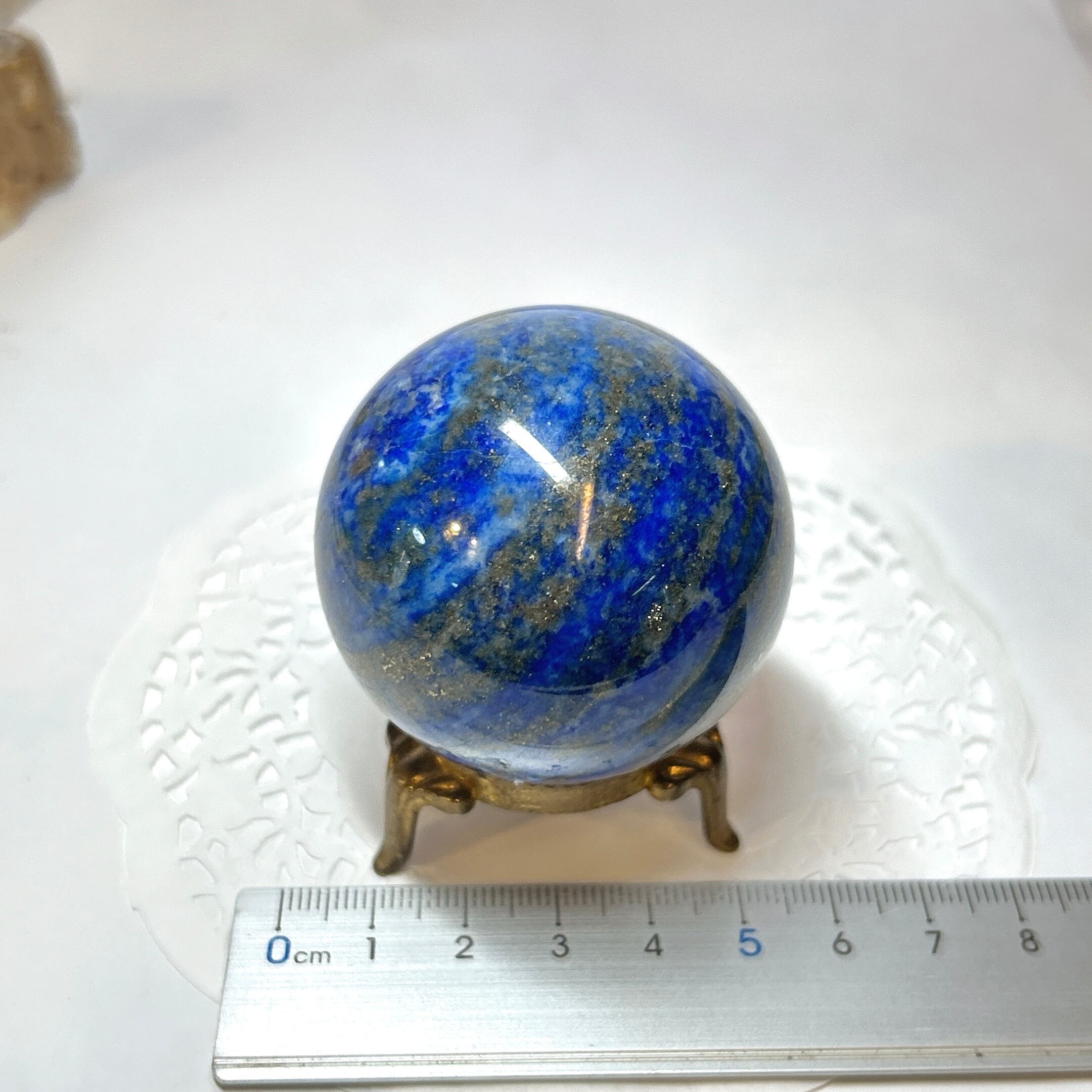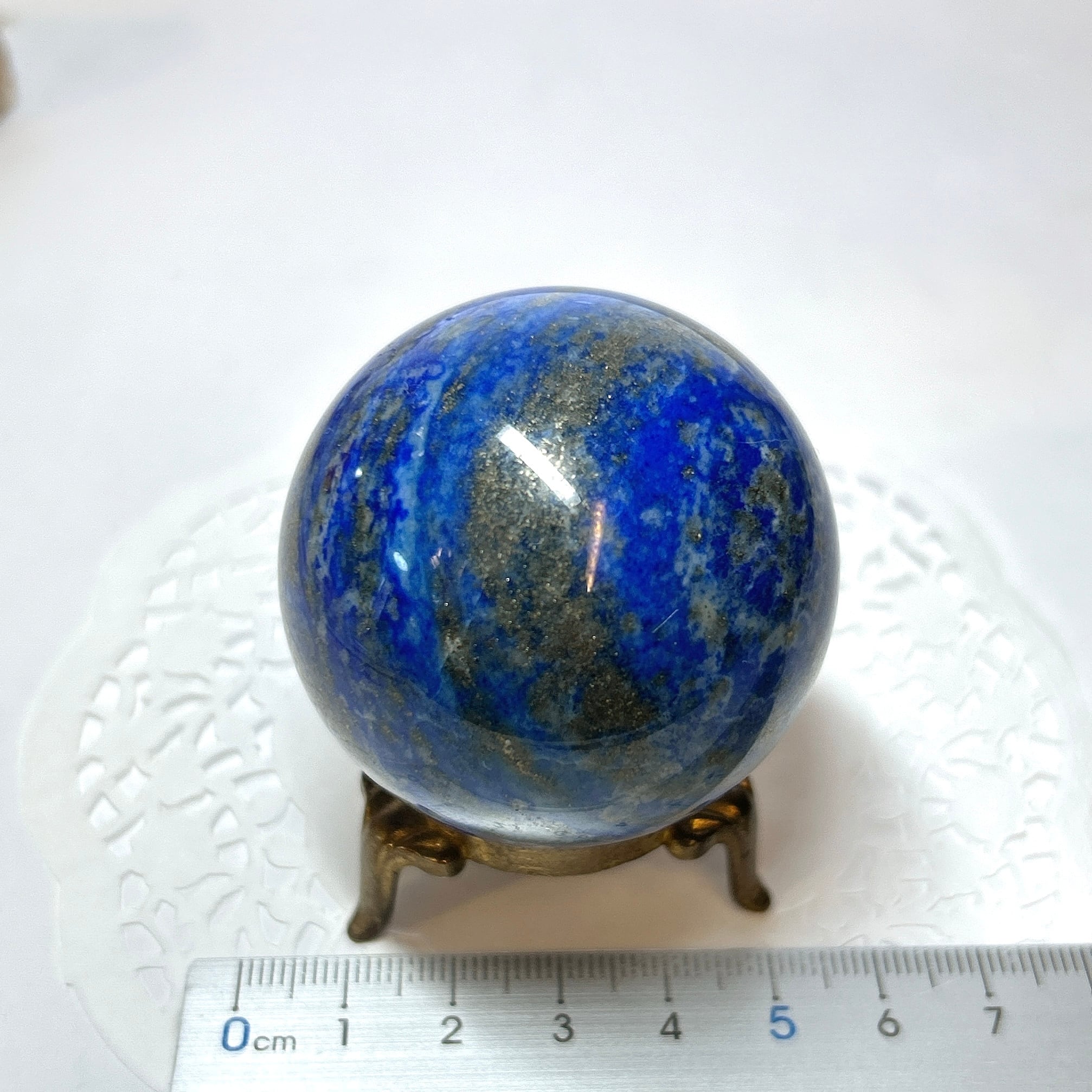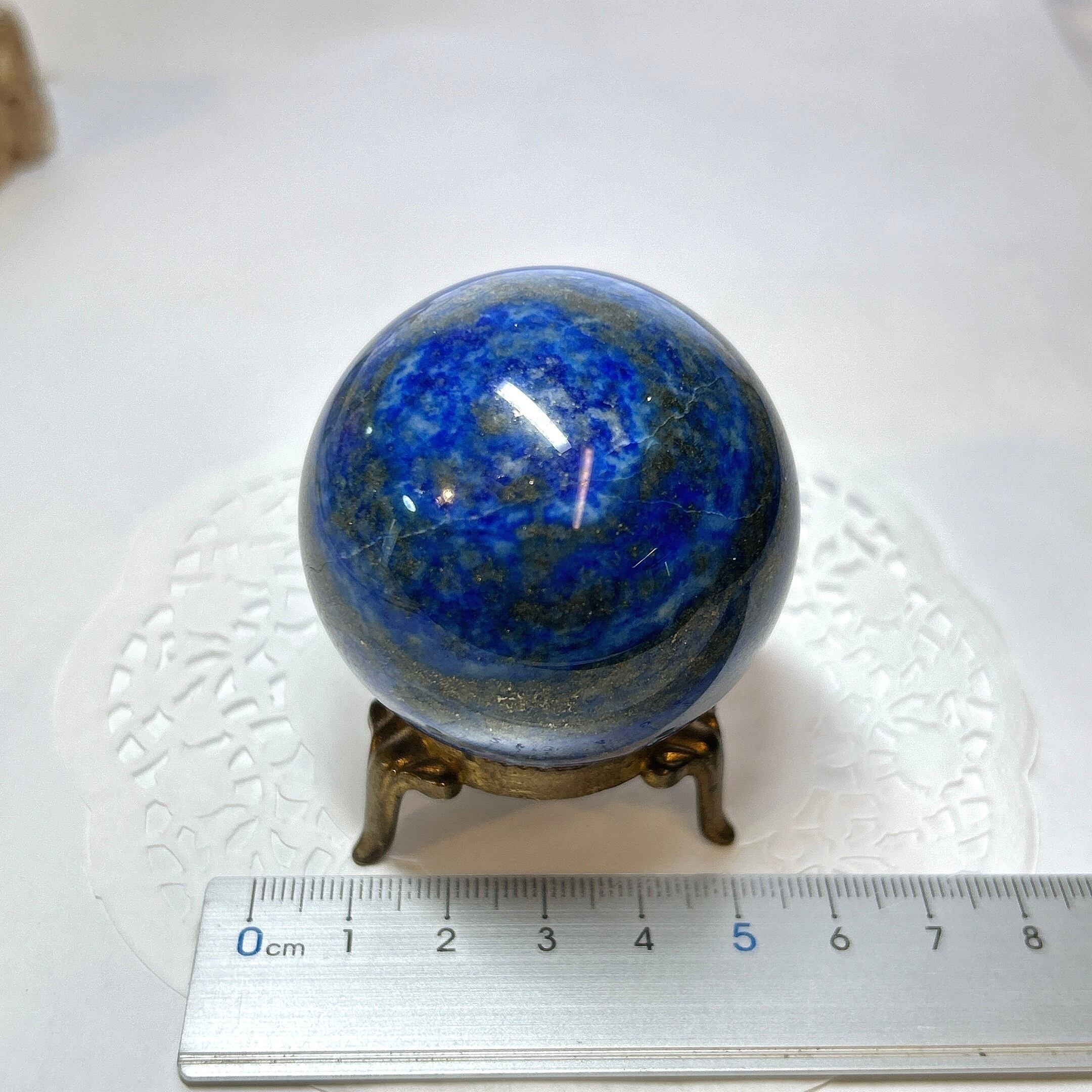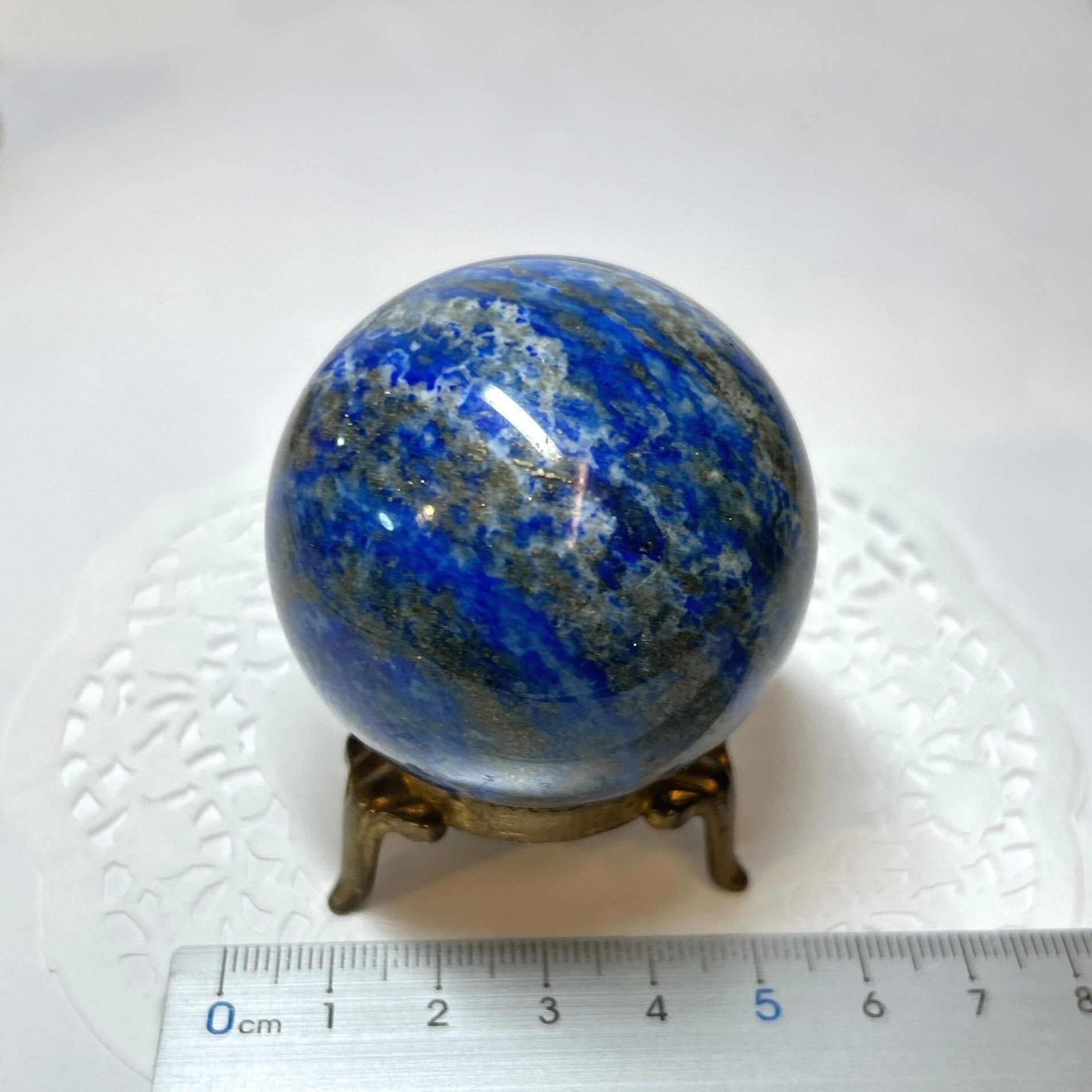 綺麗な瑠璃色と黄鉄鉱のキラキラが美しい球。