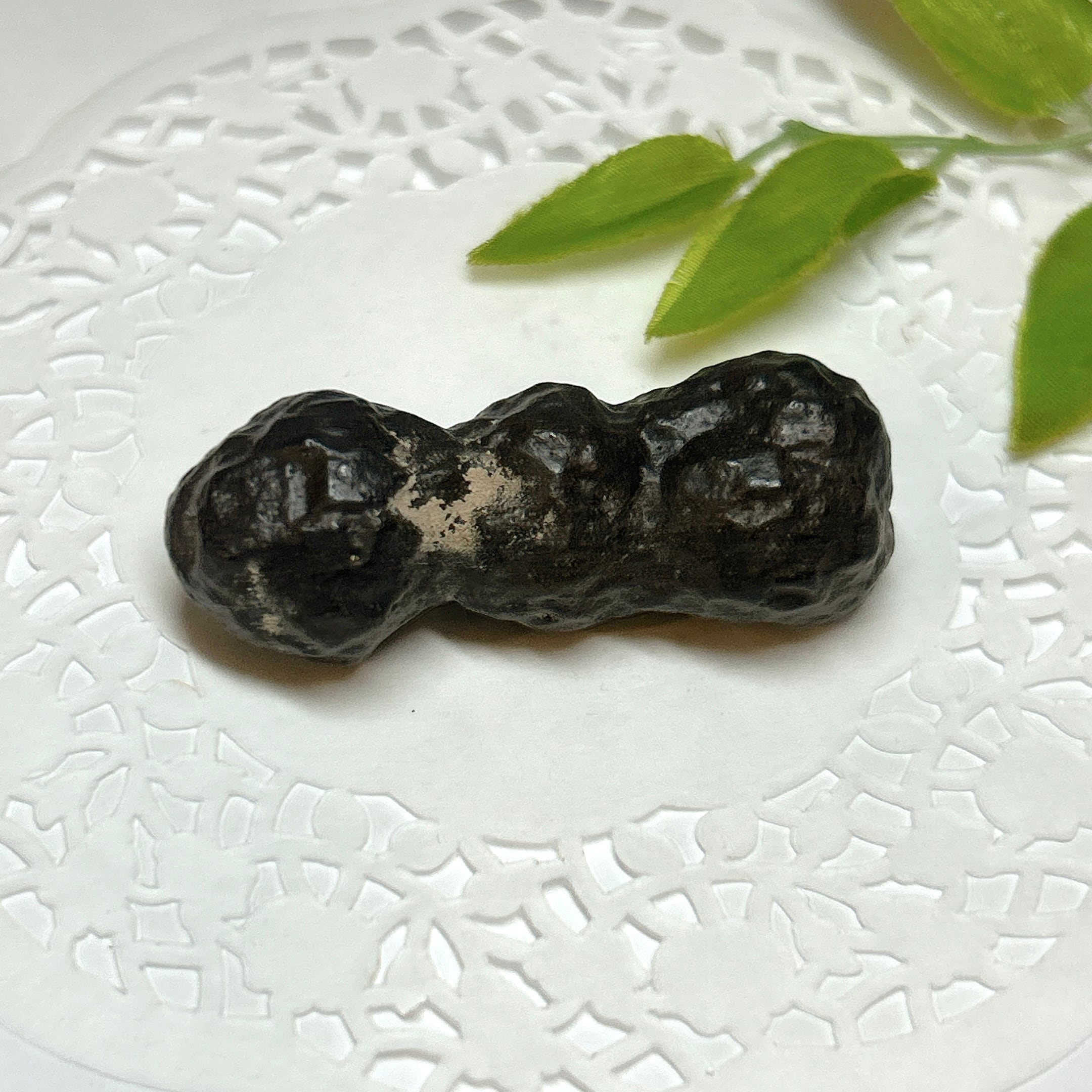 白鉄鉱または黄鉄鉱が形をそのままに針鉄鉱や褐鉄鉱に置き換わったもの。こういうものを仮晶(かしょう)といいます。こちらはエジプトのWhite Desertで産出したものでパワーストーンとしても人気があります。