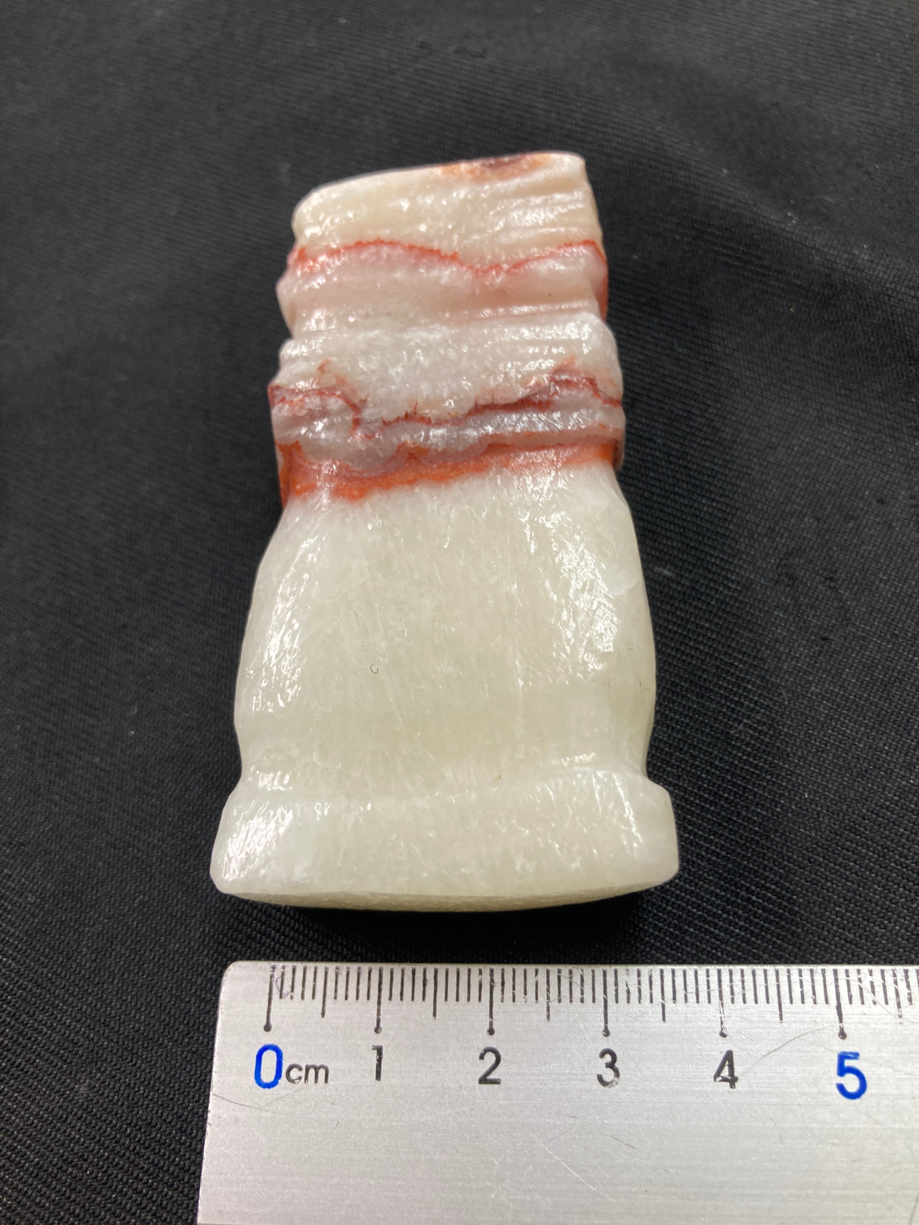 その名も豚肉石。方解石とあられ石が層になっています。