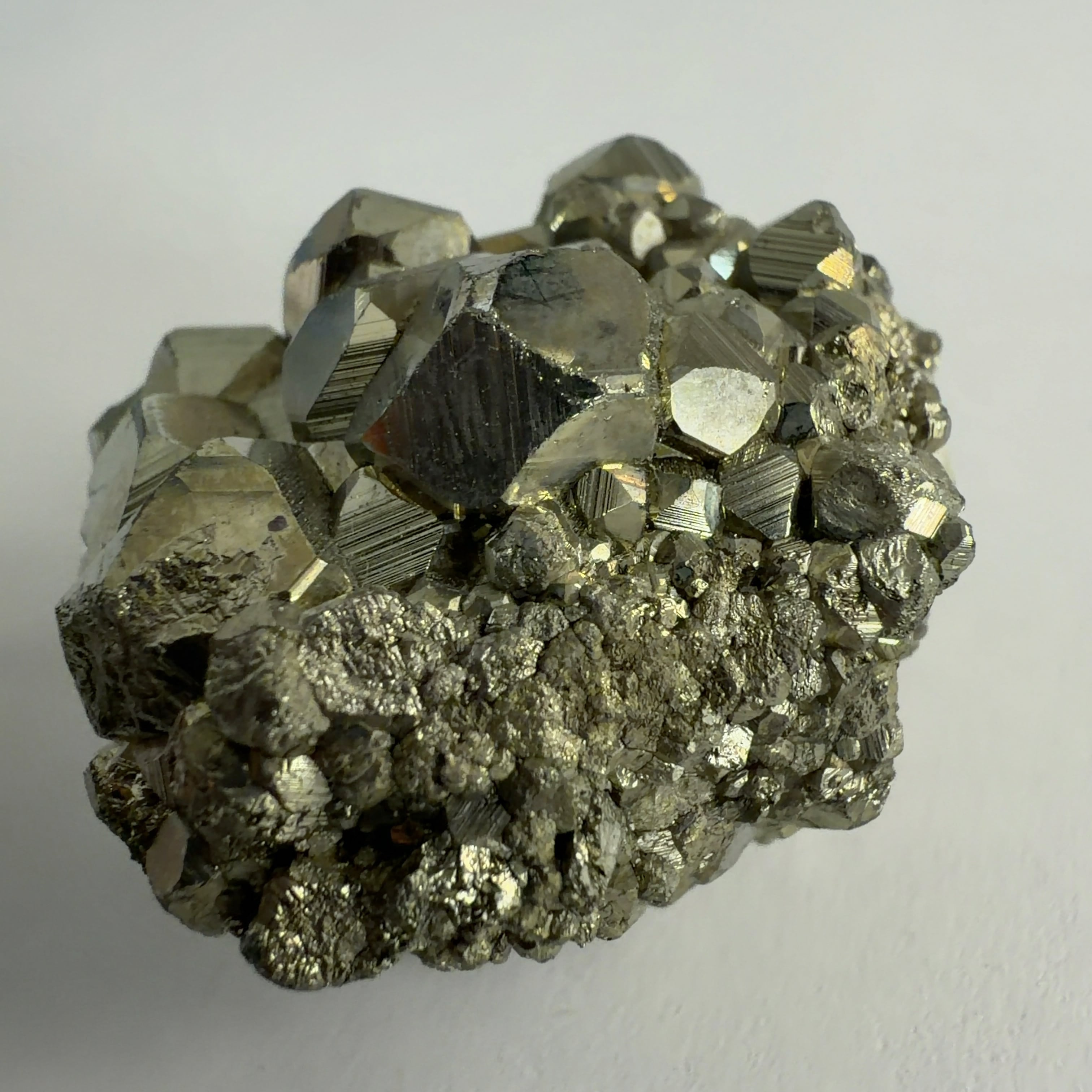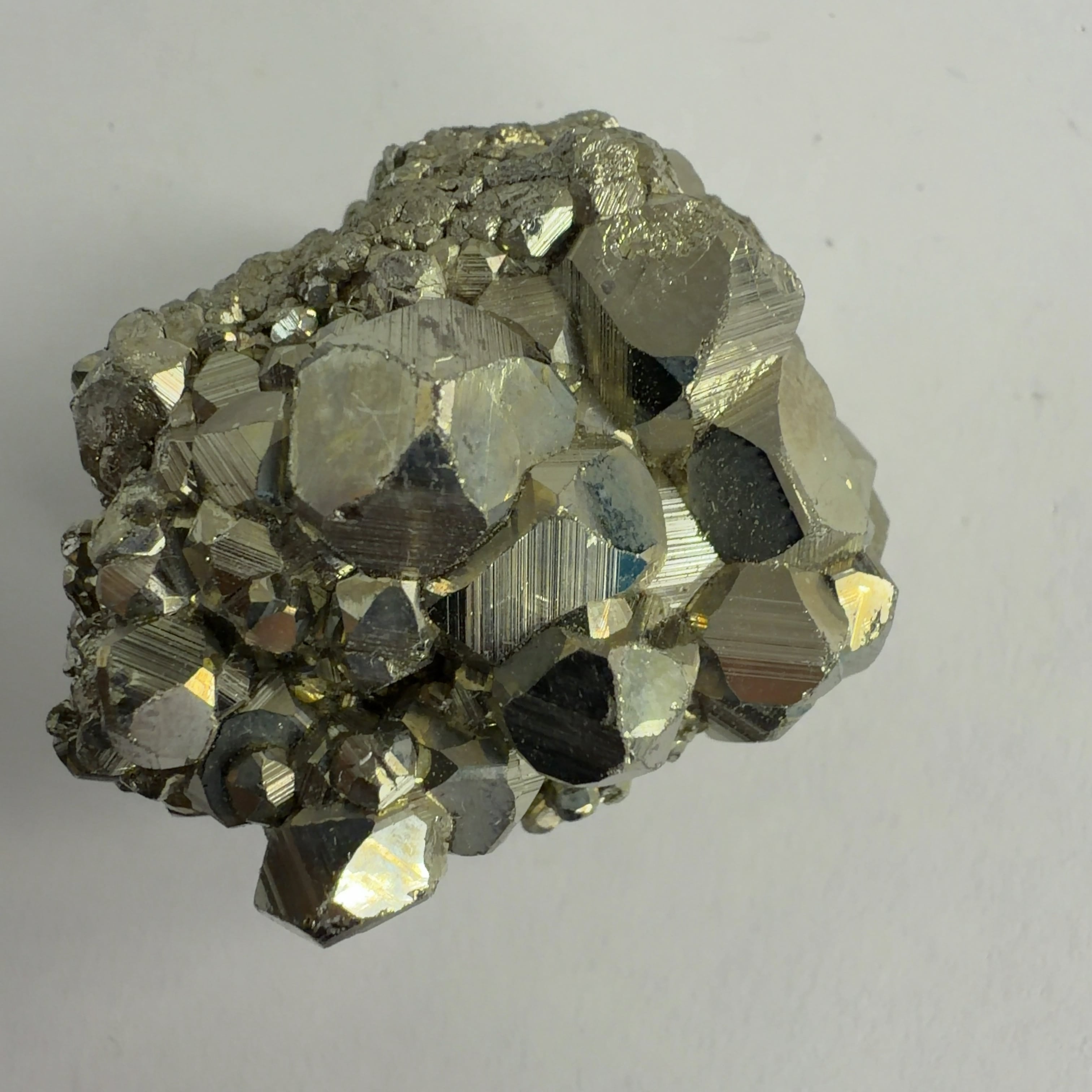 硫黄と鉄の化合物。黄金色の美しい光沢および、立方体、五画十二面体、八面体、二十四面体、又はそれらが合わさった形など様々な結晶をするので標本として人気があります。