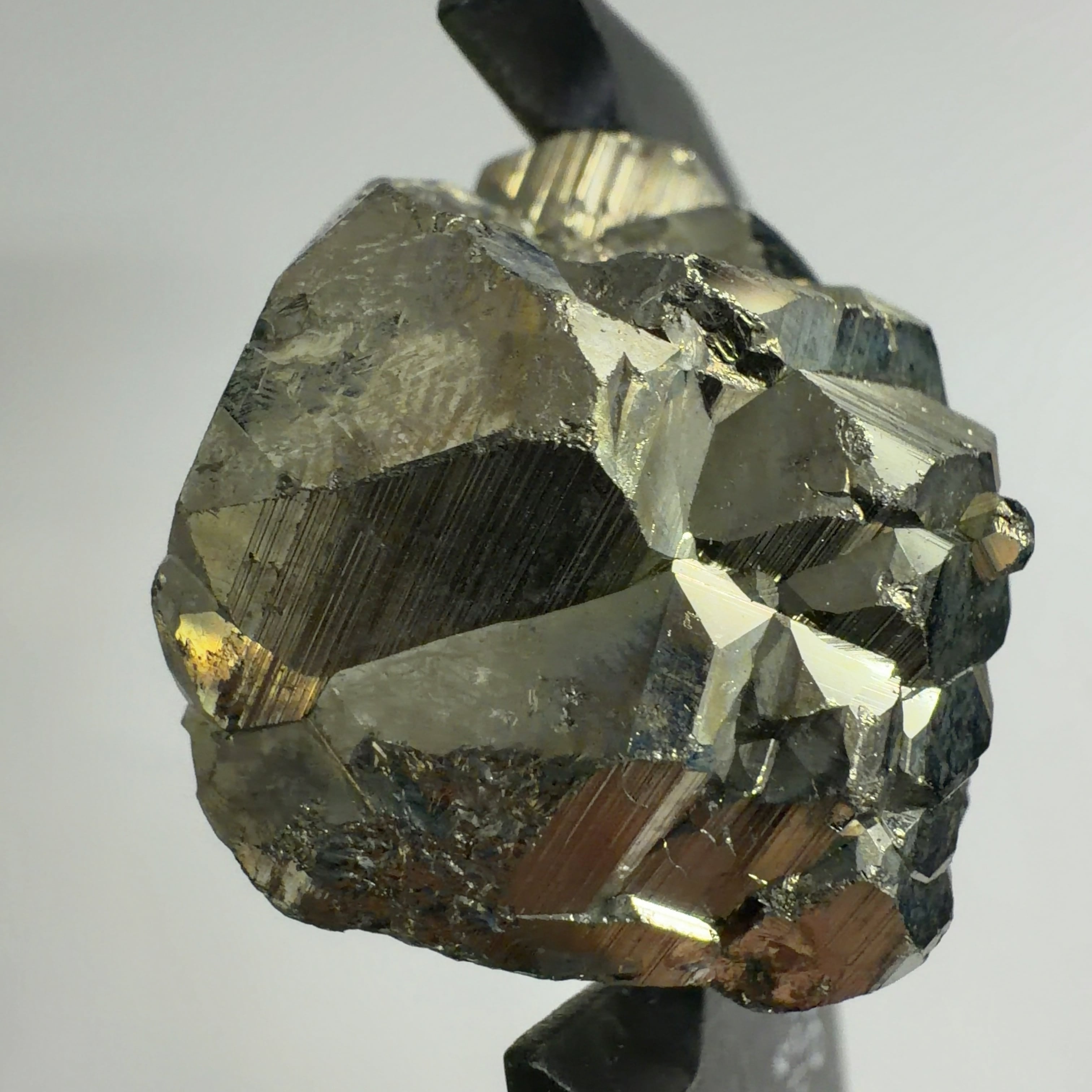 硫黄と鉄の化合物。黄金色の美しい光沢および、立方体、五画十二面体、八面体、二十四面体、又はそれらが合わさった形など様々な結晶をするので標本として人気があります。