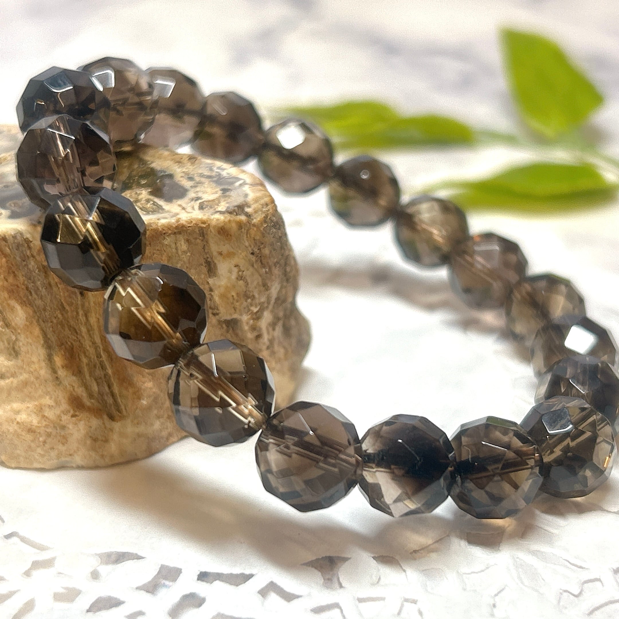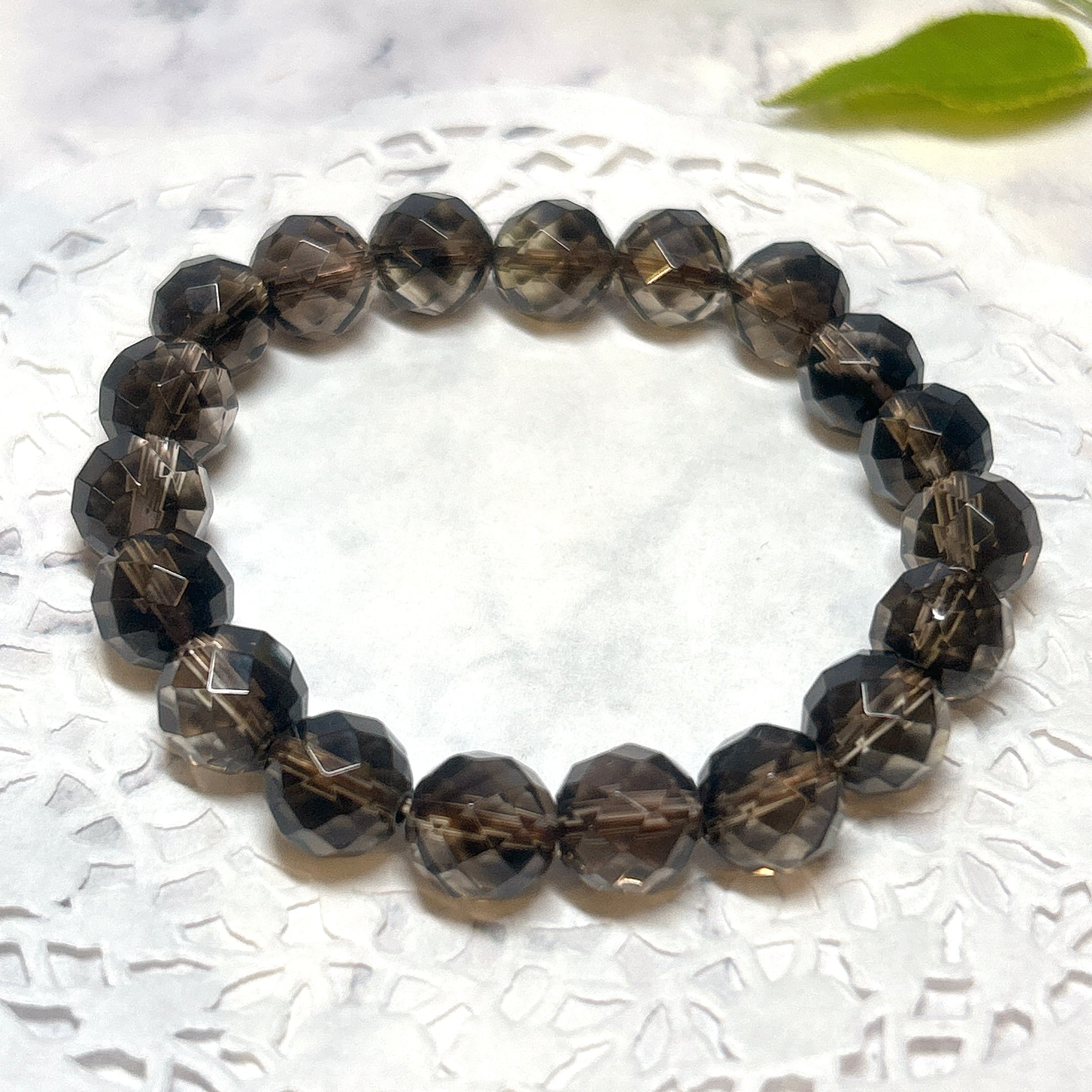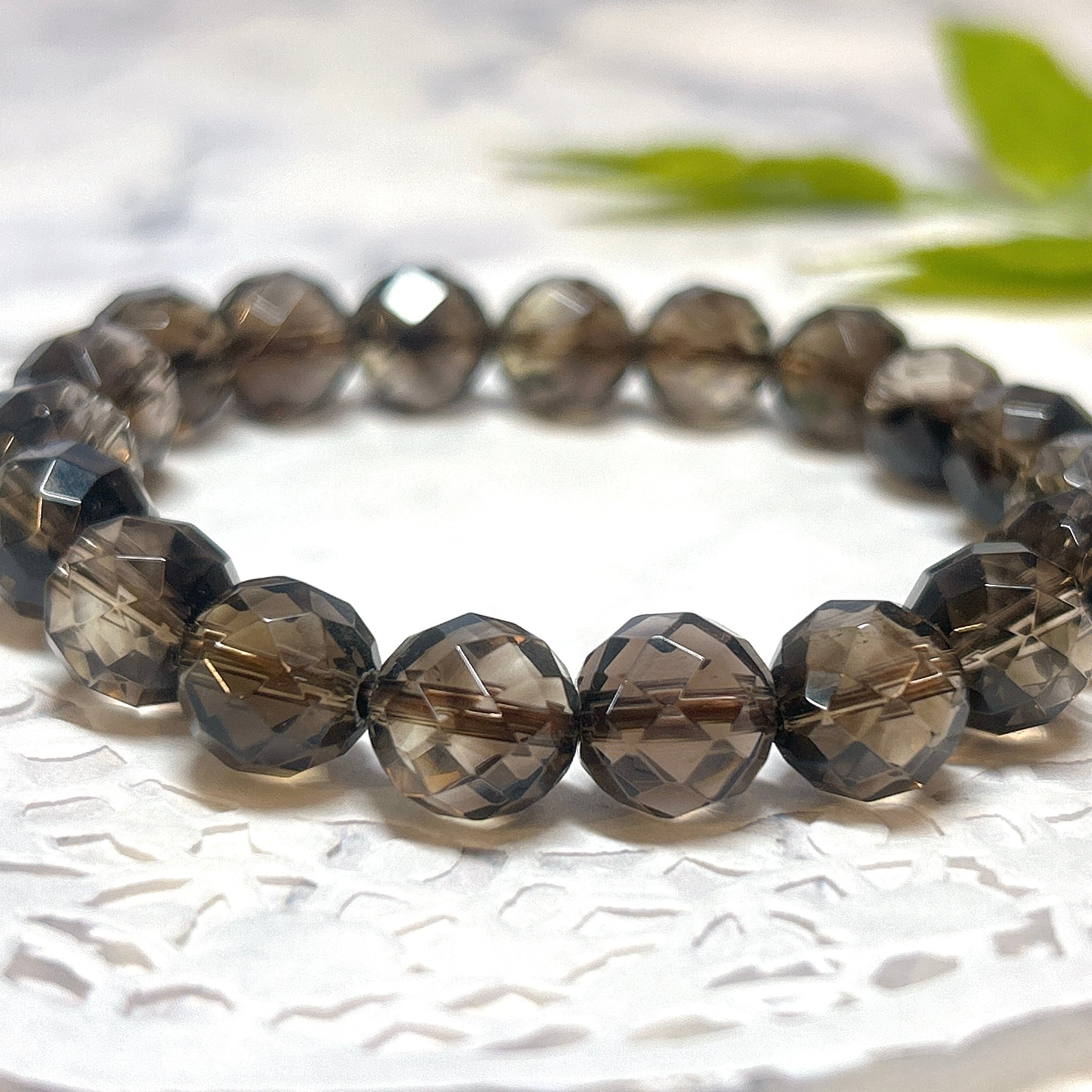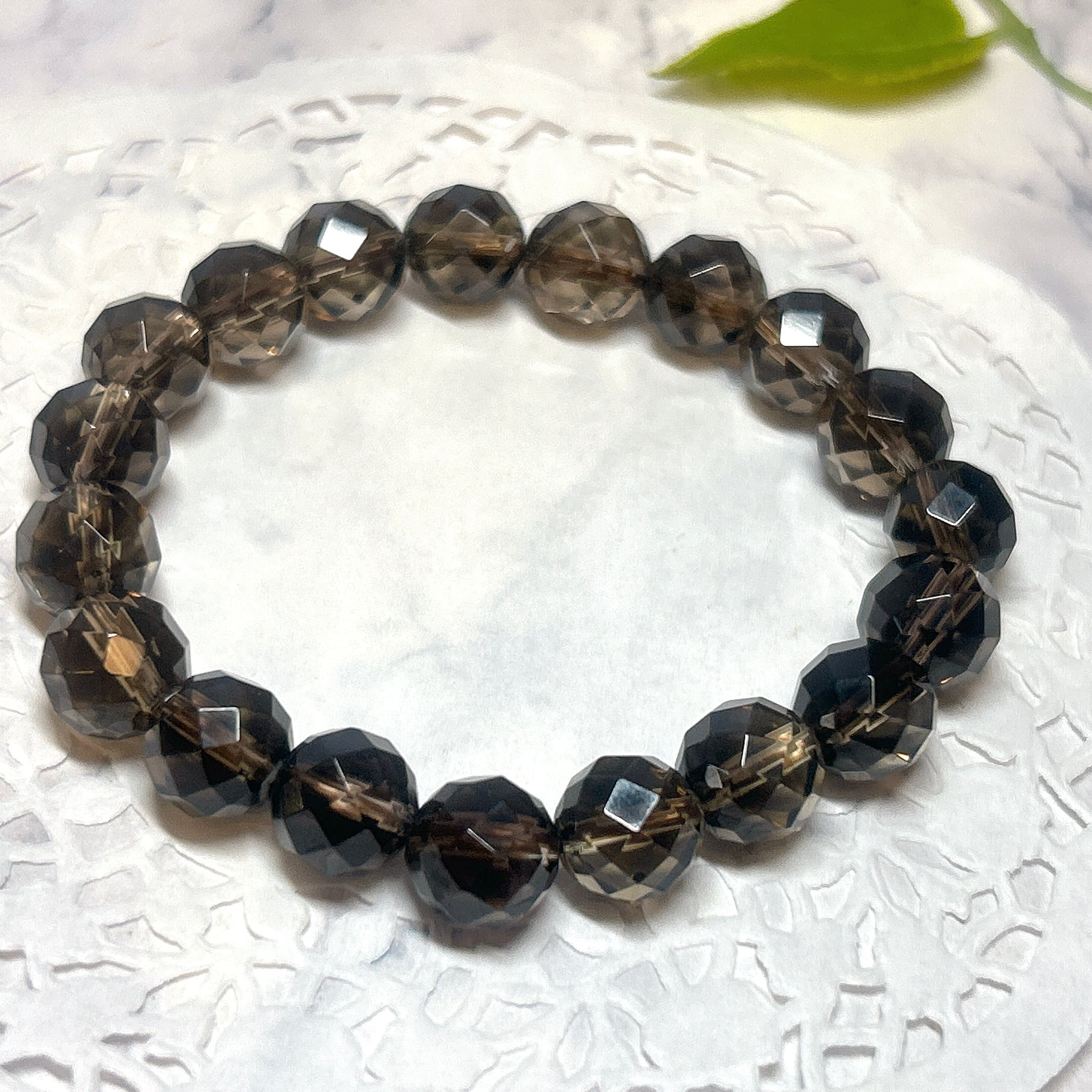 【16376】10㎜ カット スモーキークォーツ 煙水晶 ブレスレット Smoky Quartz 天然石