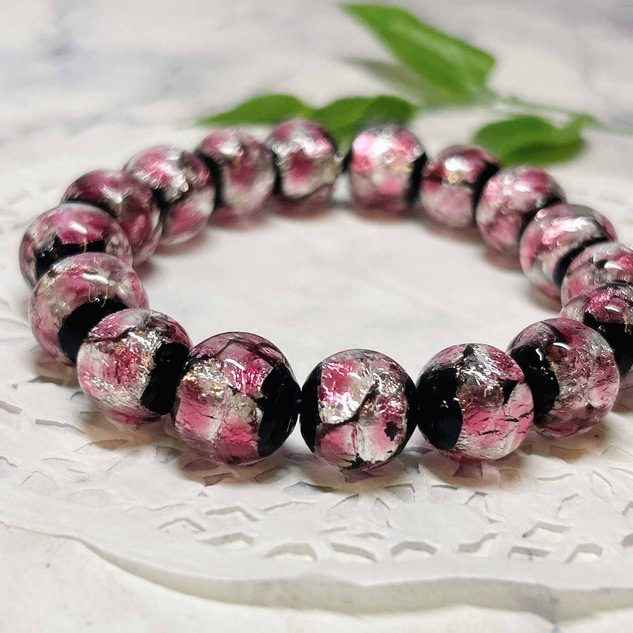 【16402】光る ホタルガラス 12㎜ ピンク bracelet