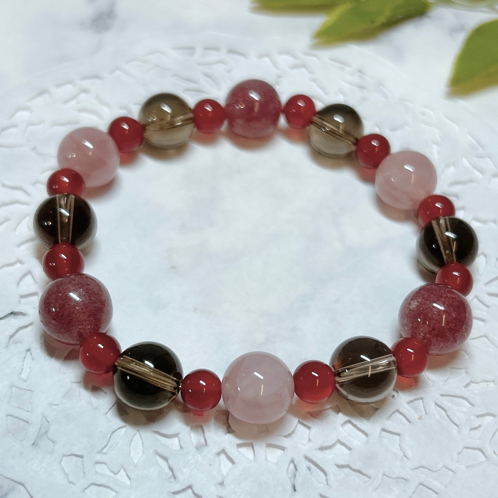 【16494】スモーキークォーツ カーネリアン ストロベリークォーツ ディープローズクォーツ オリジナルブレスレット