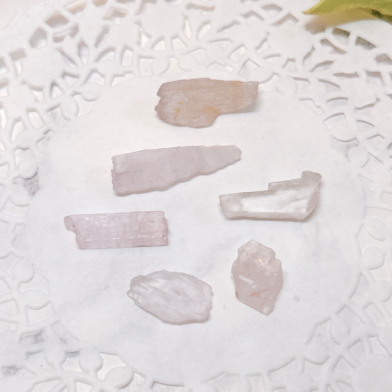 リチウムとアルミニウムを含む鉱物で、主にピンク色のものをクンツァイト、緑色をヒデナイト、それ以外の色は学名のスポジュミンと呼びます。