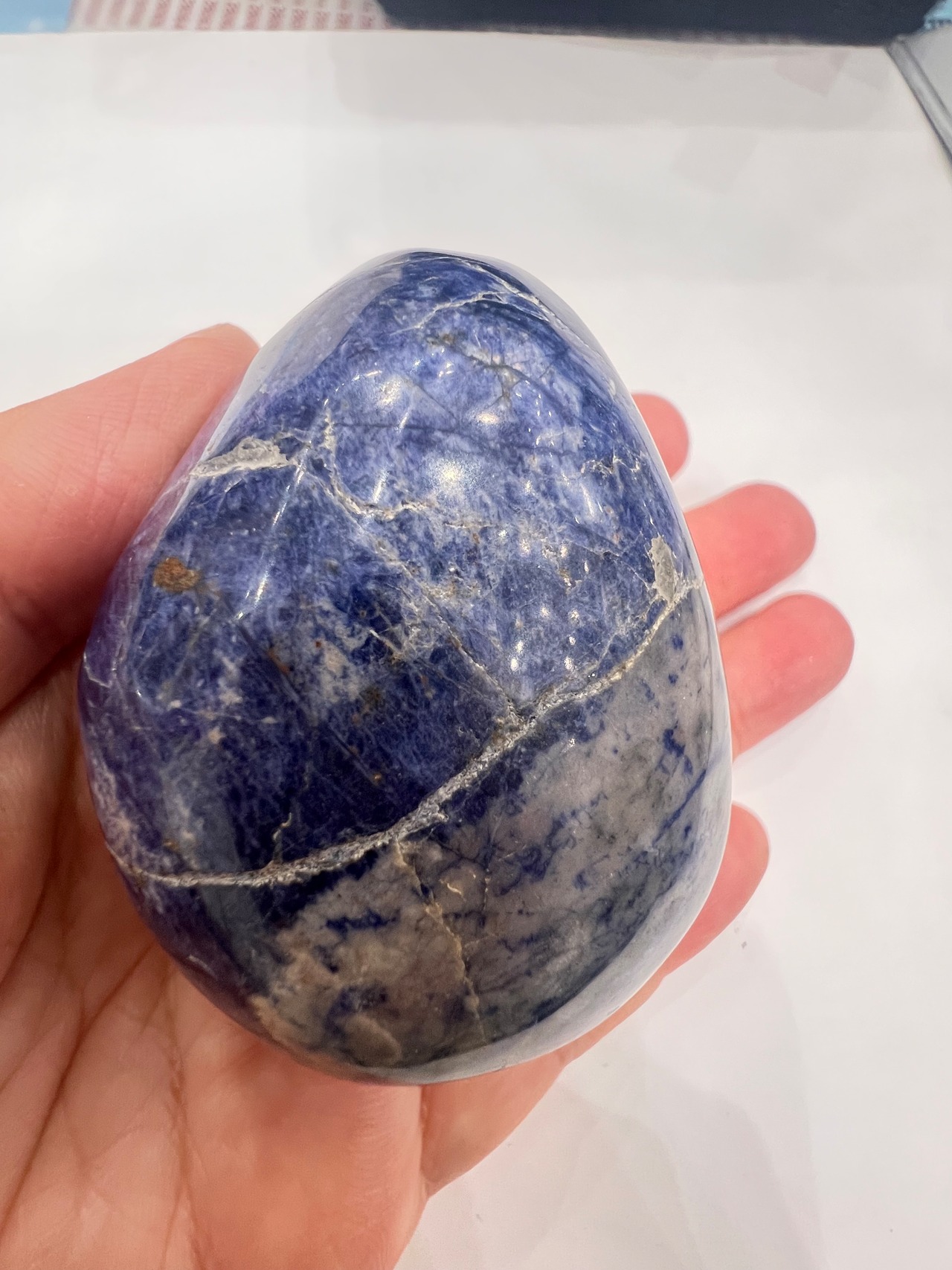 青地に白い条痕の爽やかな石、ソーダライト。