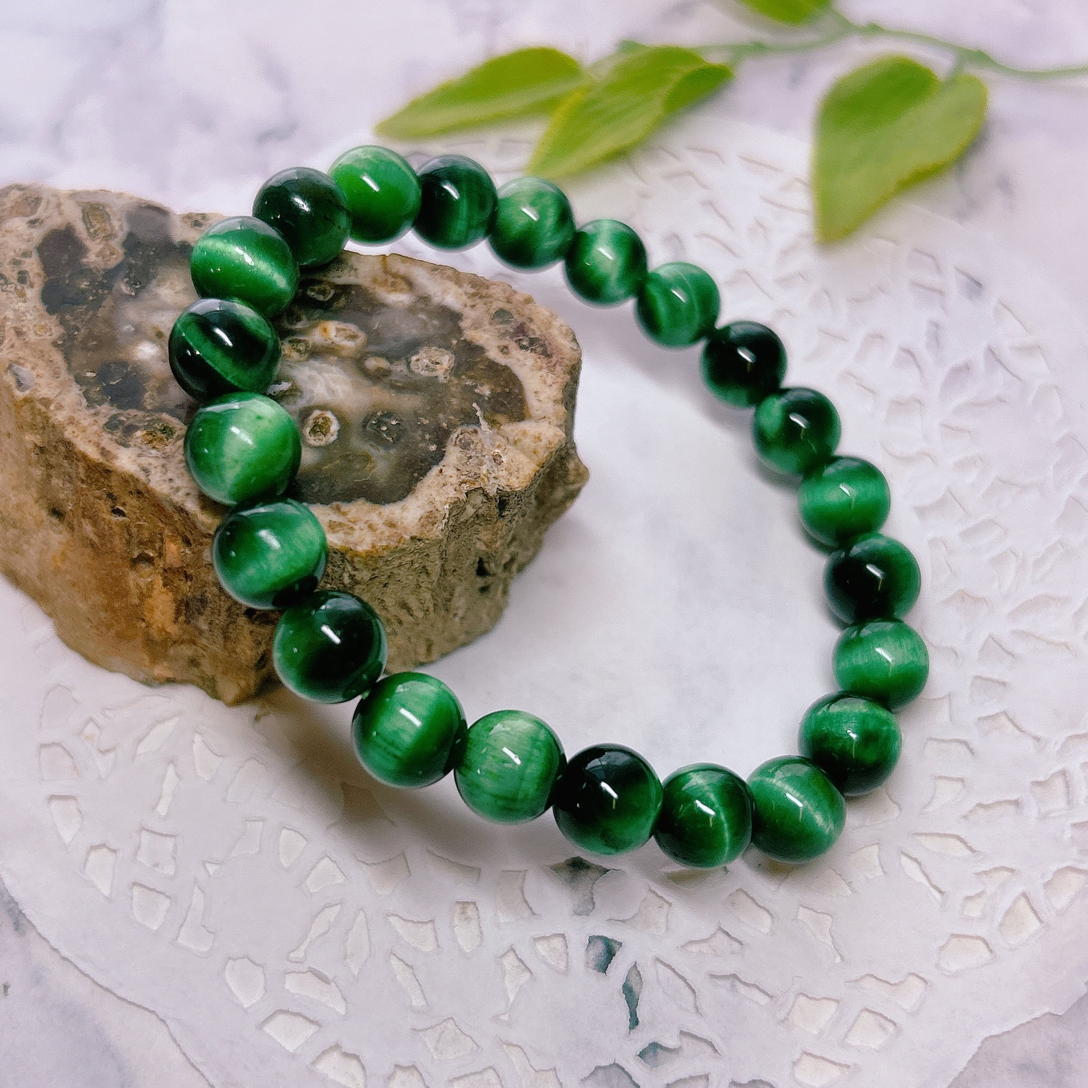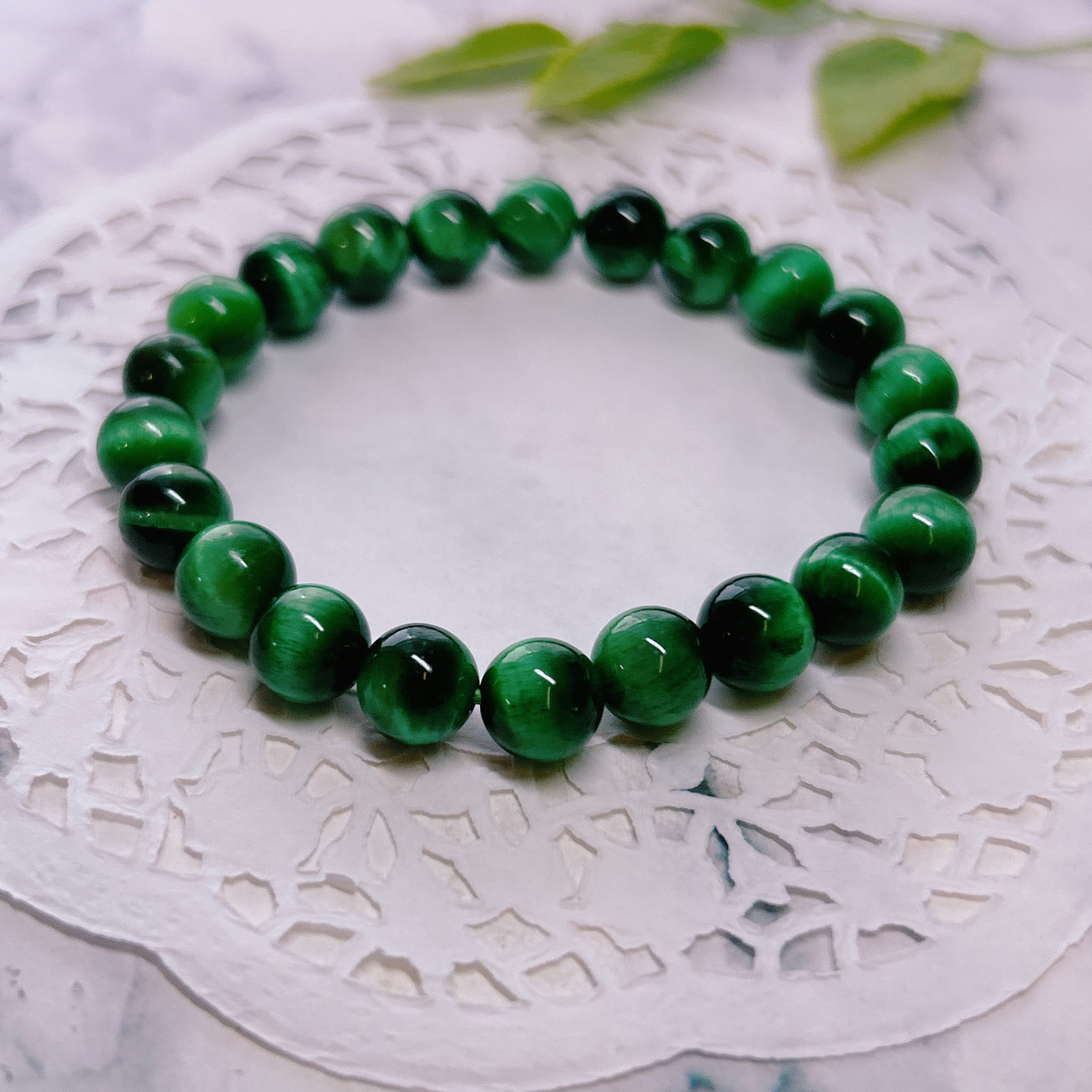 【16854】グリーンタイガーアイ (着色)8㎜ タイガーアイ 虎眼石 虎目石 ビーズ連 アクセサリー素材 天然石 パワーストーン