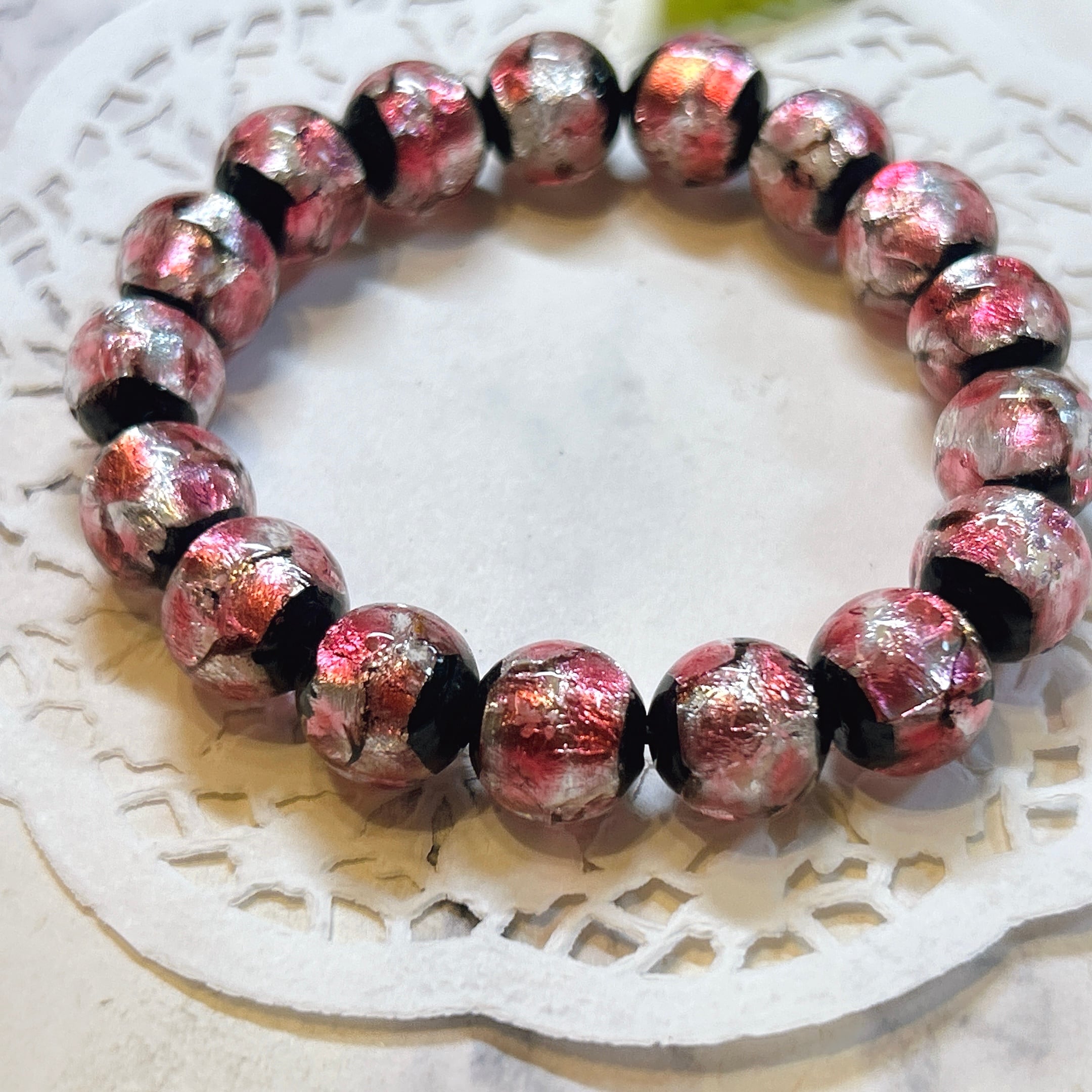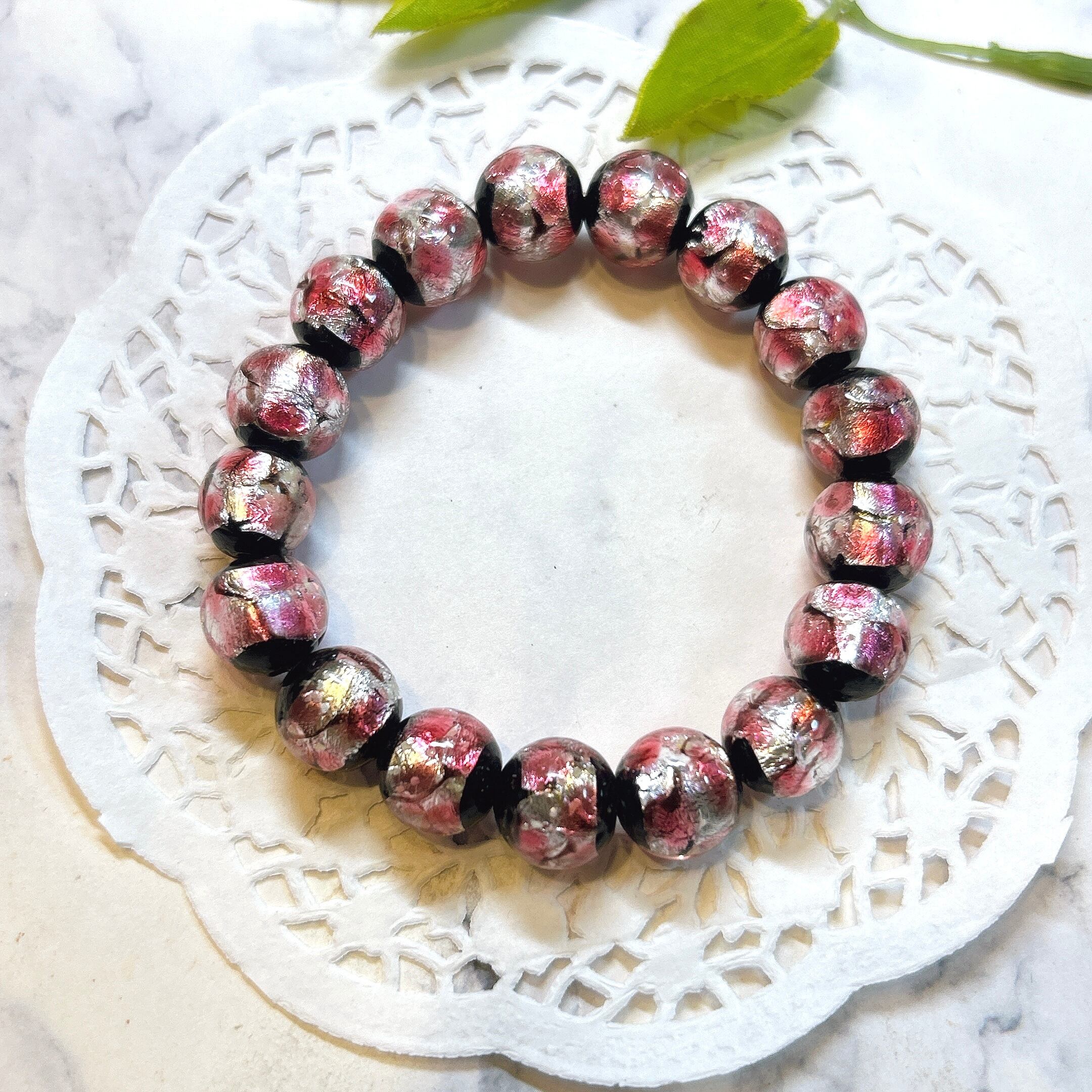 【16872】光る ホタルガラス 12㎜ ピンク bracelet