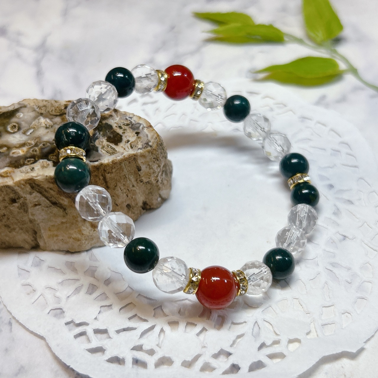 【16878】デザインブレスレット カーネリアン ブラッドストーン 水晶 天然石 アクセサリー ブレスレット