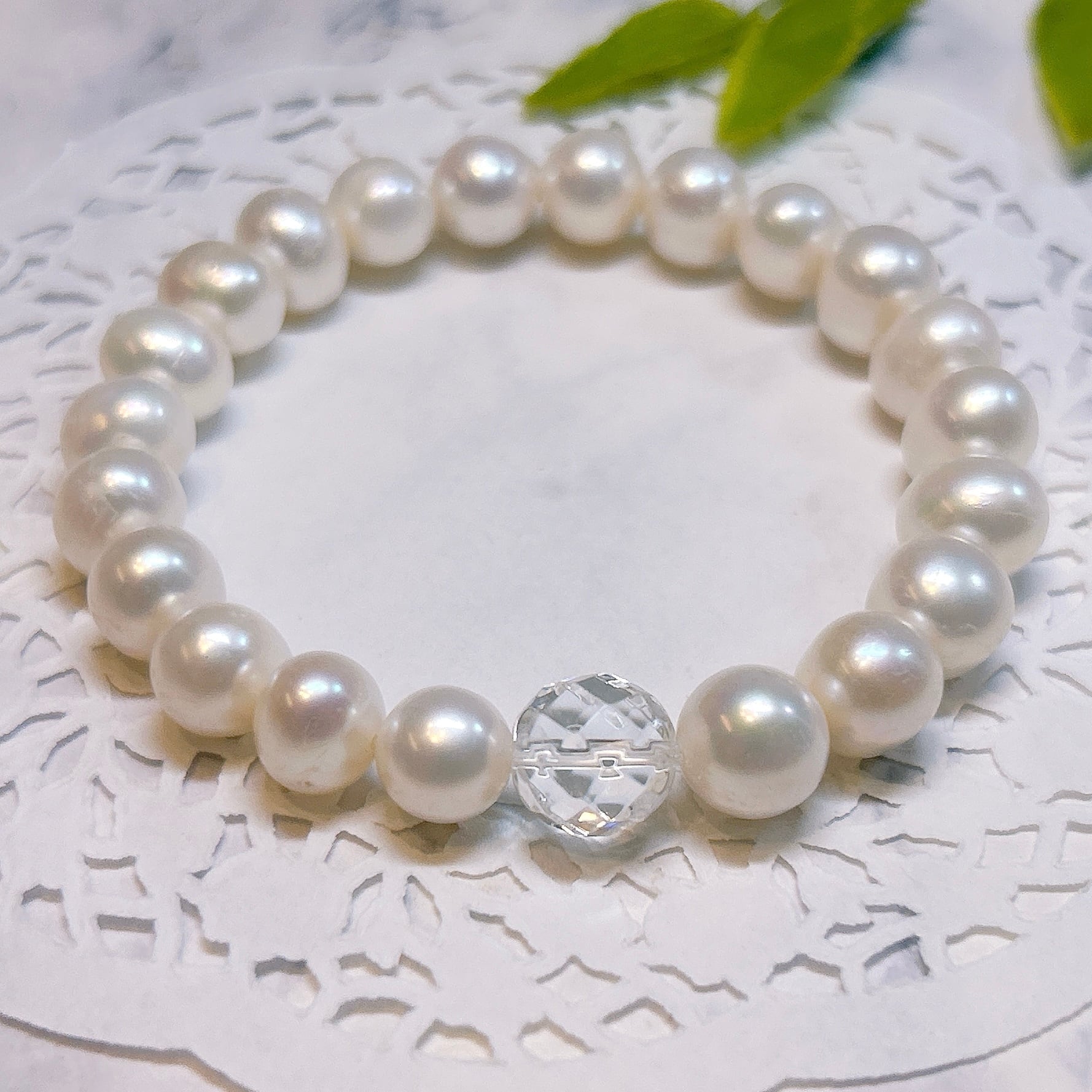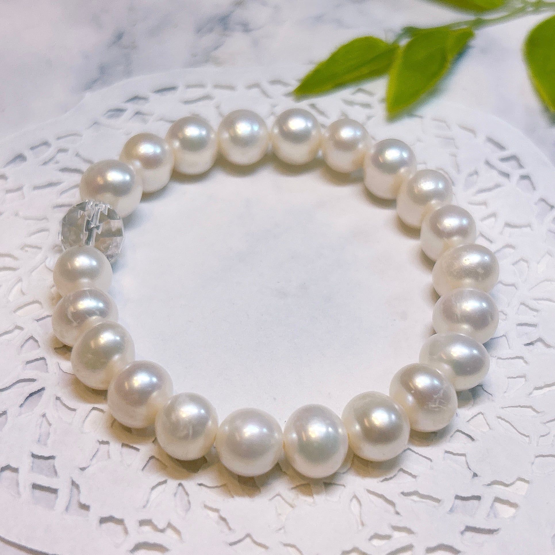 ホワイトの美しい淡水パールブレスレット。