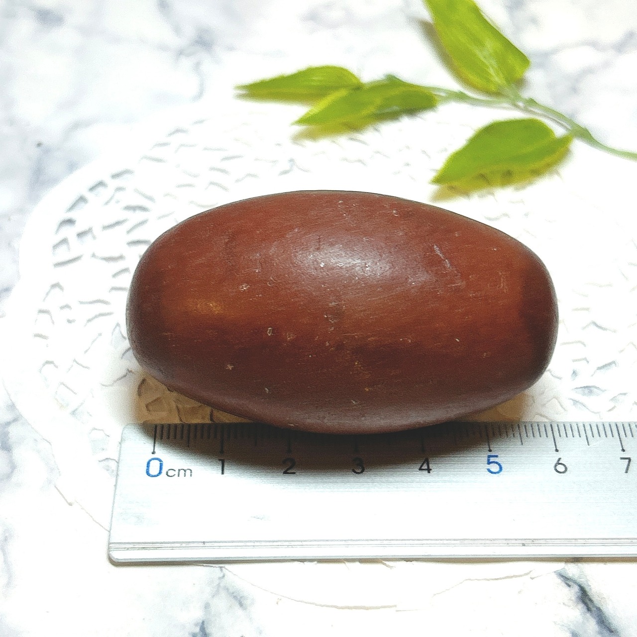 この堆積岩は石英の一種のクリストバル石が集合したもので表面の酸化鉄による焦げ茶色の模様が縁起の良いものとして重宝されています。