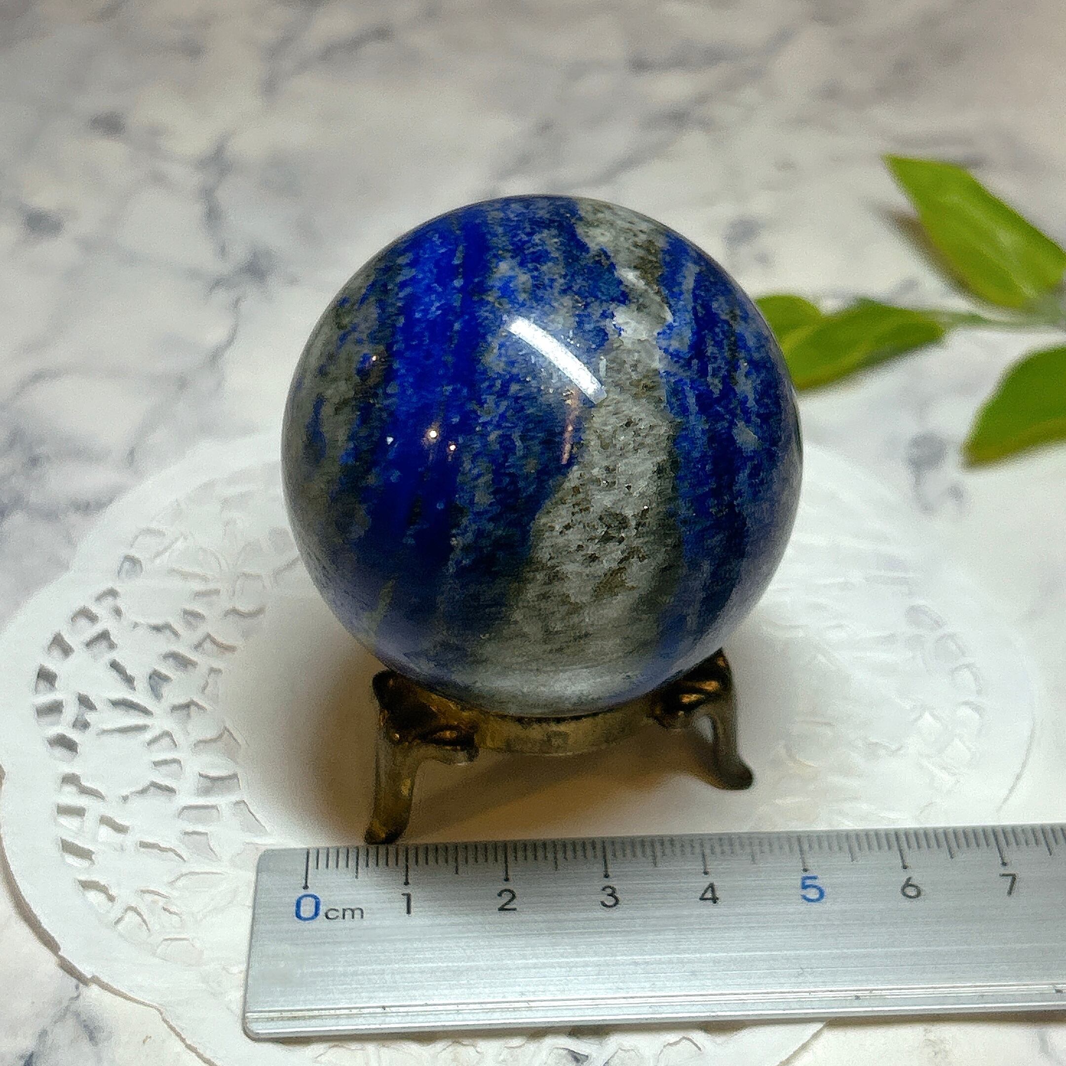 綺麗な瑠璃色と黄鉄鉱のキラキラが美しい球。