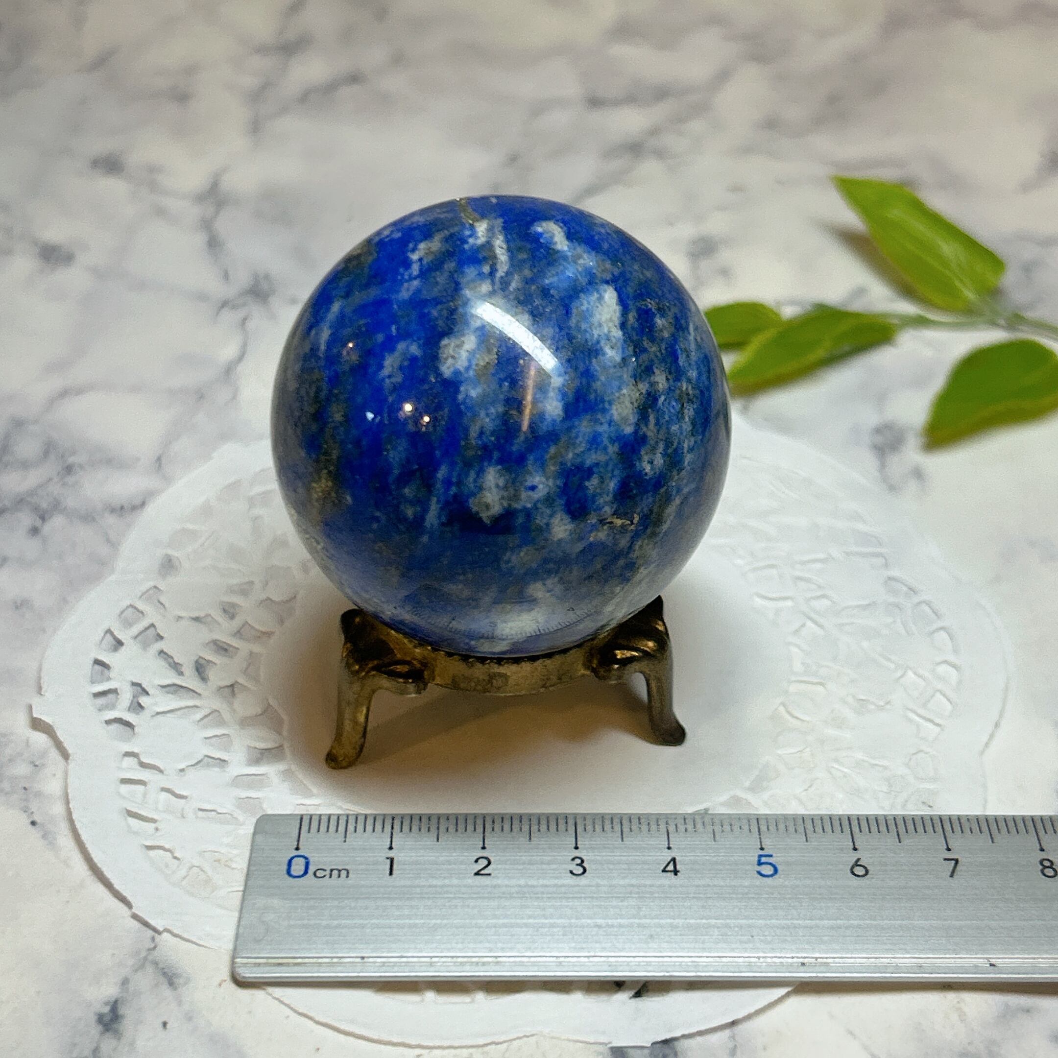 綺麗な瑠璃色と黄鉄鉱のキラキラが美しい球。