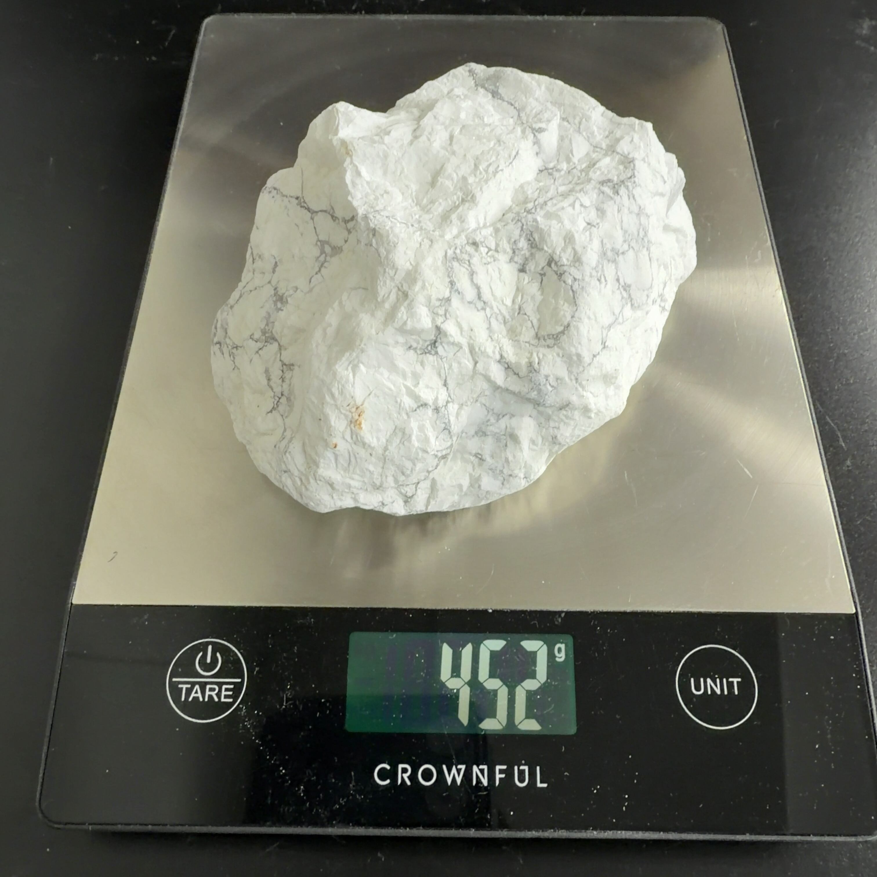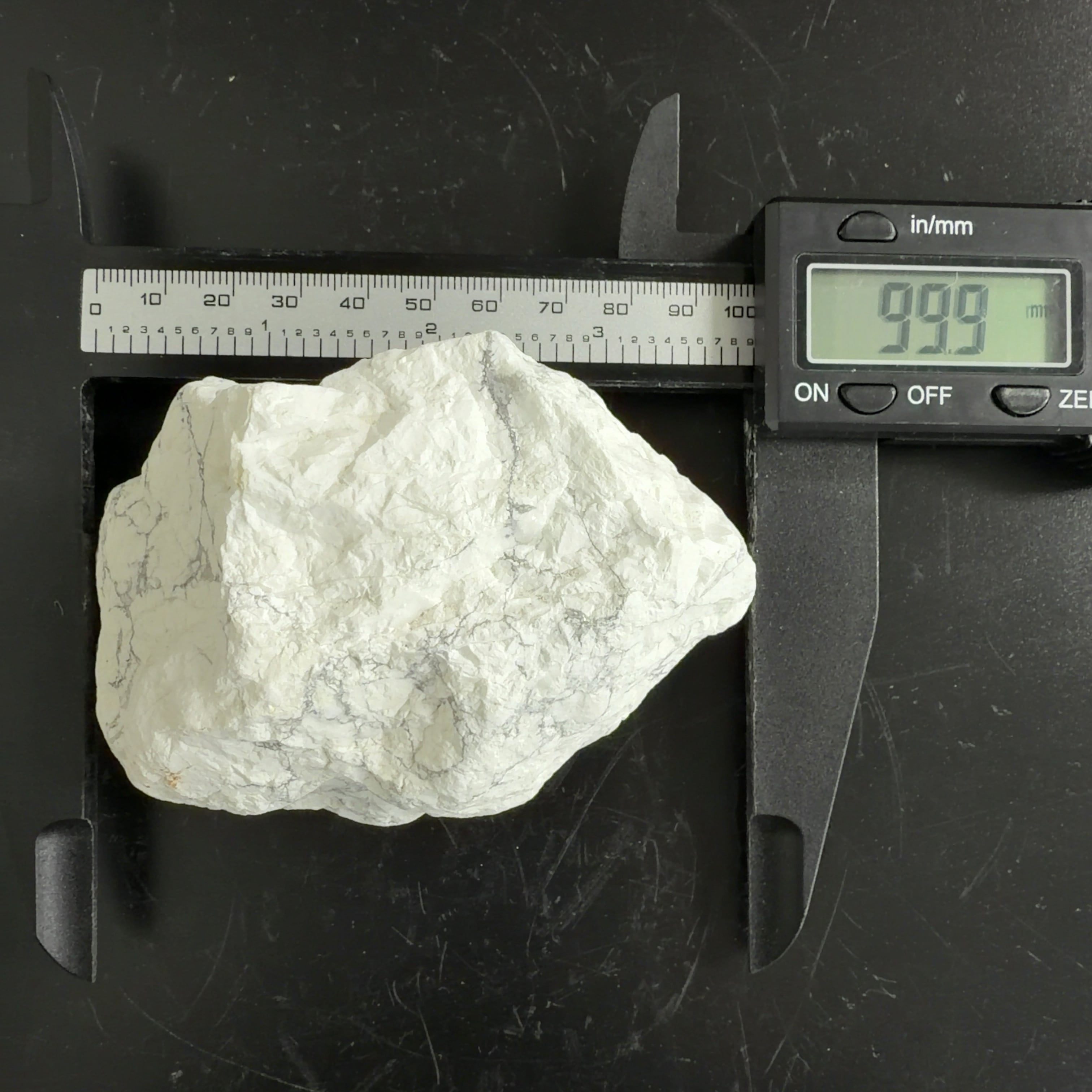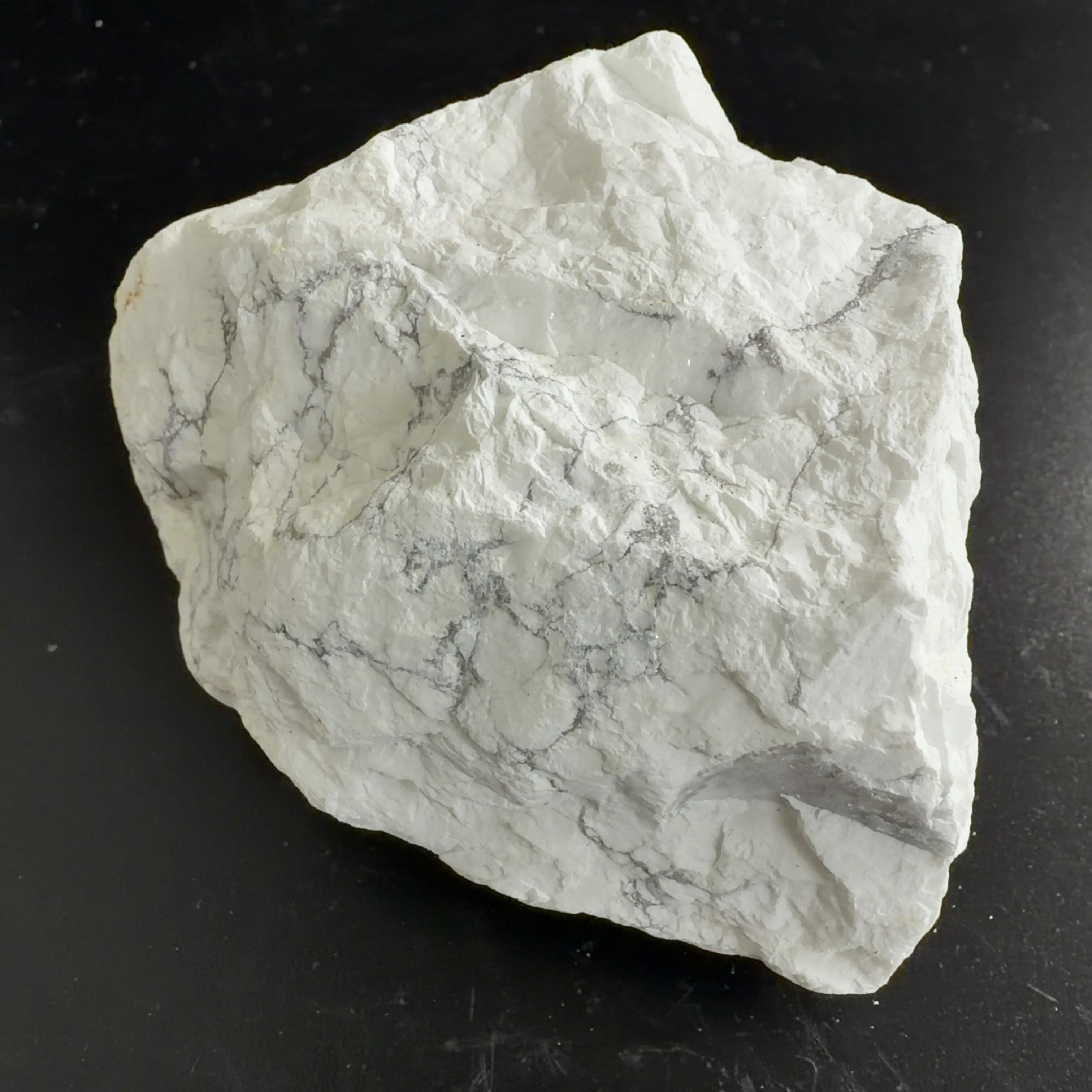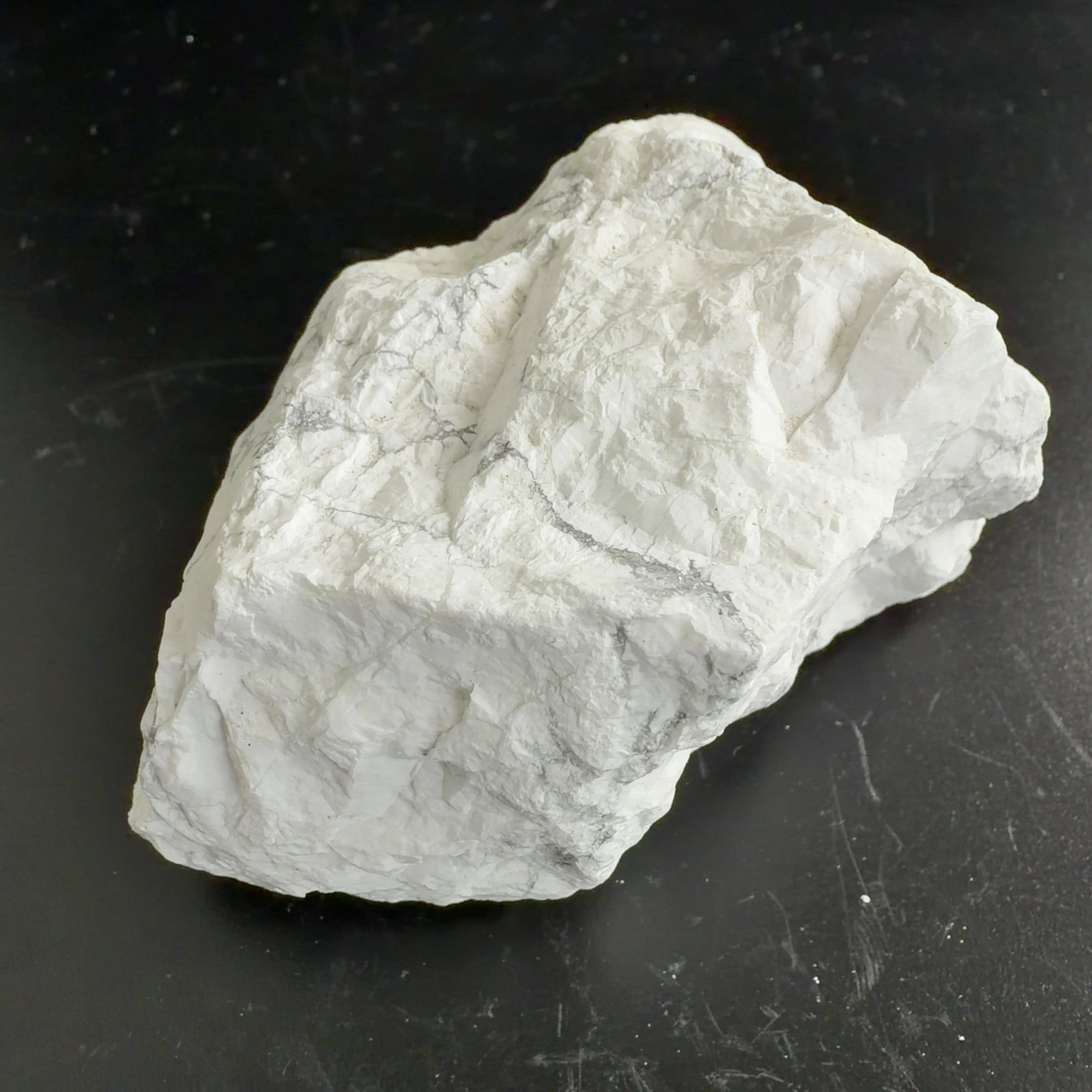 ハウライトとして出回ることが多いが、マグネサイトは温めた希塩酸で発砲して溶ける。