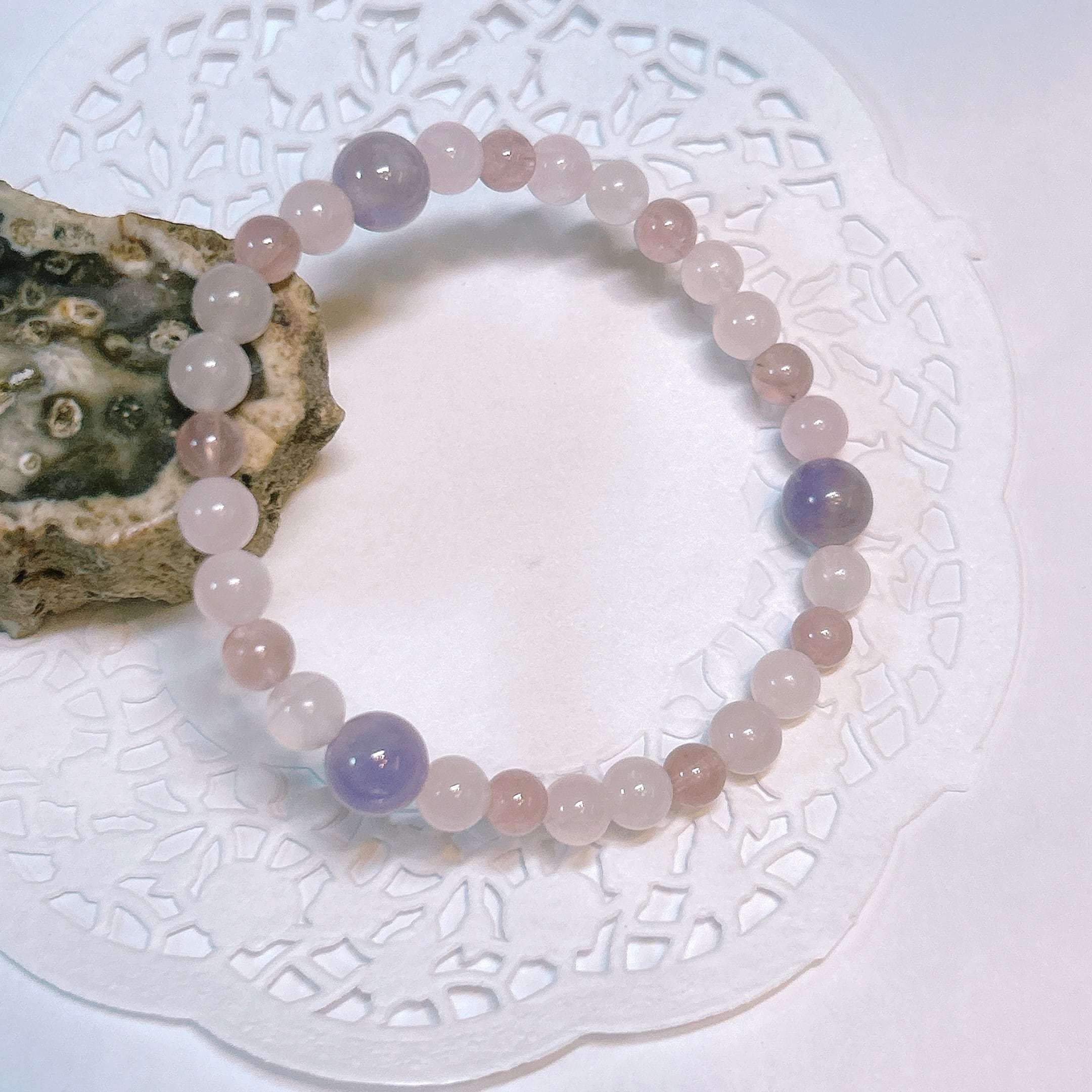 【17620】ラベンダーアメシスト ローズクォーツ ディープローズクォーツ オリジナルブレスレット